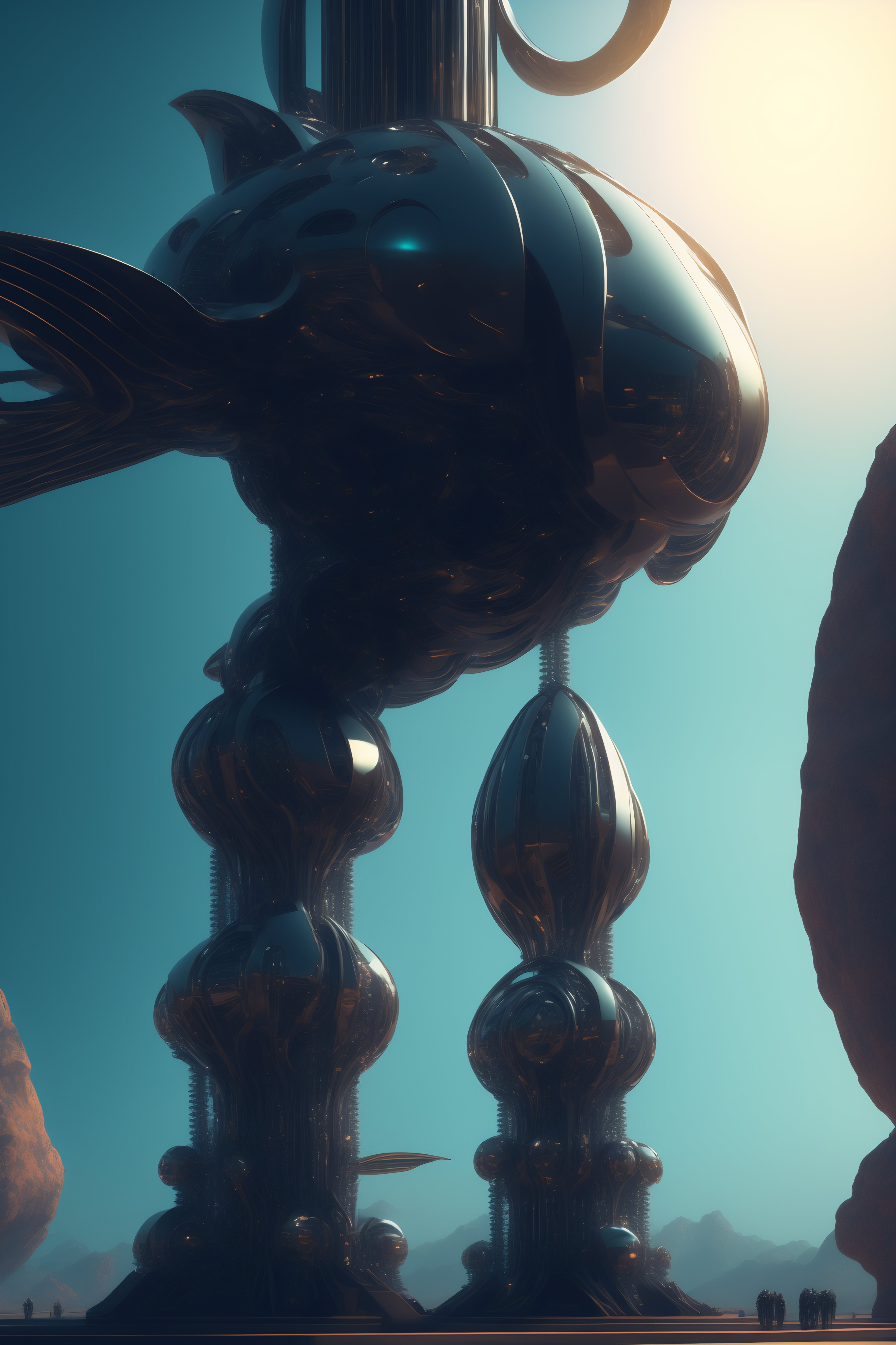 Alien organic structure, full body cinematic style digital art render with mechanical and futuristic details
