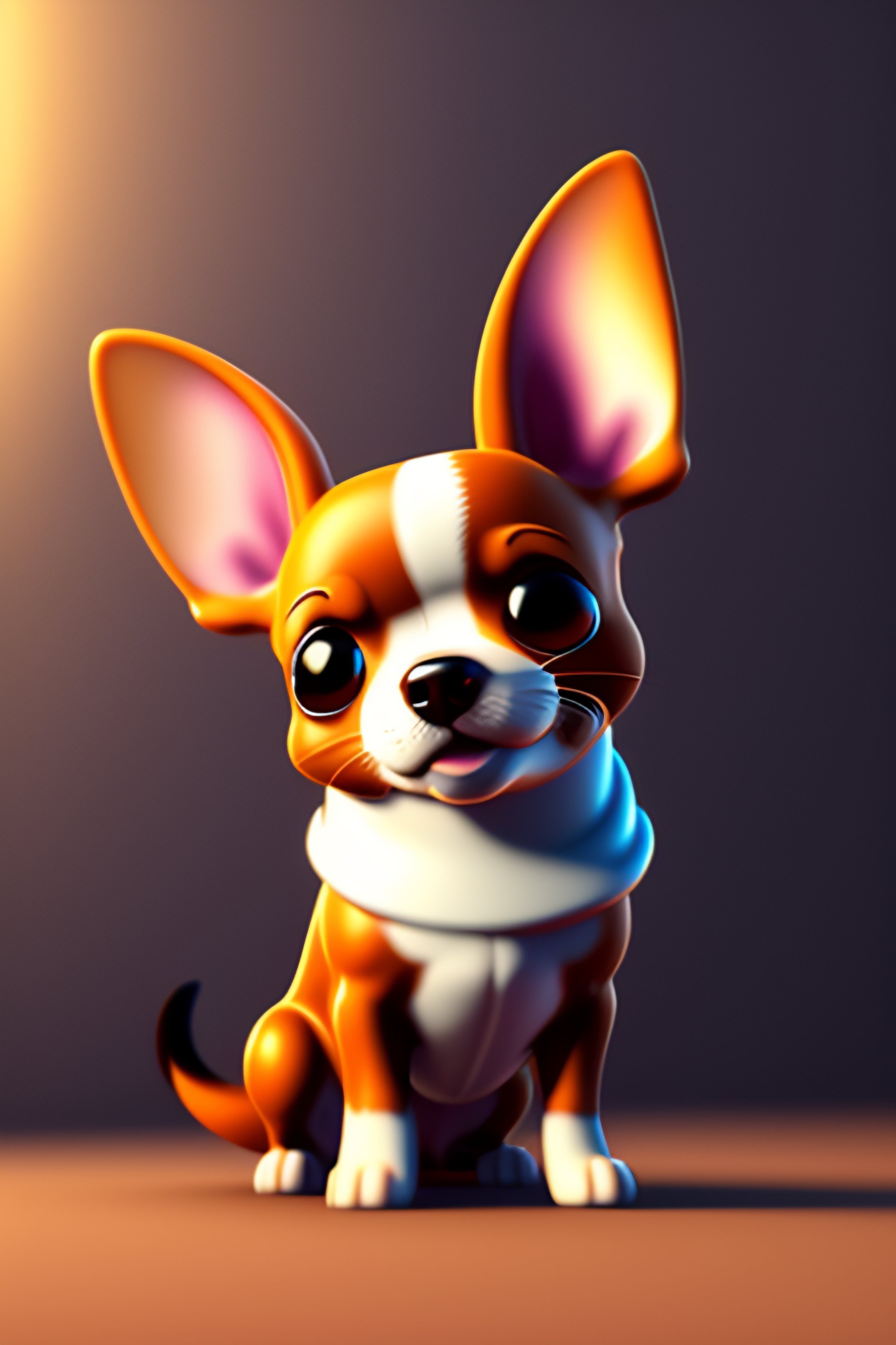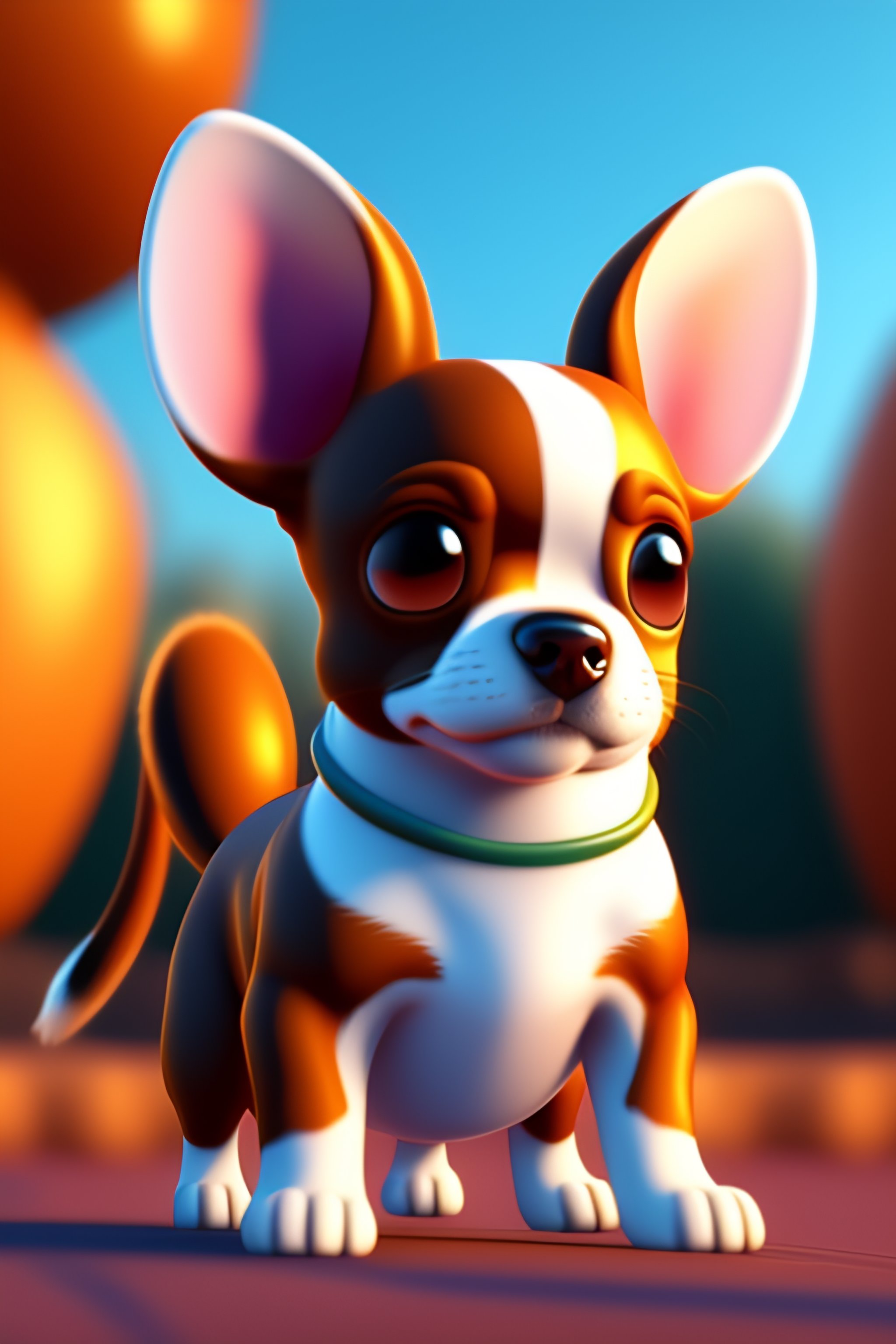 Happy cute chihuahua dog cartoon character in old disney style in 2d, milk, farm background, hdr, ray tracing, global illumination, unreal engine 5