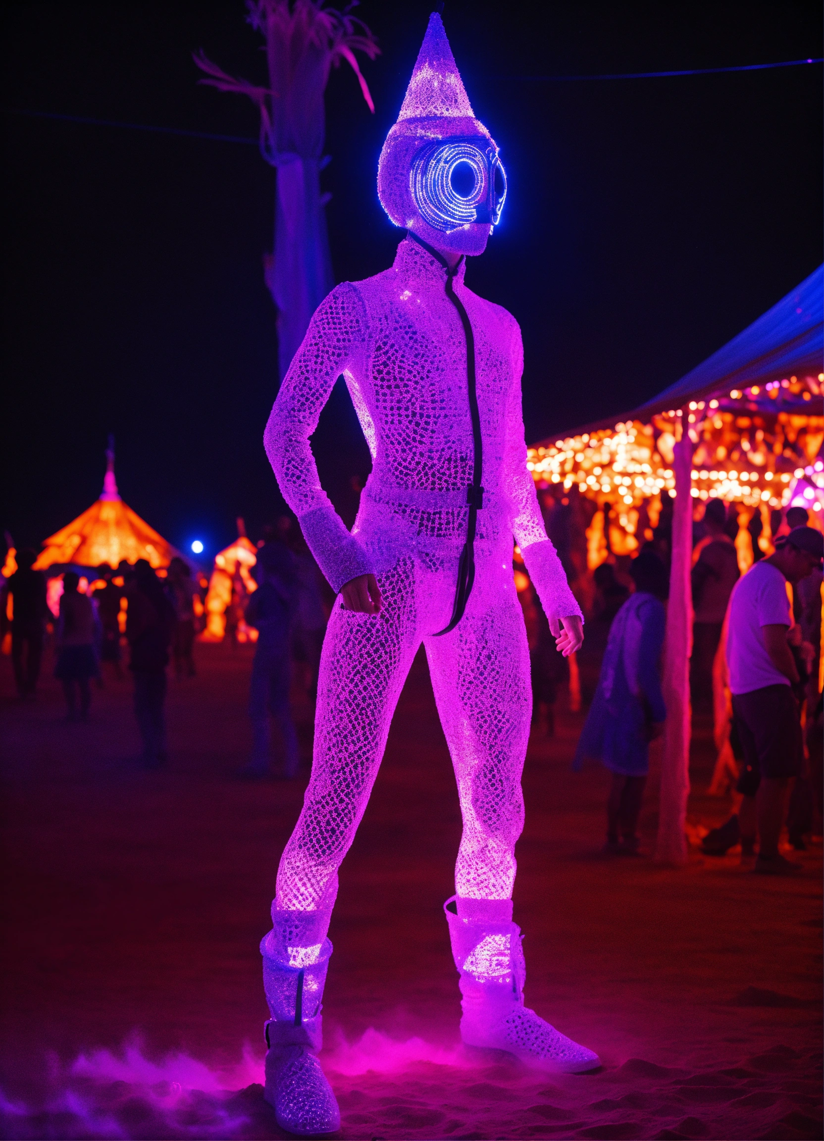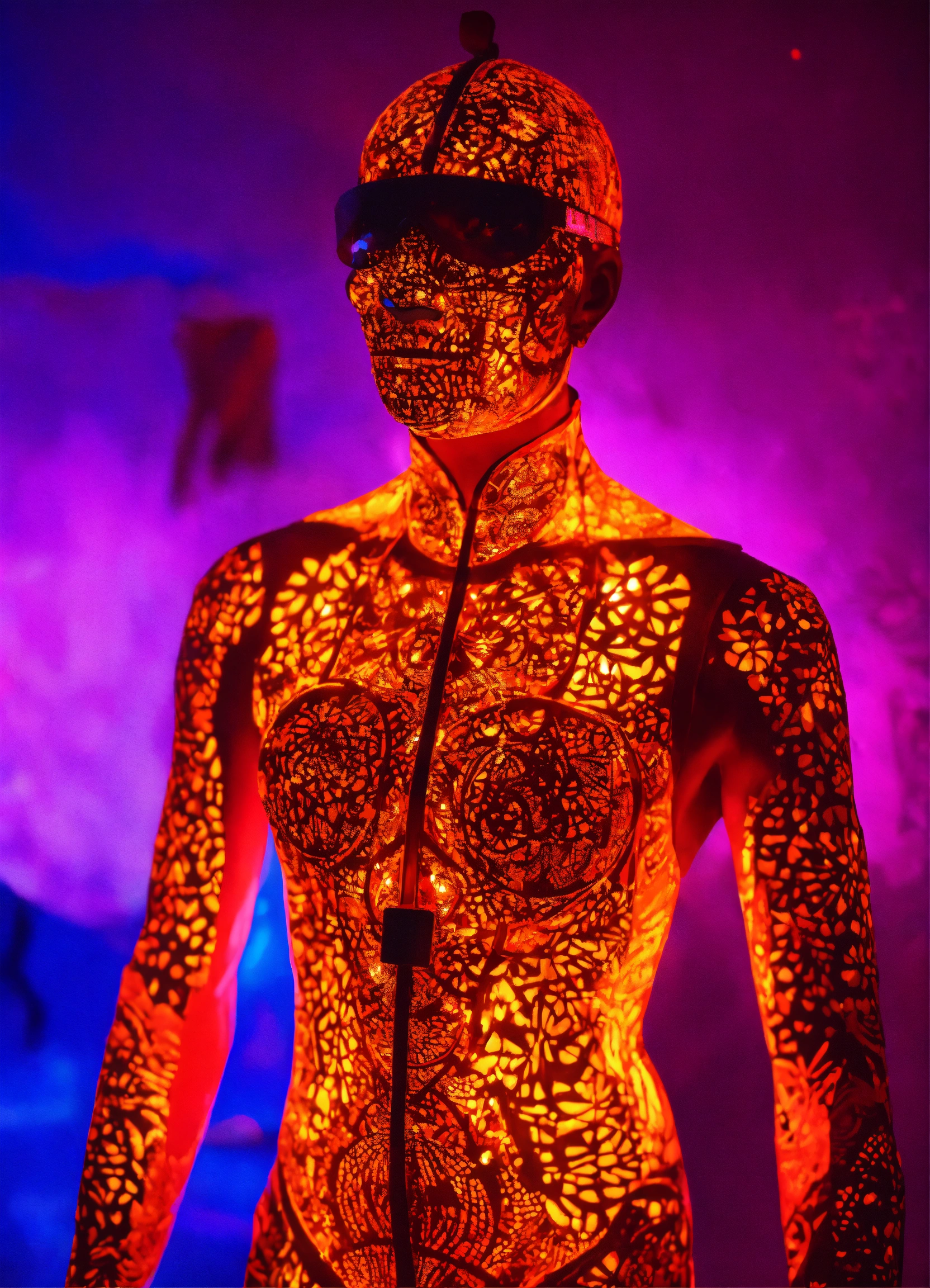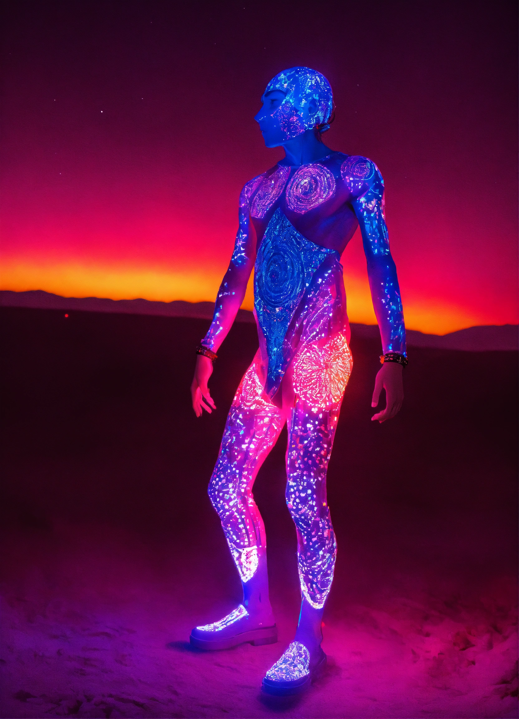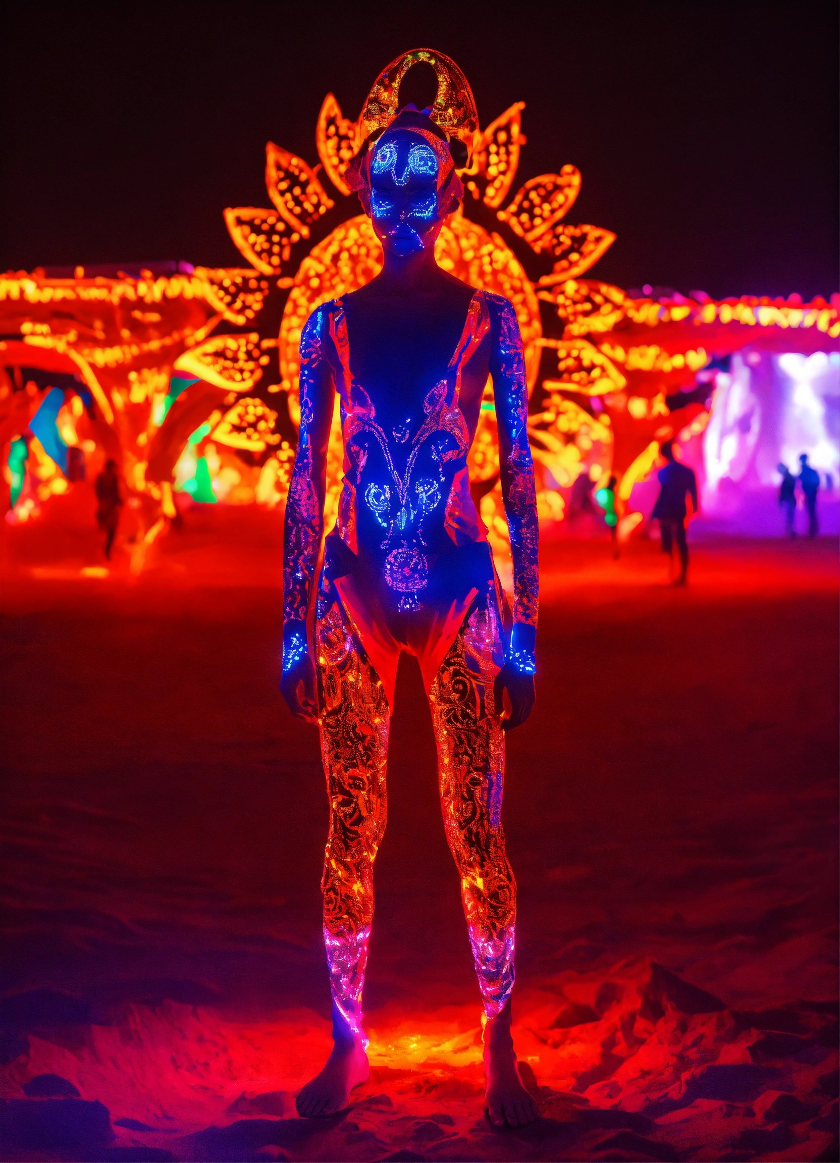 Full body bahpomet in uv light burning man festival