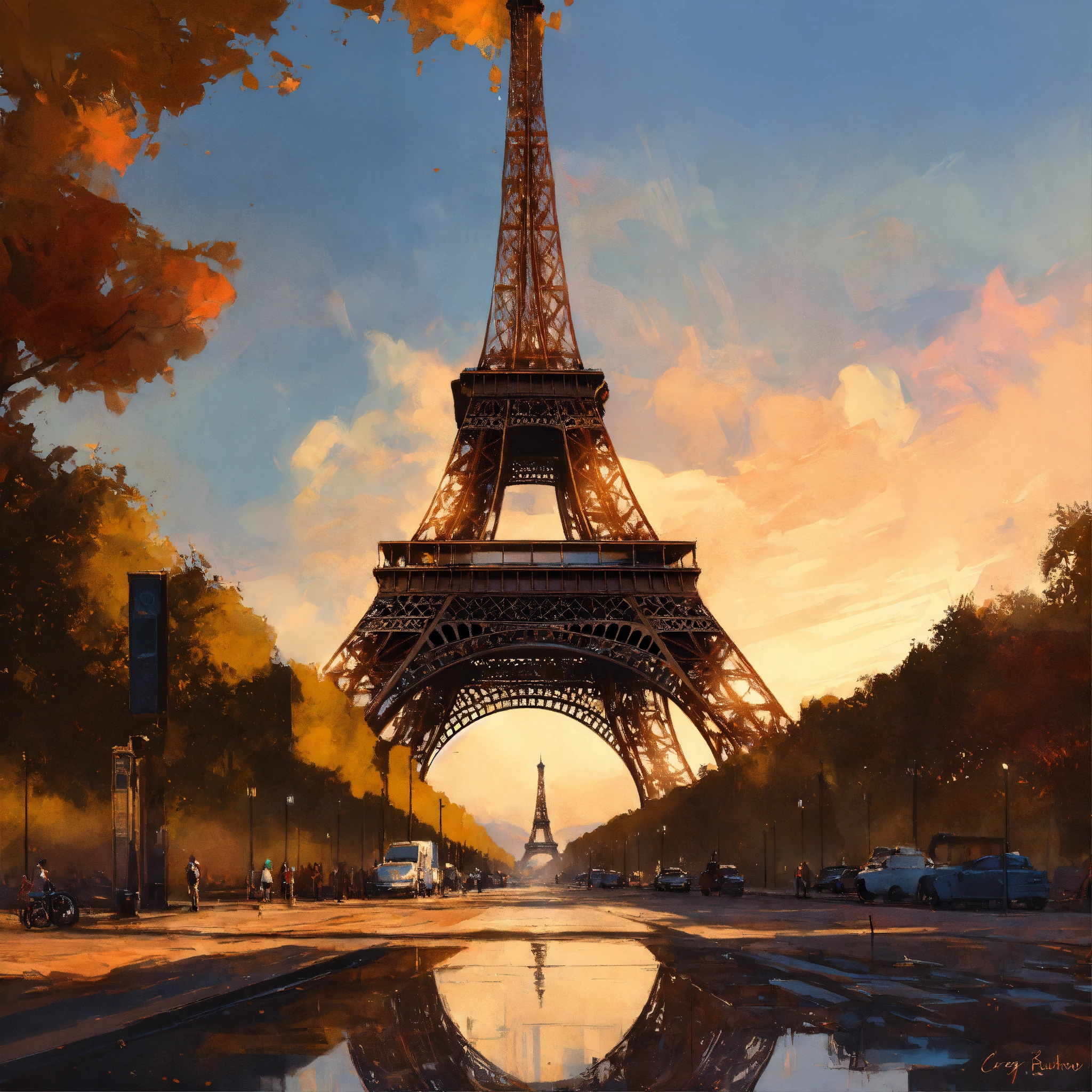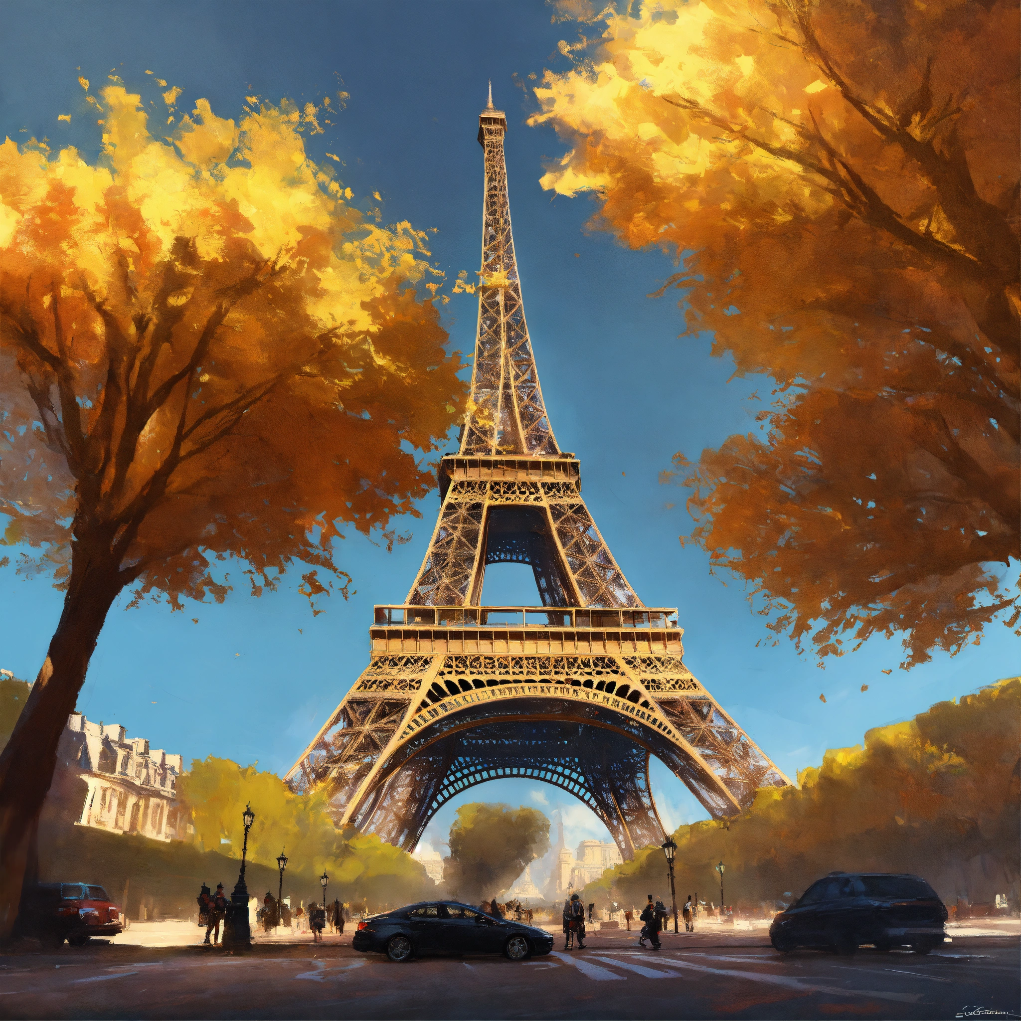 character , woman , man , person , car, oil paint