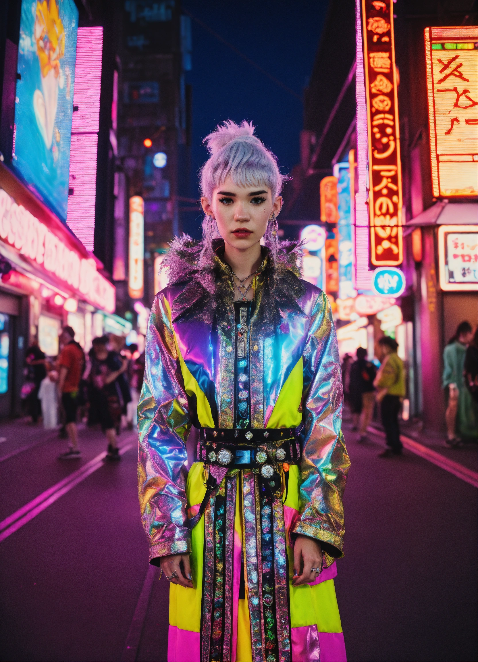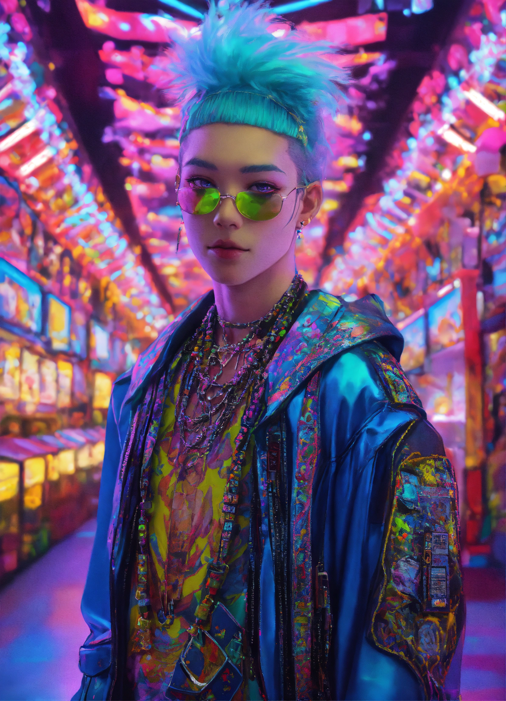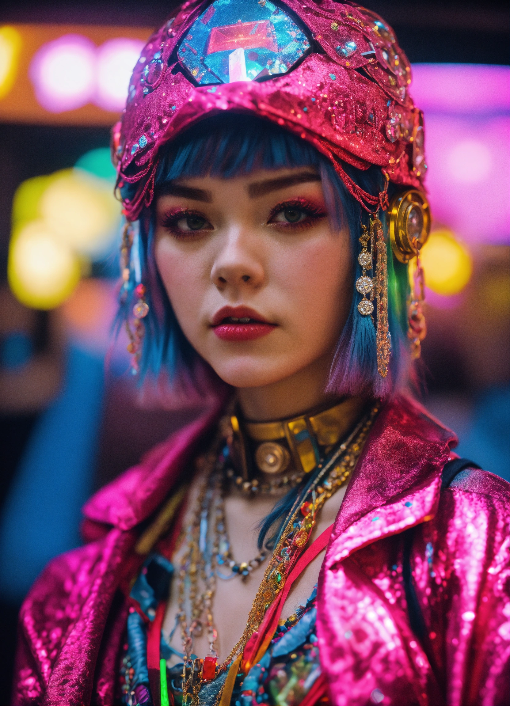I’m photorealistic portrait of a diamond metal occult technology grimes man warrior ai god kawaii punk in folk costume, photorealistic tokyo arcade a death note cyberpunk colorado festival raver style with diamonds, of a person in urban dmt qr code wear, techno dmt neon room photorealistic, volumetric lighting, 8k, highly detailed