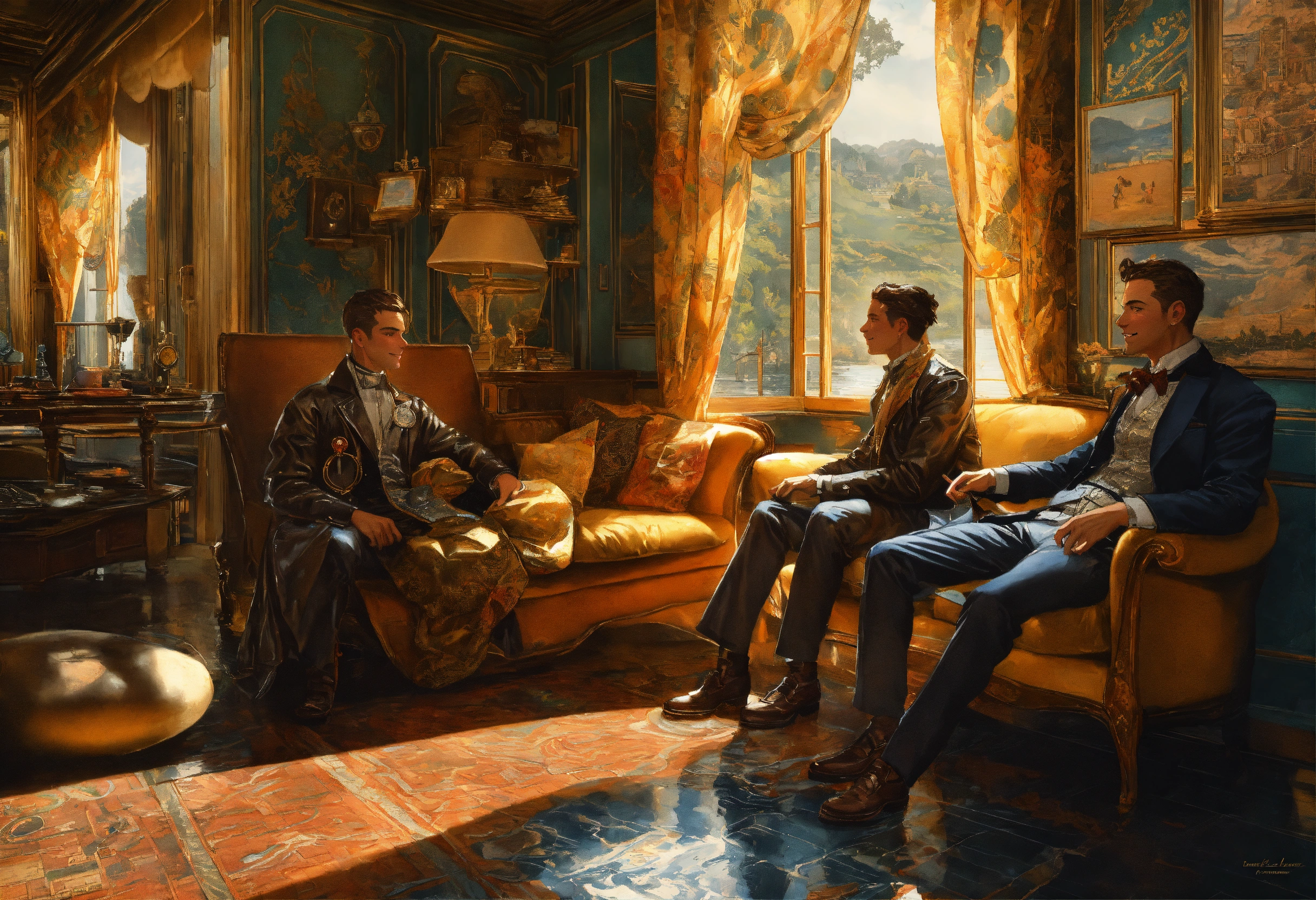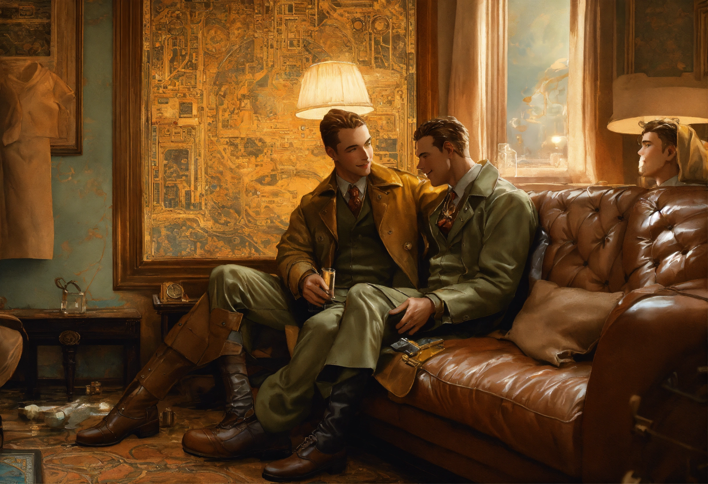 J.c. leyendecker, smiling men in solid wet oil rainwear kissing, looking into his tender eyes, beautiful french tapestry, raingear, waders, technology-inspired living room unique twist. the centerpiece of the room is a striking circuit board interior wallpaper, the wallpaper features intricate circuit board diagrams, electronic symbols, and vibrant metallic tones, steampunk, perfectly detailed image, close-up, excellent lighting, photorealistic, digital illustration, realism, bastien lecouffe-deharme, norman rockwell, daniel ridgway knight, mike dargas, lucio amitrano, omar ortiz, disney, landslides, floods, houses ending up in the river and evacuations in the middle of the night, extreme weather