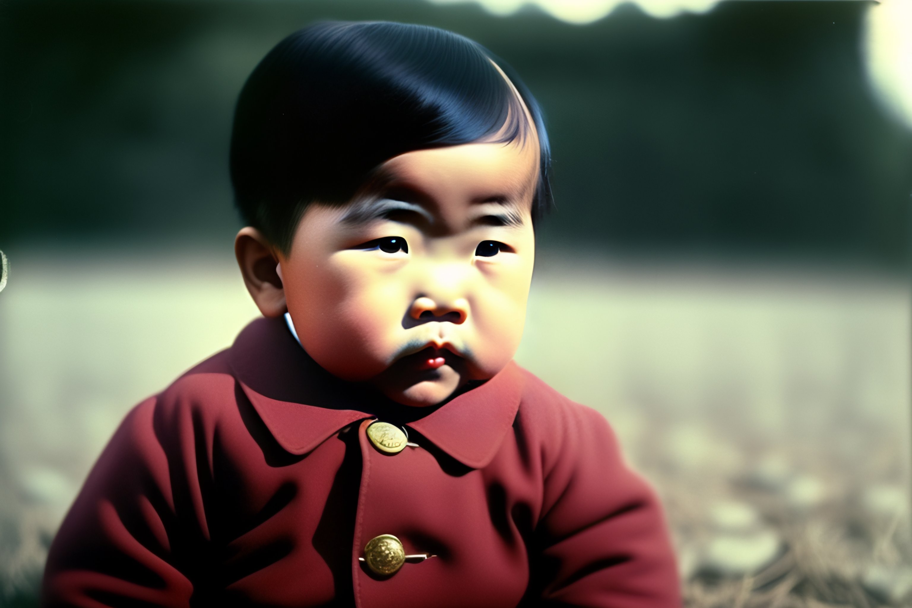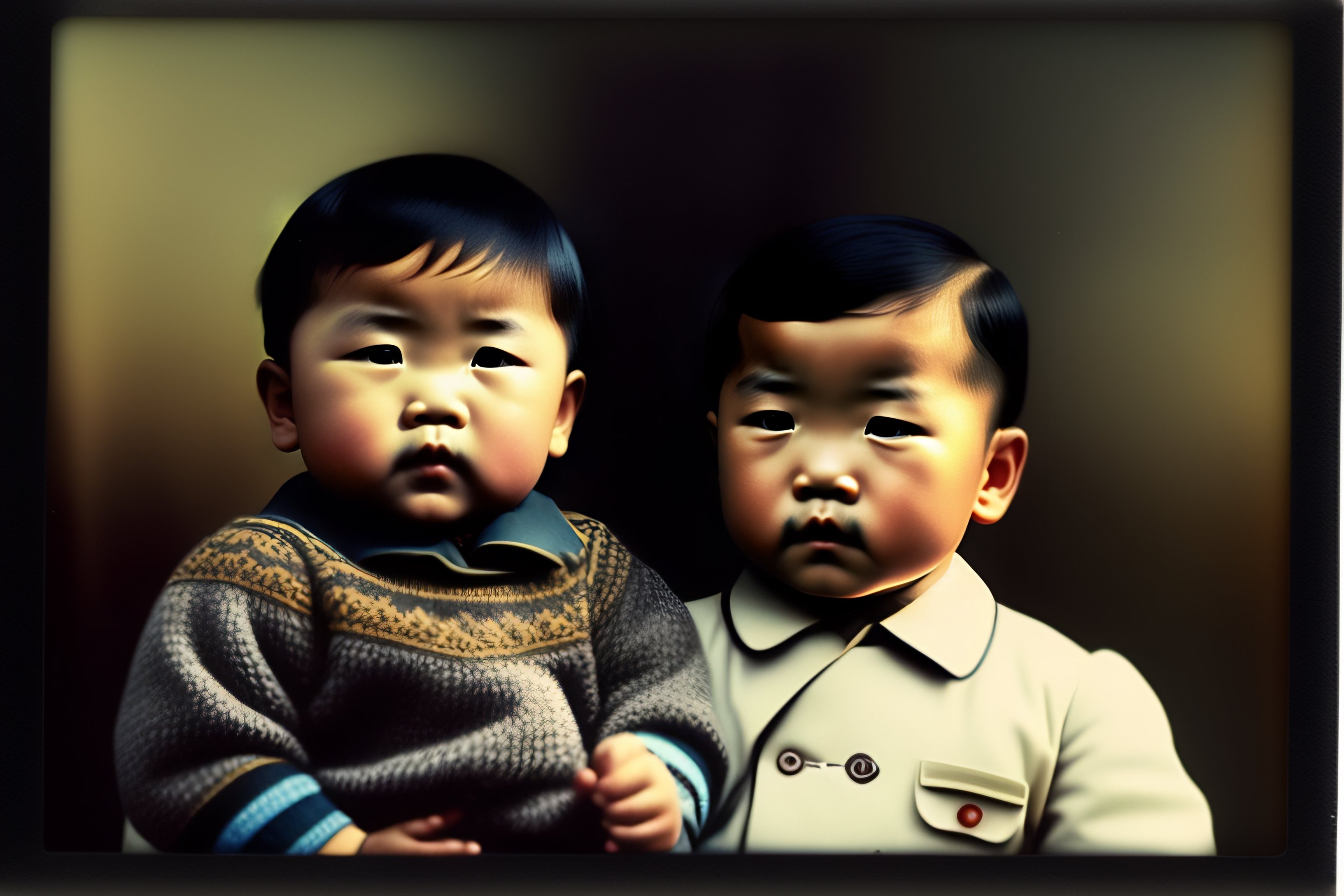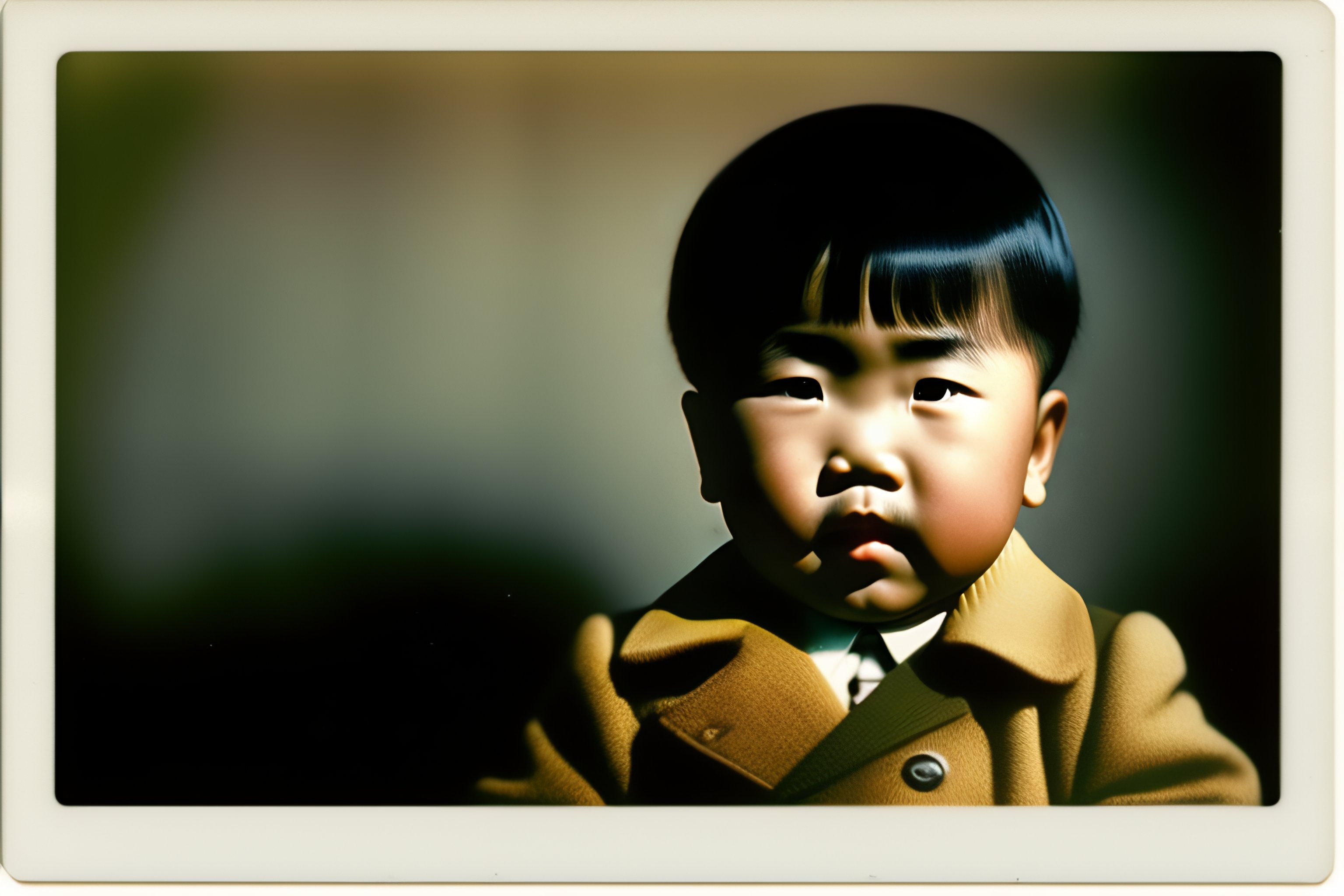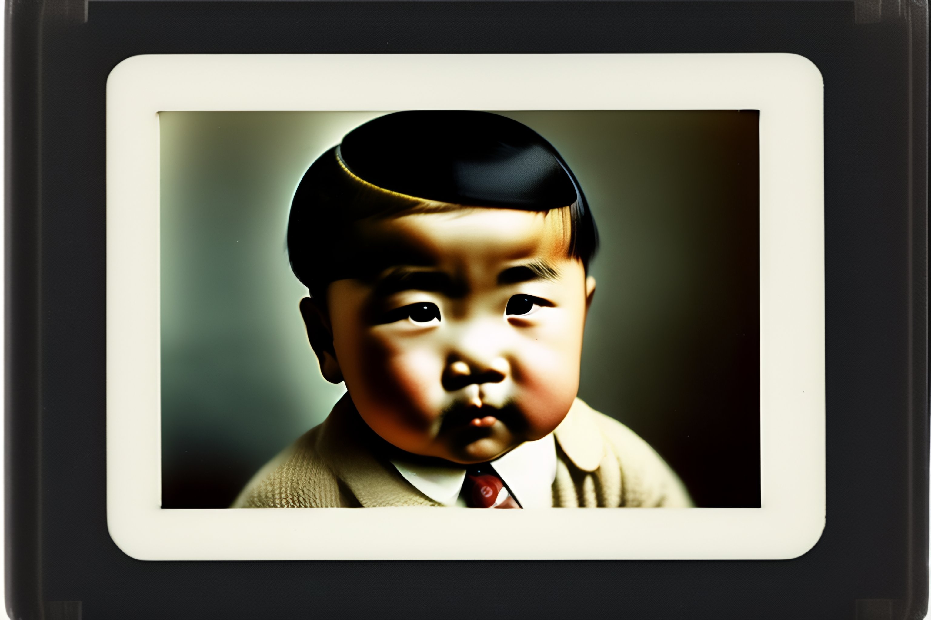 A polaroid photo of asian adolf hitler as a little baby