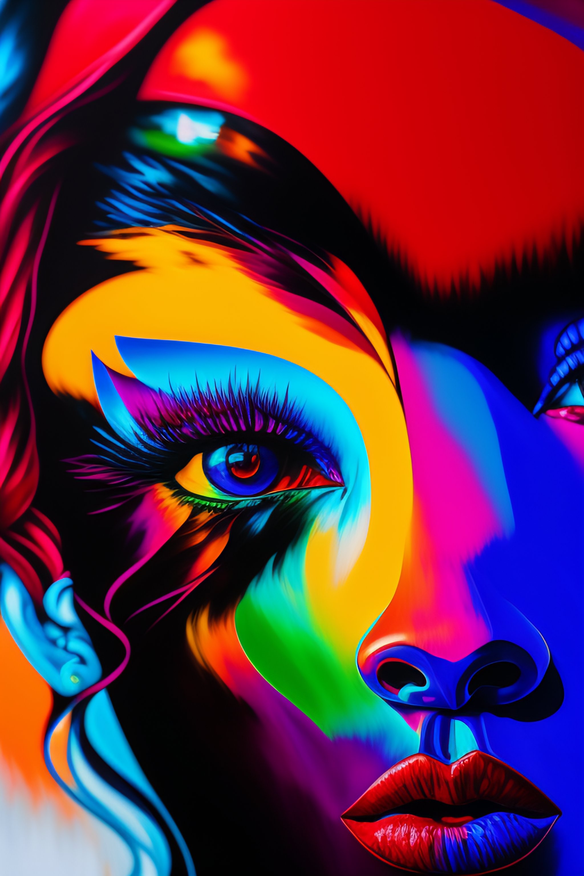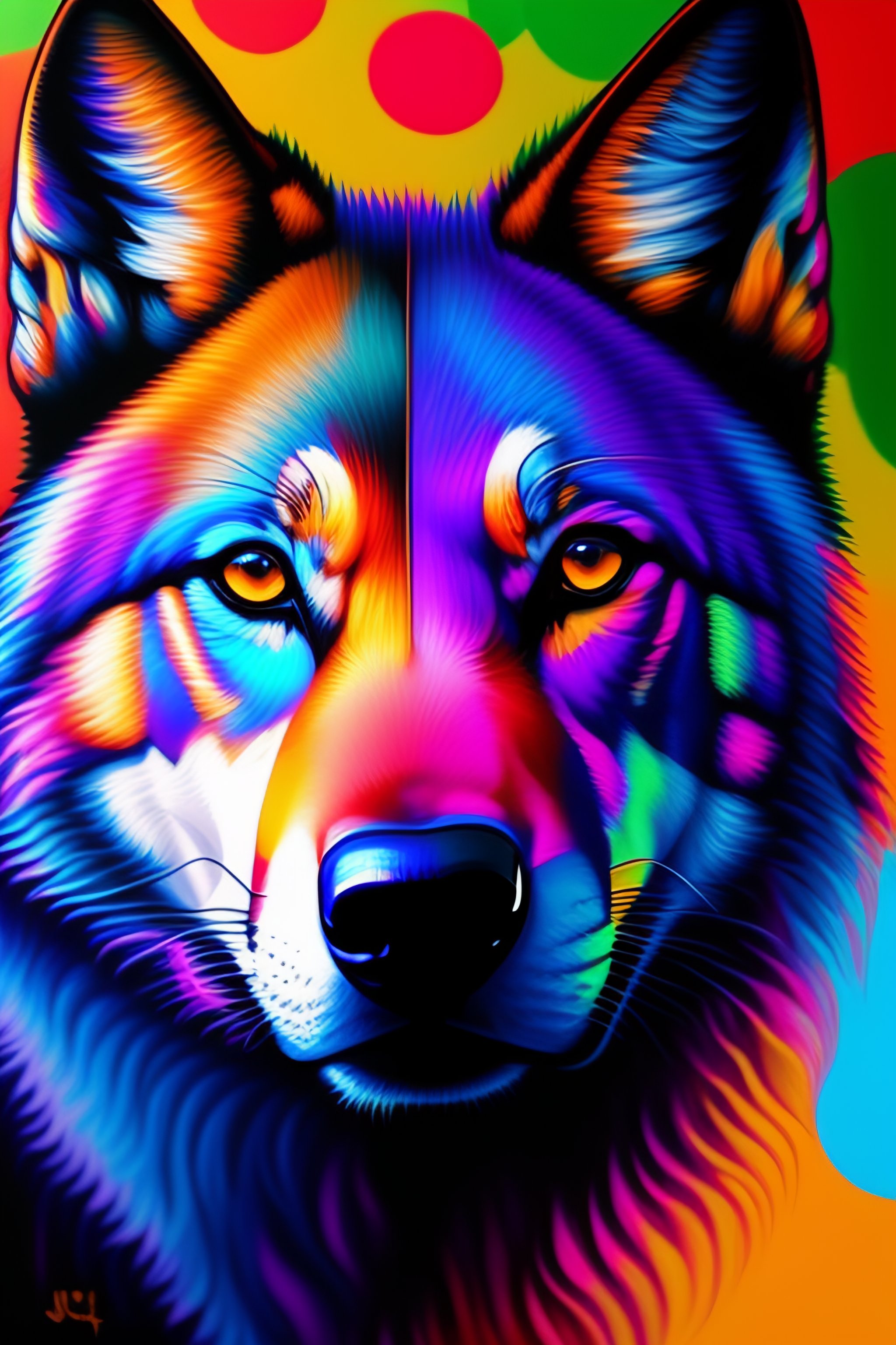 Wolf face, vibrant colors, palette knife oil painting, cassette futurism, abstract expressionistic, artwork, depth of field, bokeh. iridescent accents. vibrant. avant garde, modernist, colourful, wet oil paint, abstract, by francois nielly, by picasso, by leonardo da vinci, by andy warhol