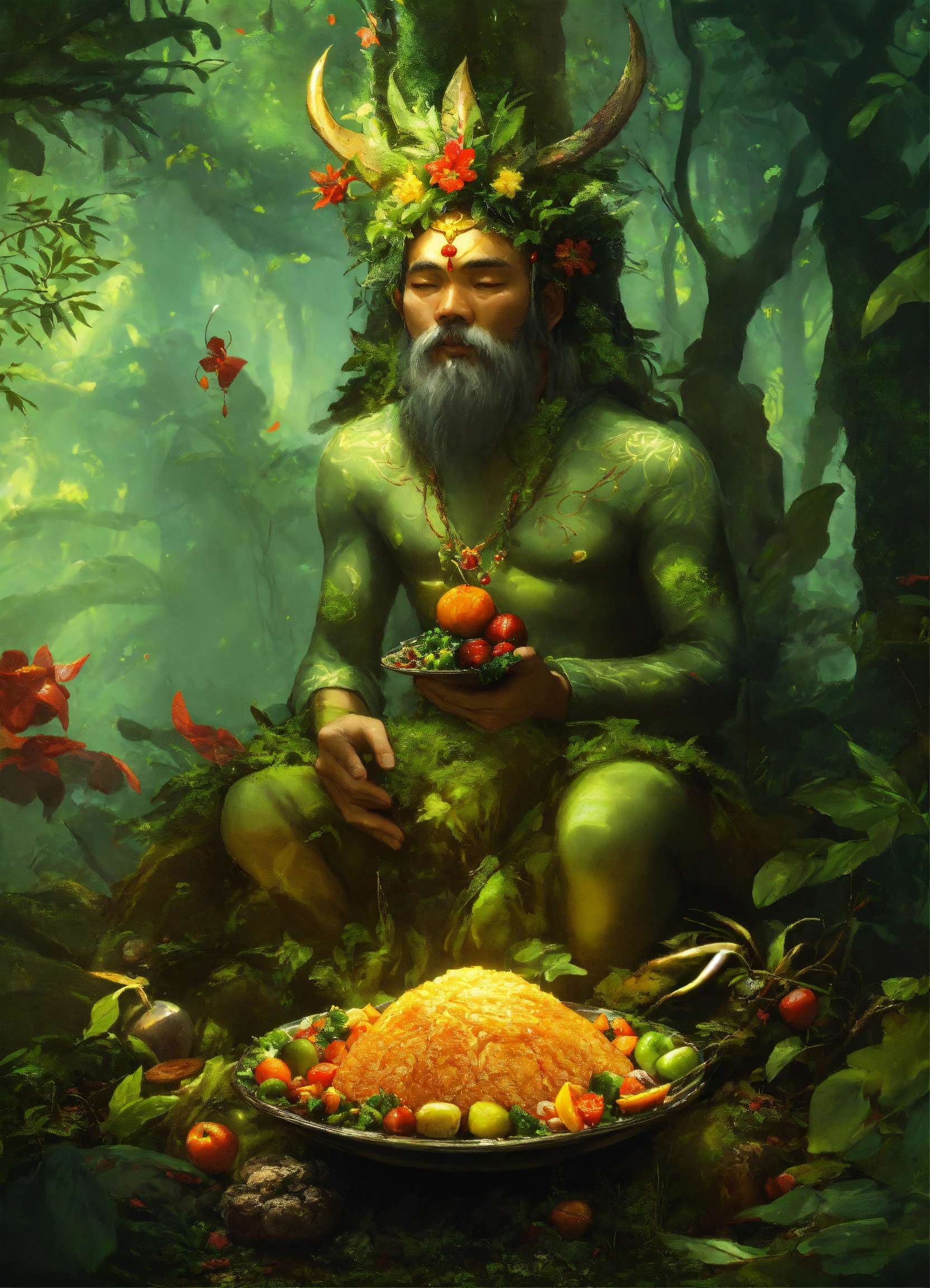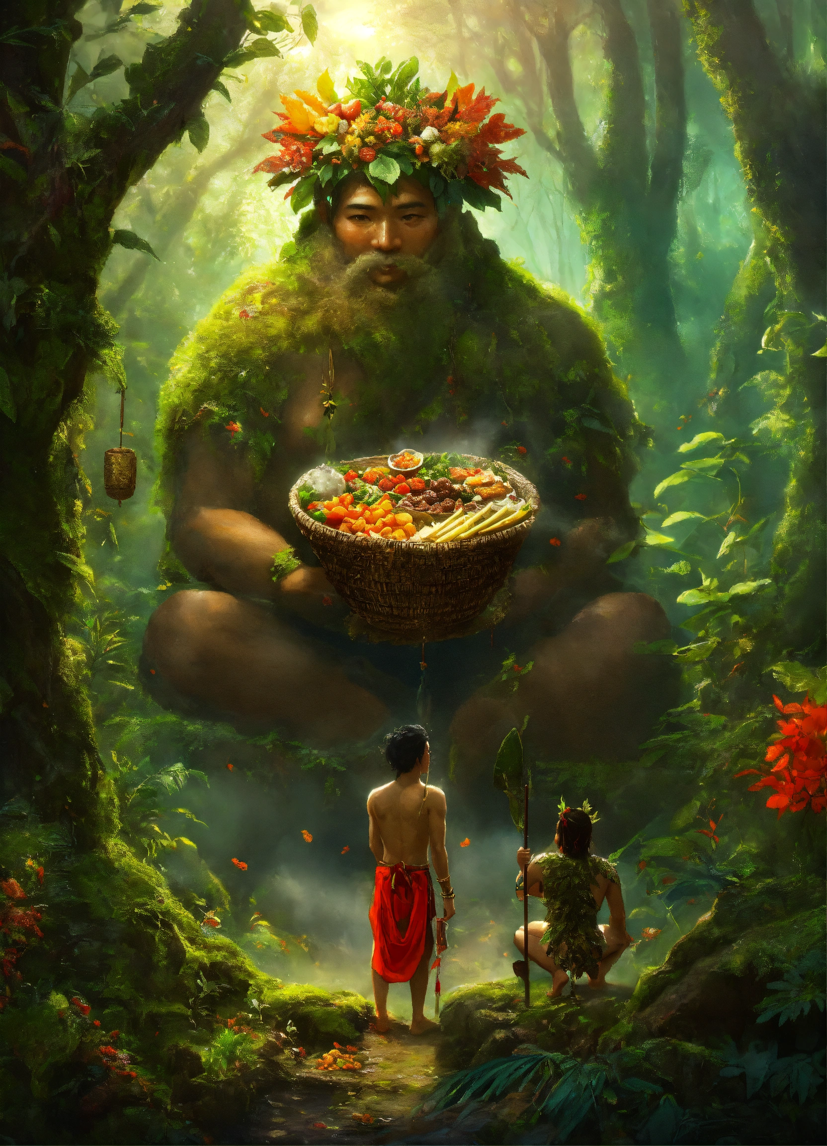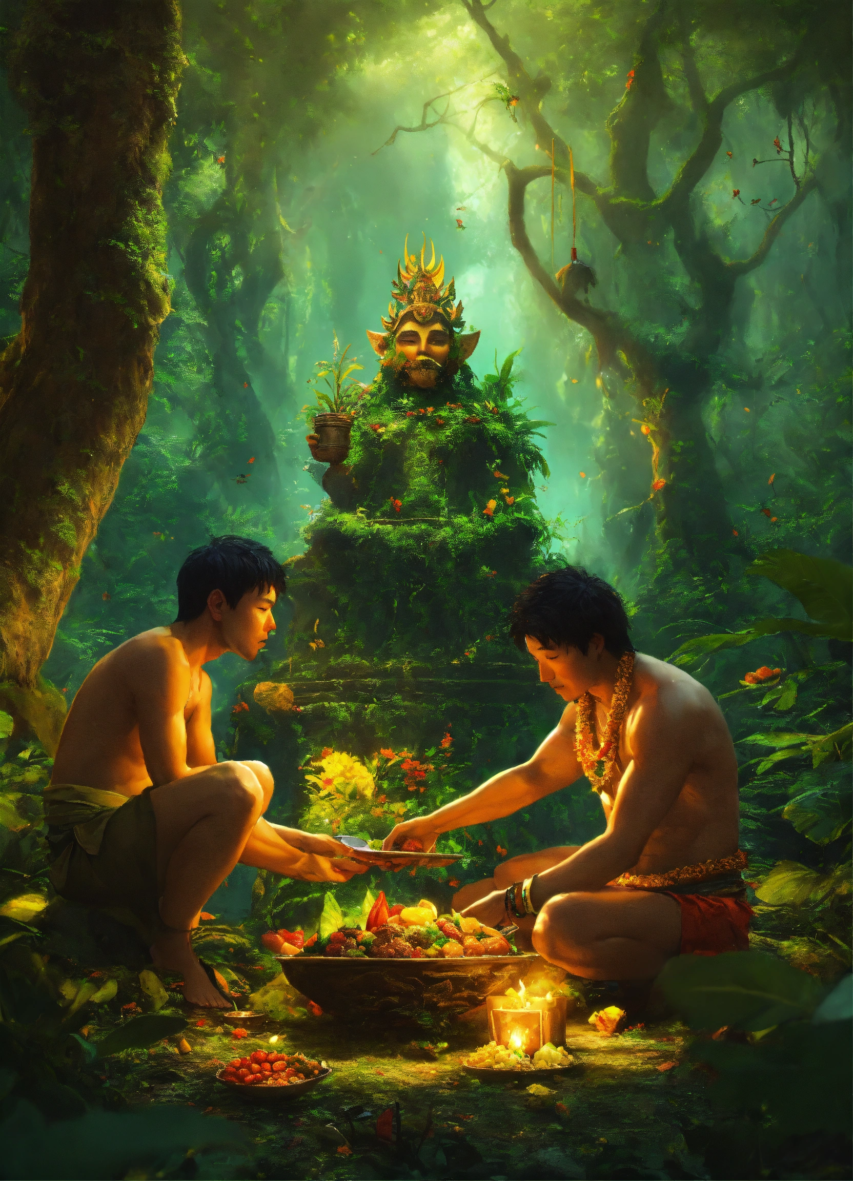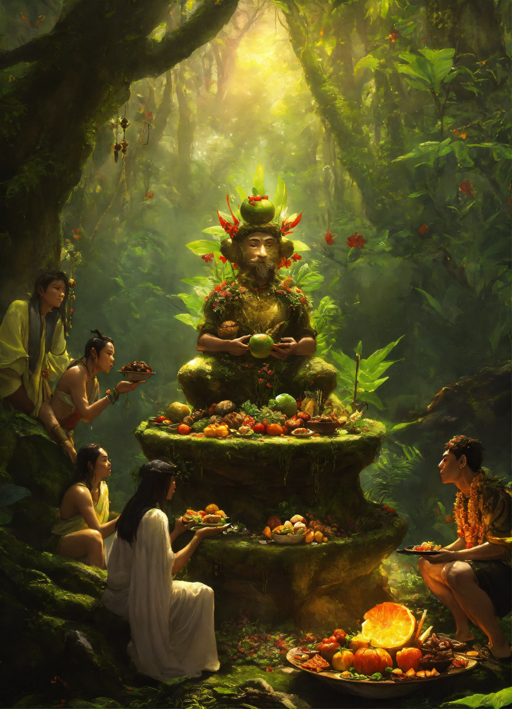 Filipino offering food to forest god
