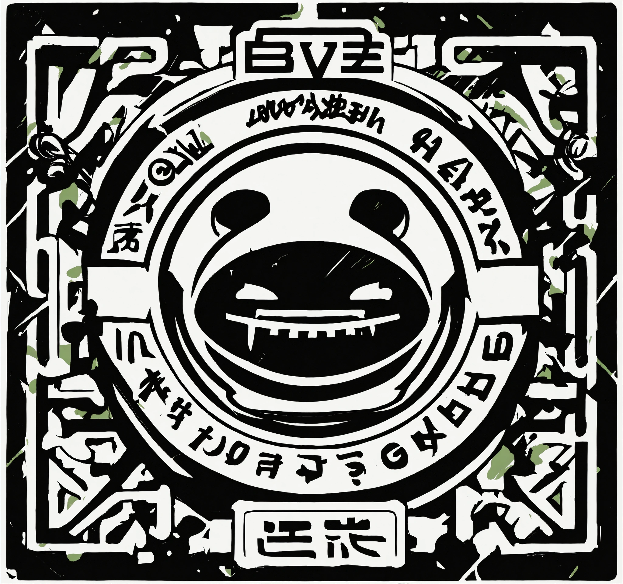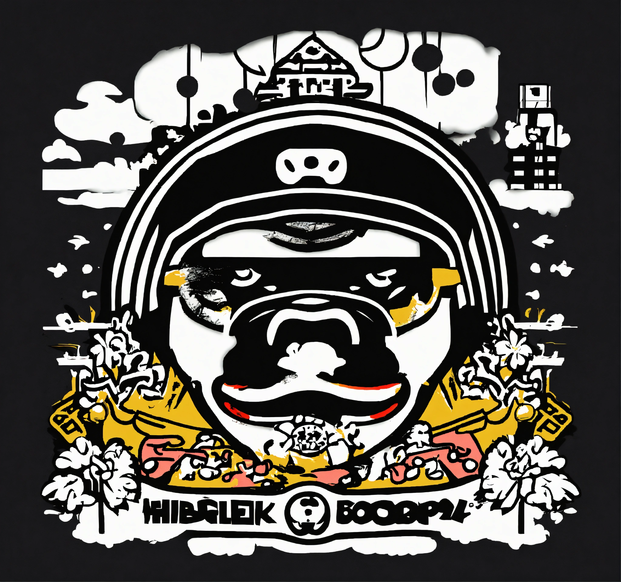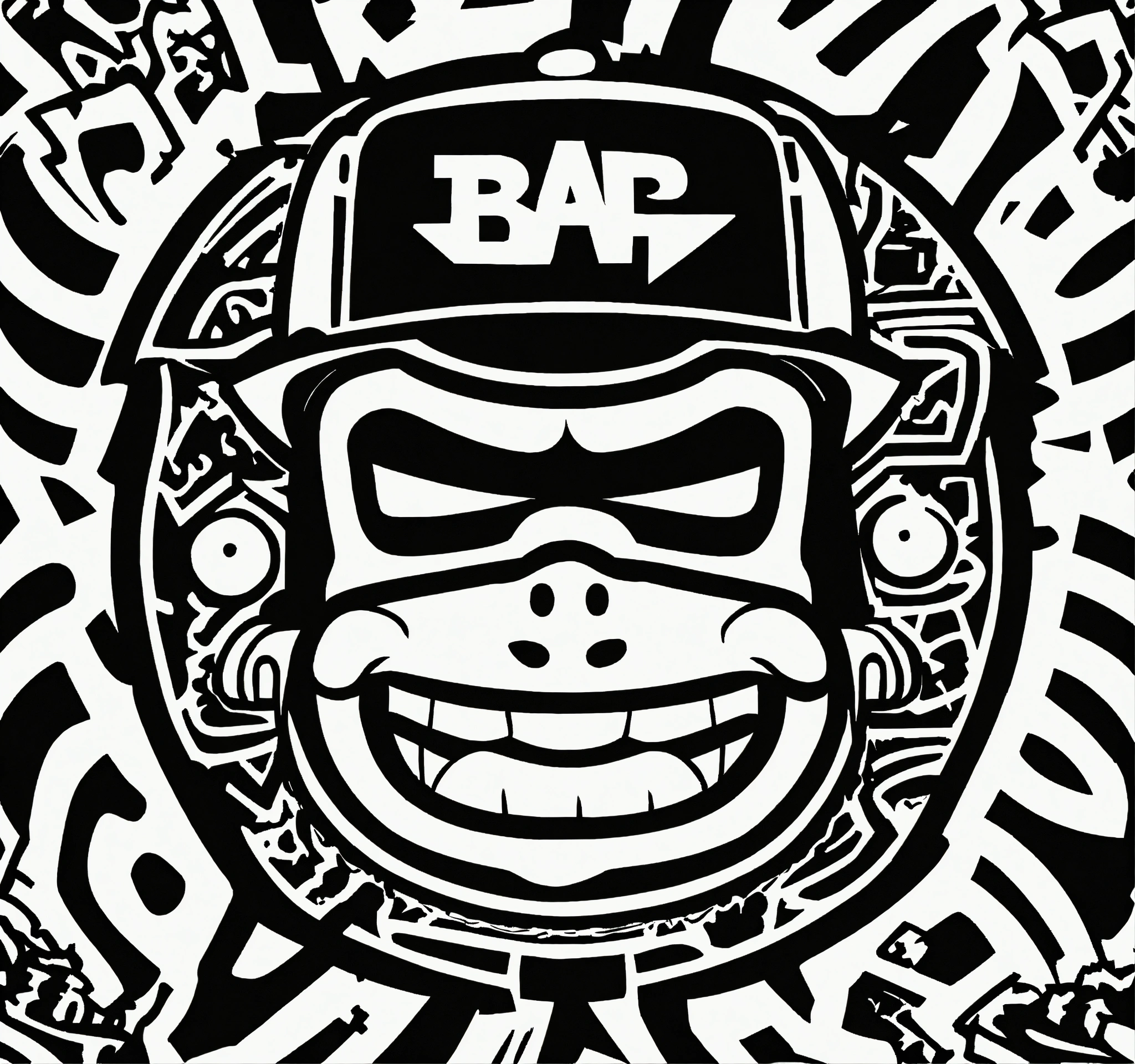 Keith harring style japanese bape graffiti cartoon logo design of a nigo bape style a fantasy mascot, nigo boondock's inspired flat vector, fashion company logo, andy warhol style, color black and white, white background.
