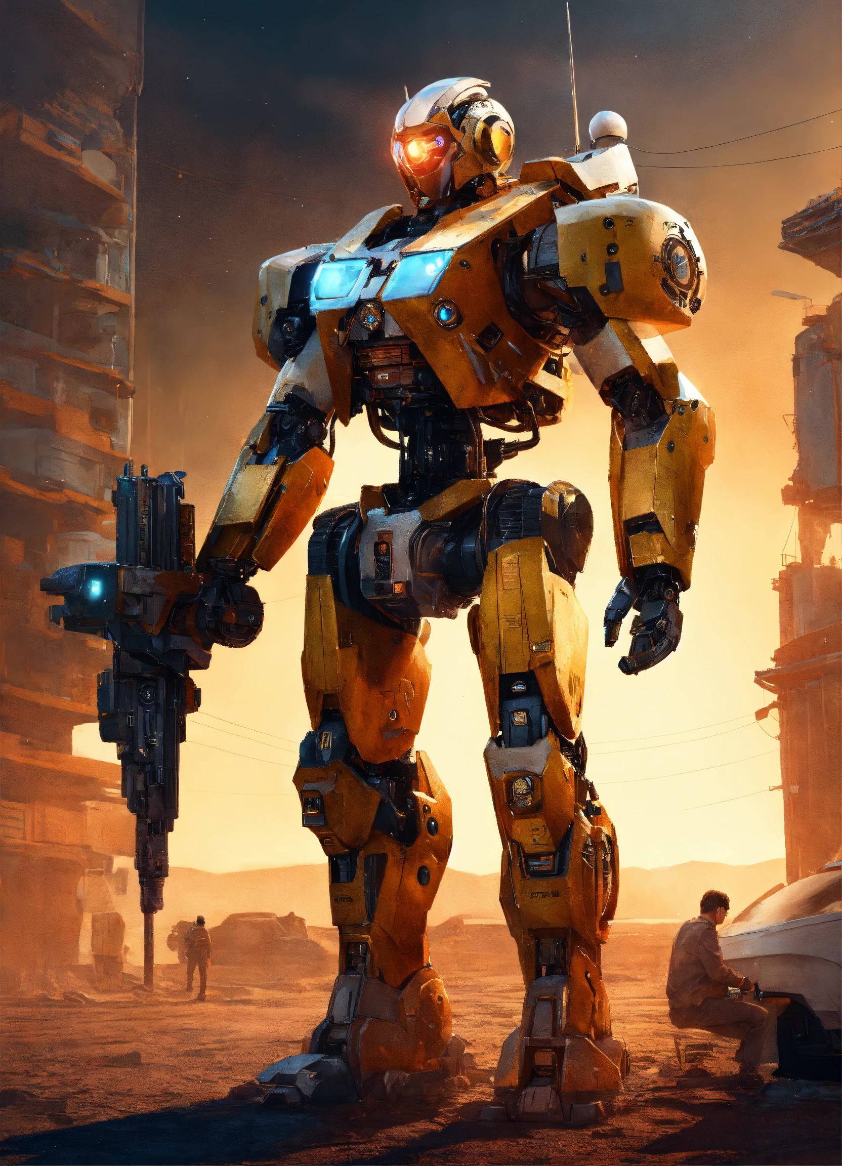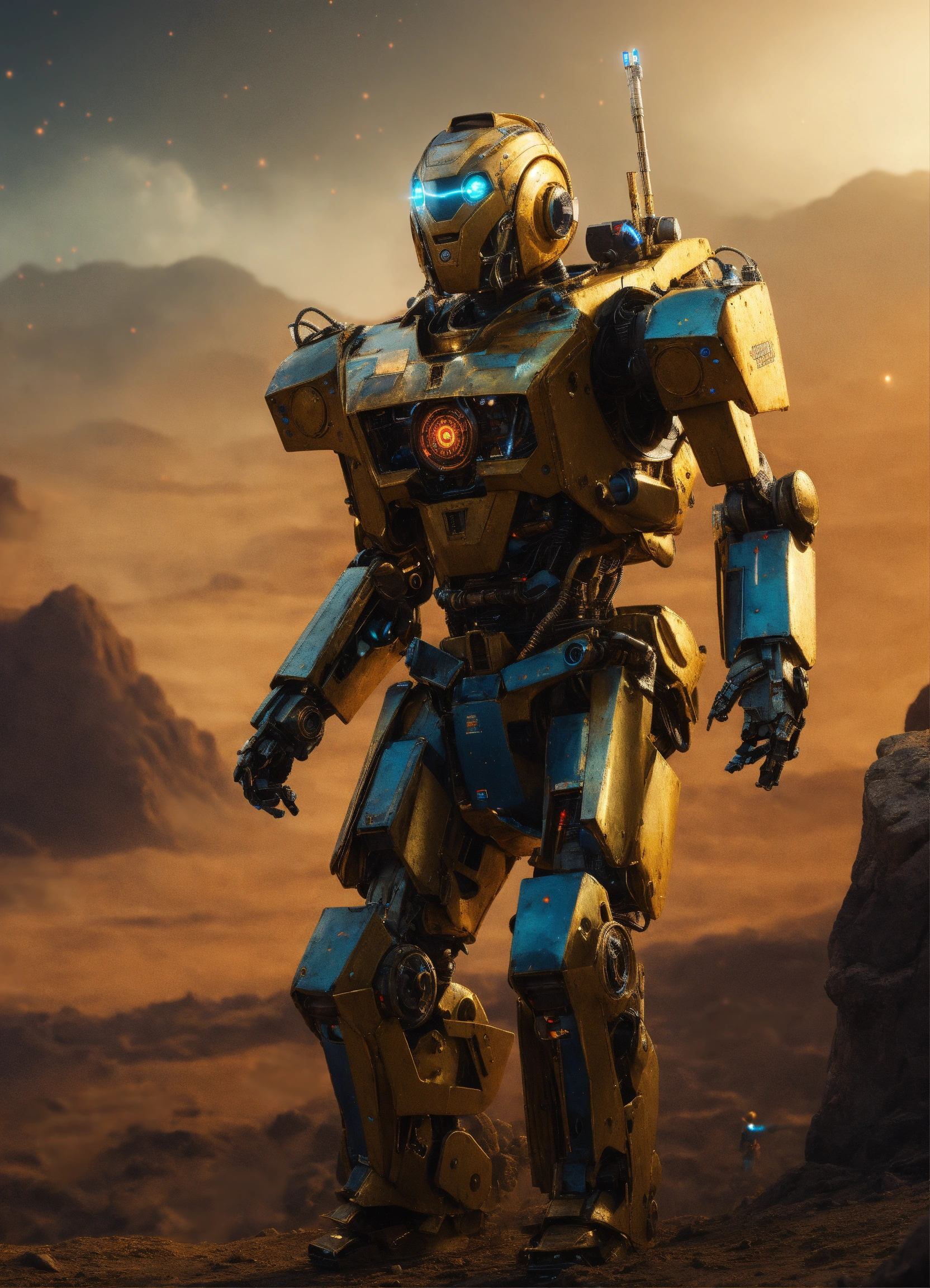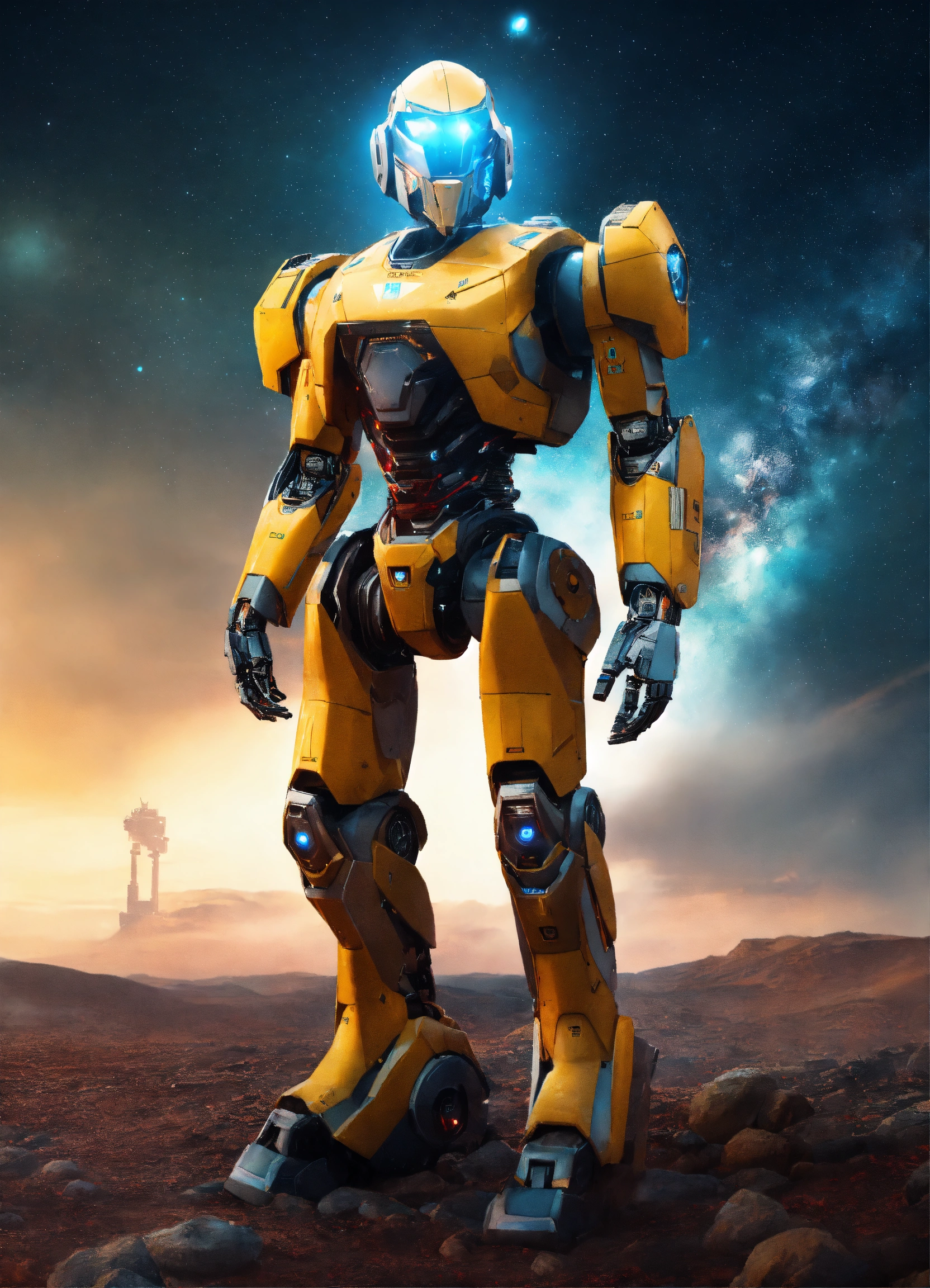 Guerrero guardian, hombre, terminado, robot, espacio, realista, 4k, 8k, hq, poderoso, futuro, poderoso, poder