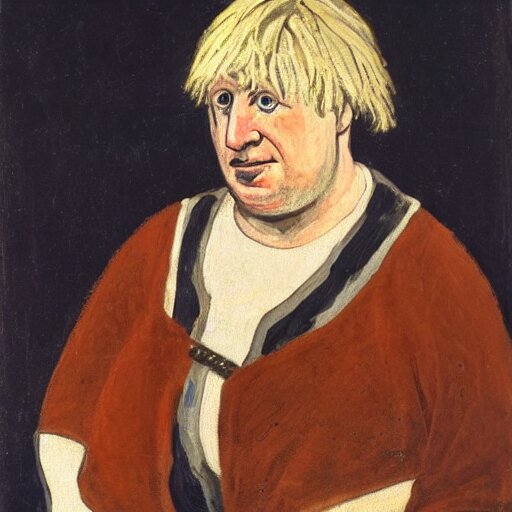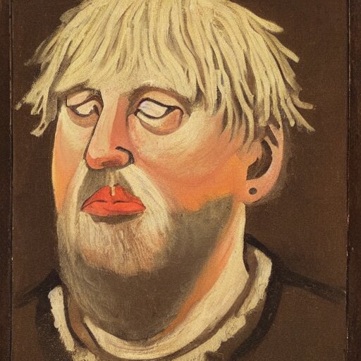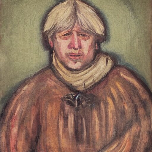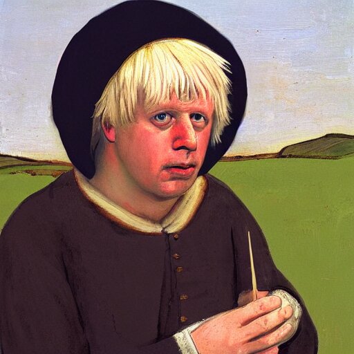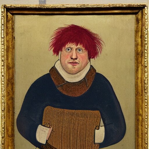 Boris johnson as a 1 2 th century peasant in england, painting, exhibited at british museum, oil on canvas, restored