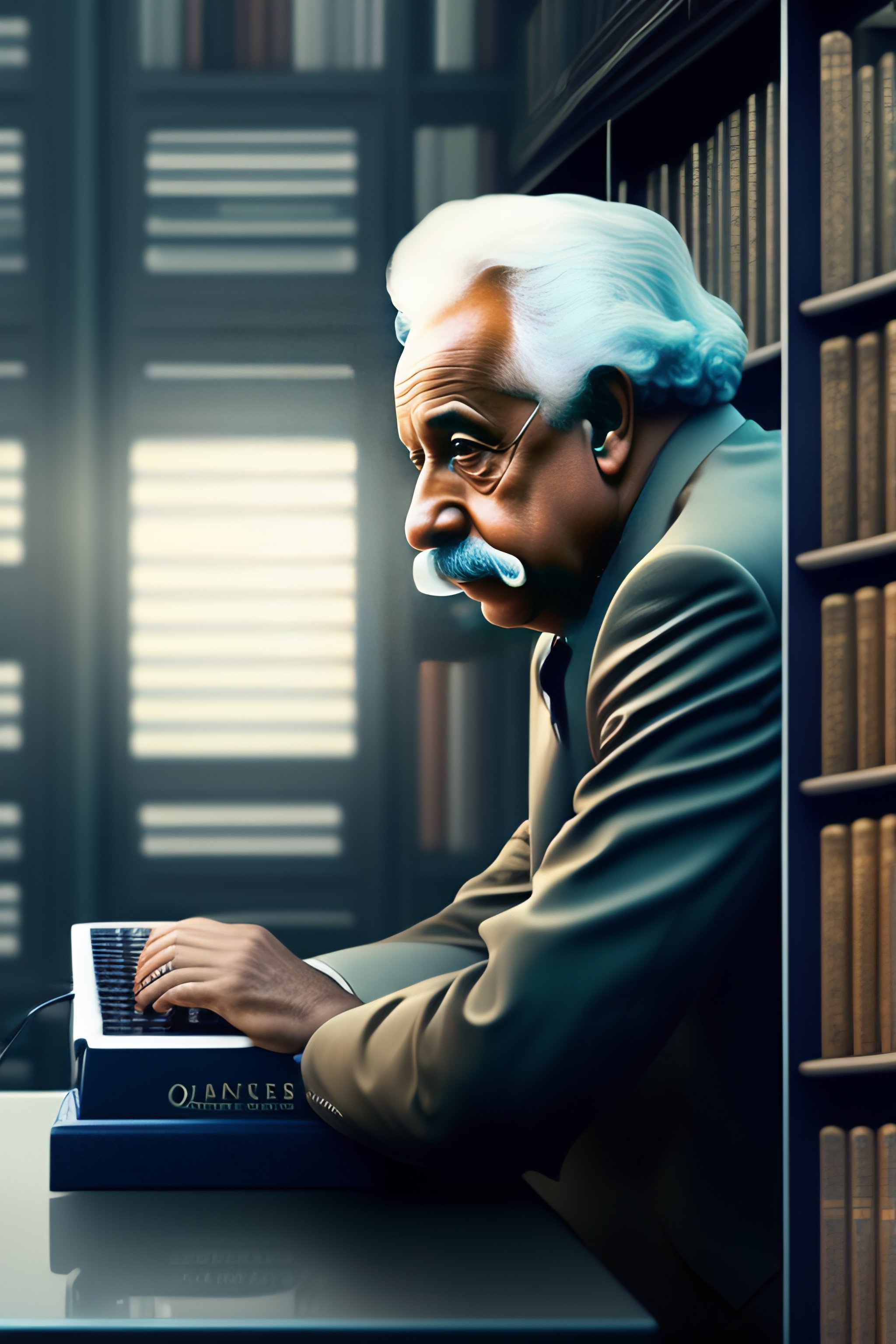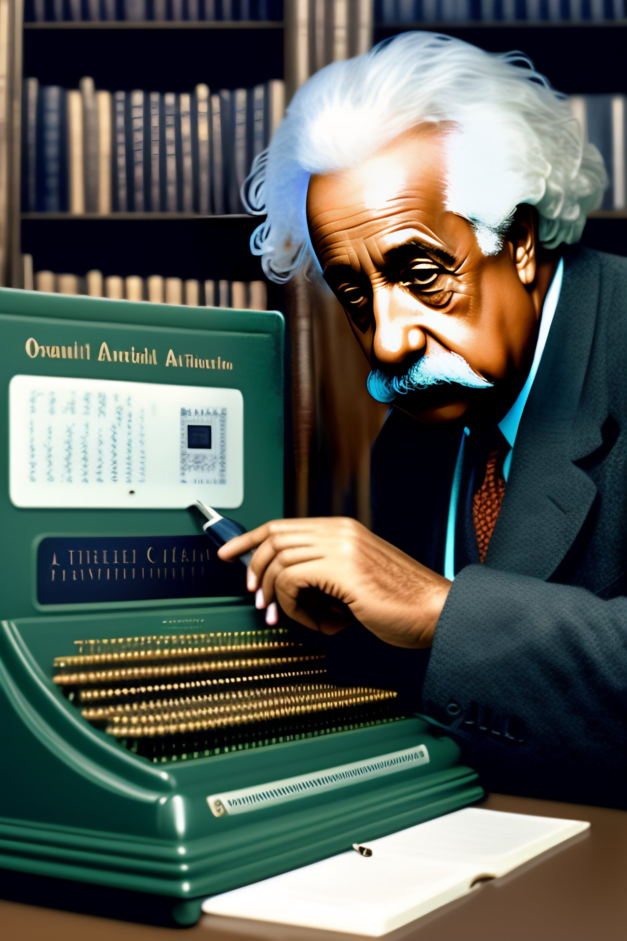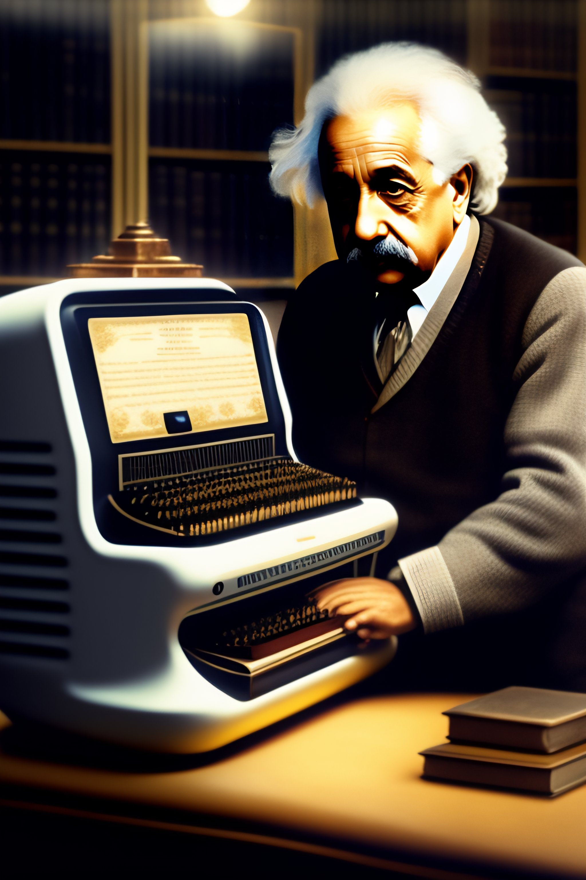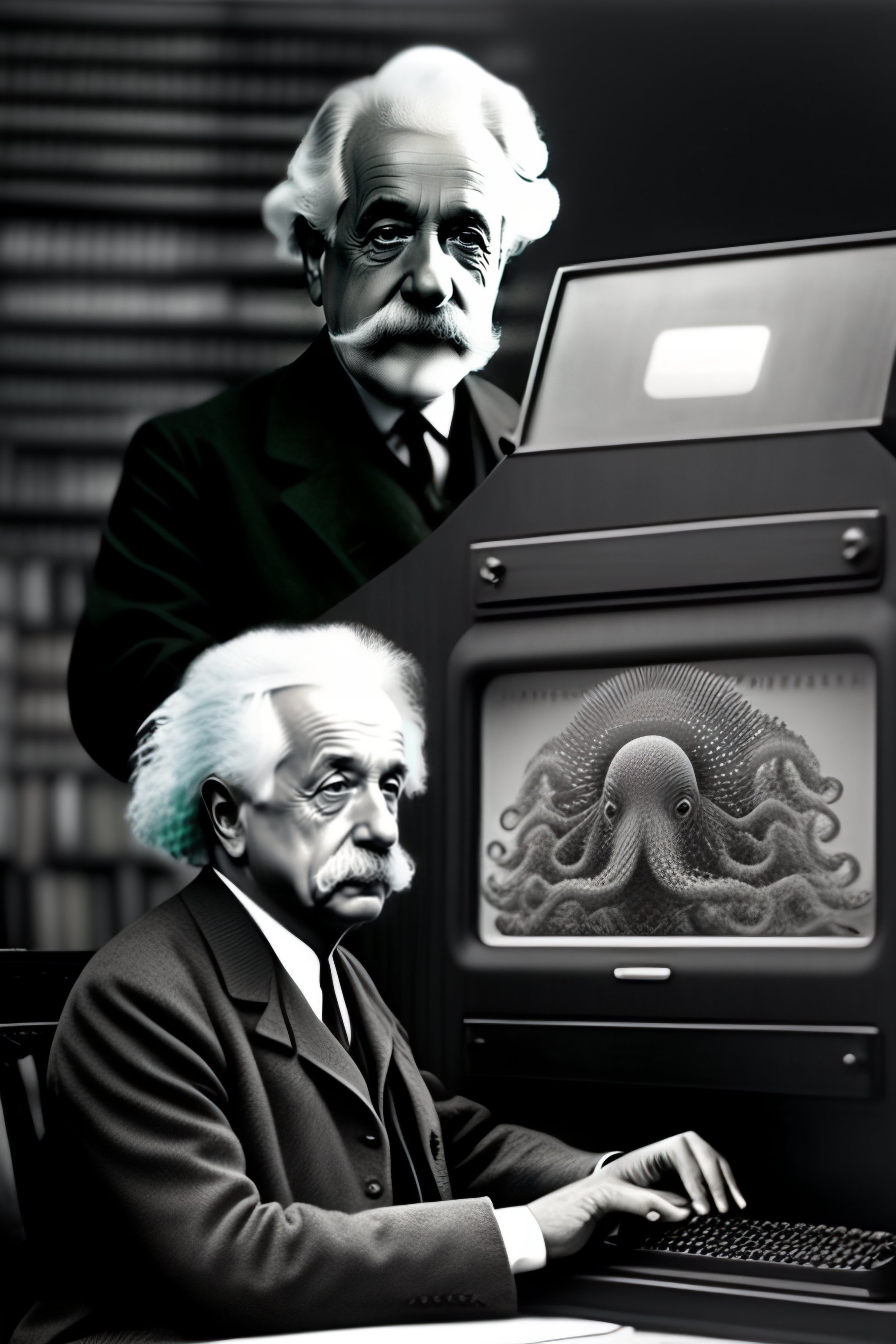 Albert einstein typing on a computer-octopus hybrid