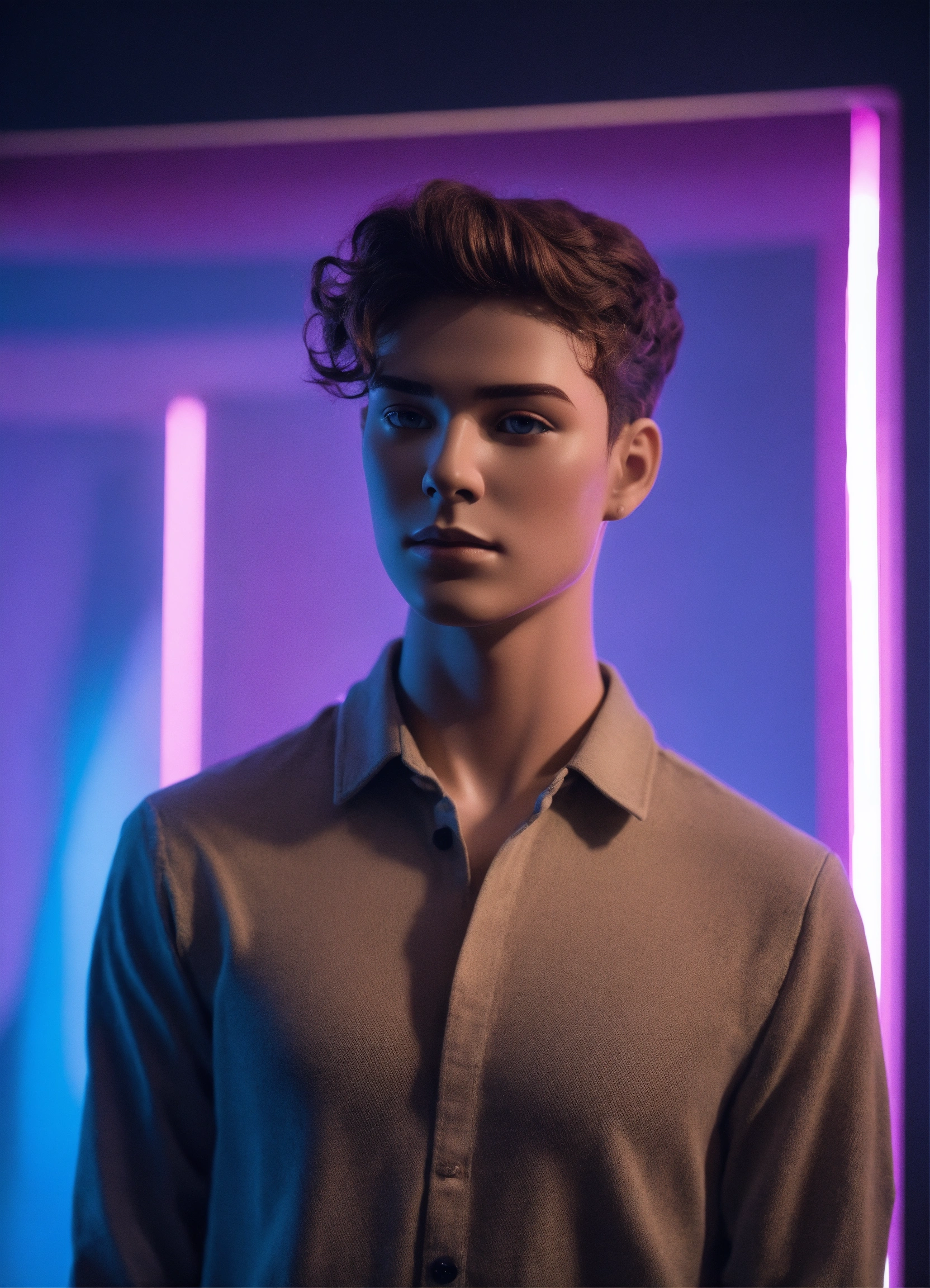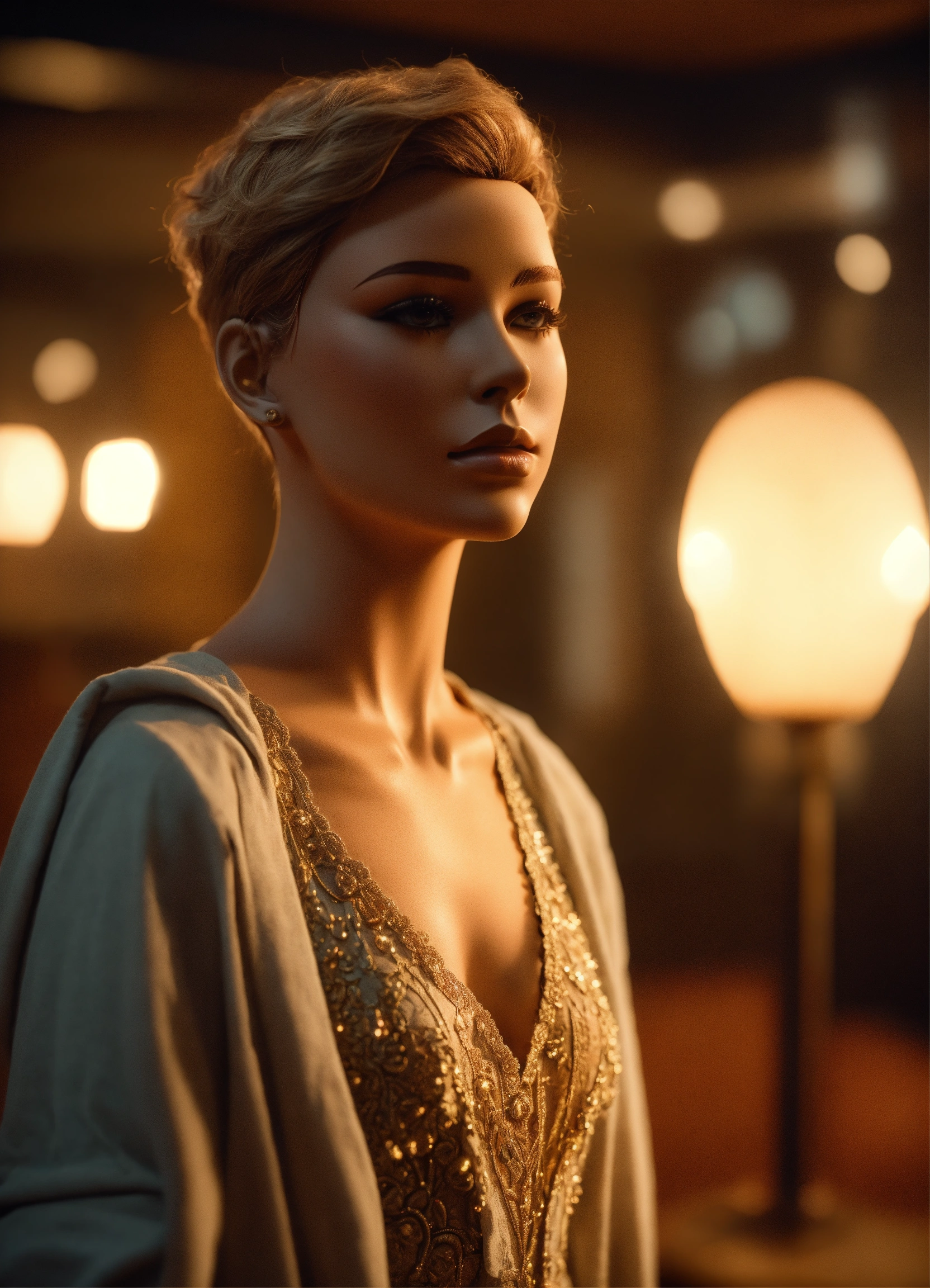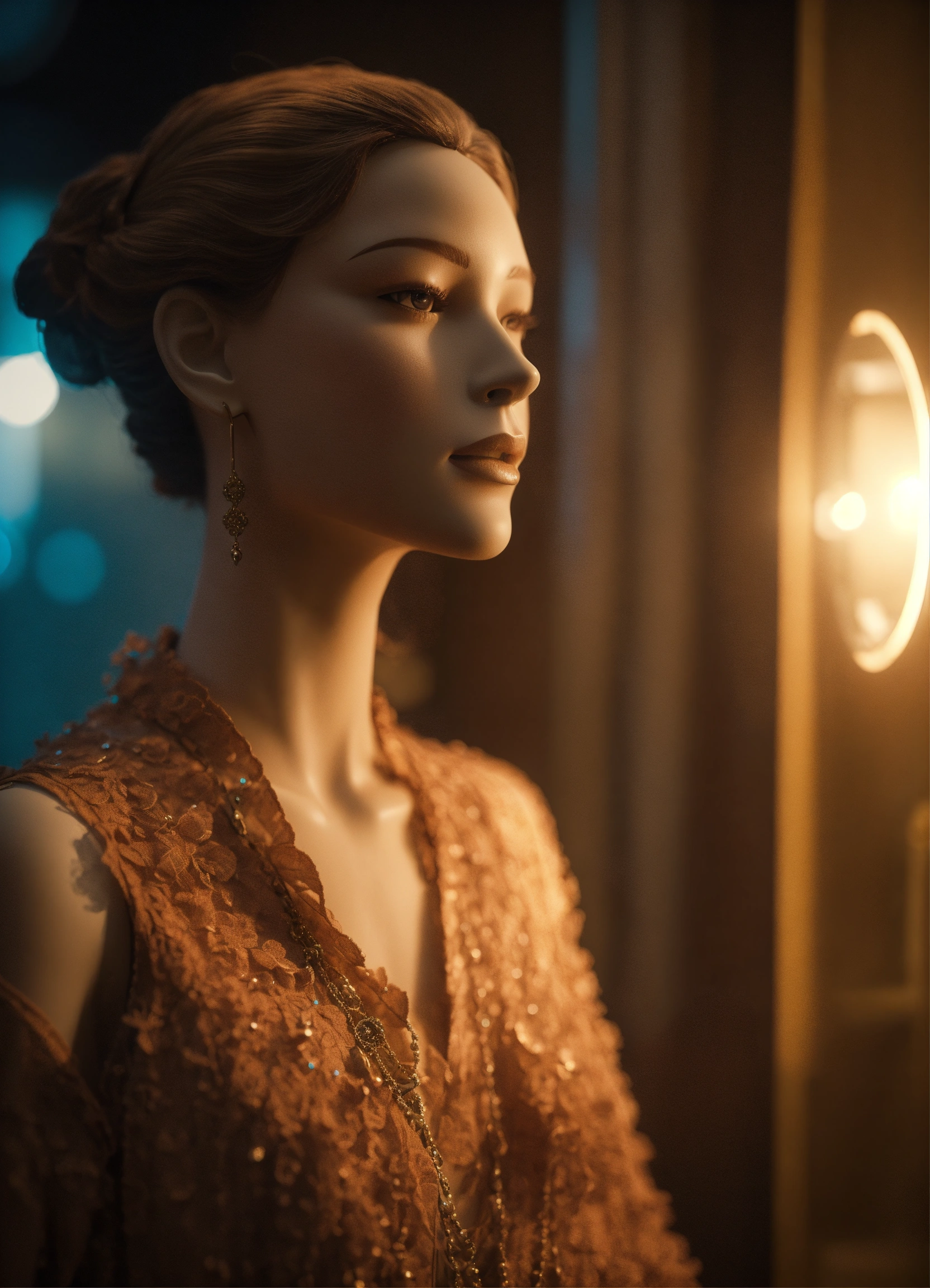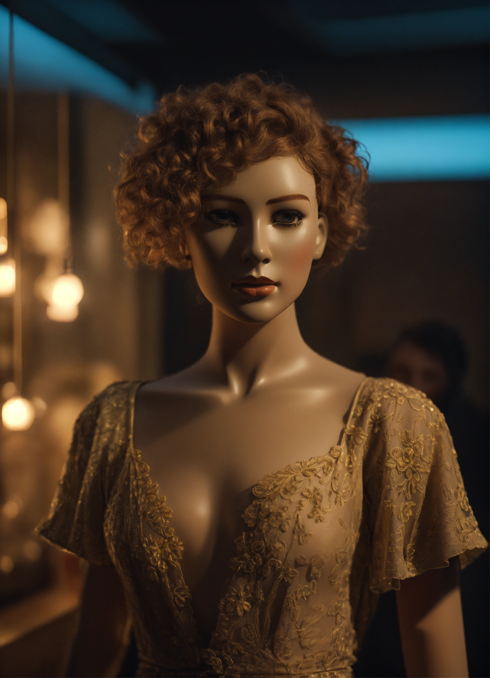 A young smart man is loving a female mannequin, mood lighting, wide front shot, 8k, luxcorerender, earthly colour, cinematic photography, real humans, real images, matte finish, shot on arri anamorphic, extreme wide shot, smooth, sharp focus, ornate, highly dynamic, particulate, hyperreal, wide shot