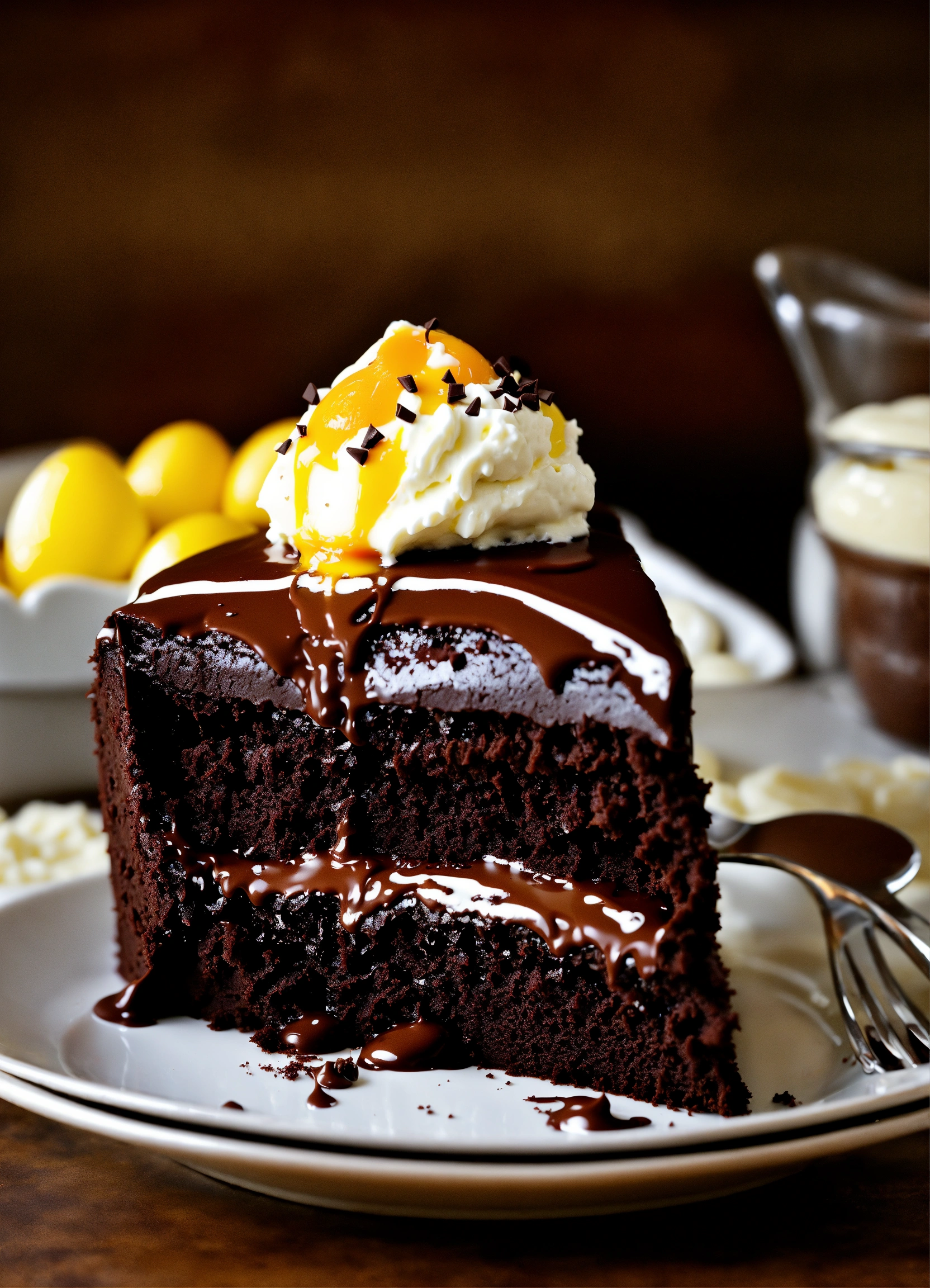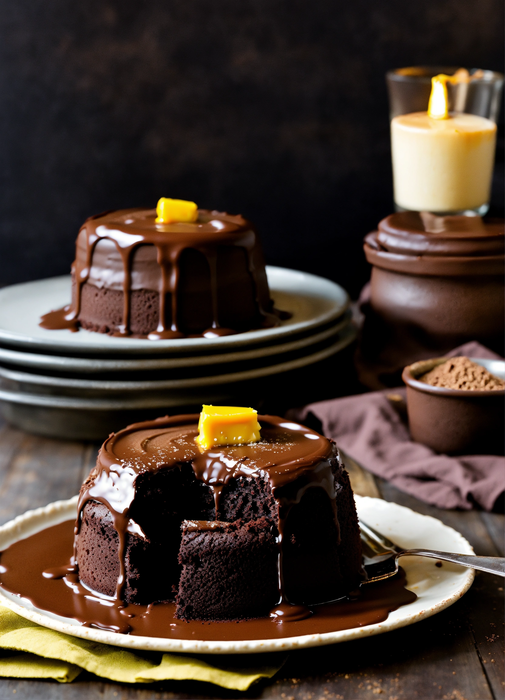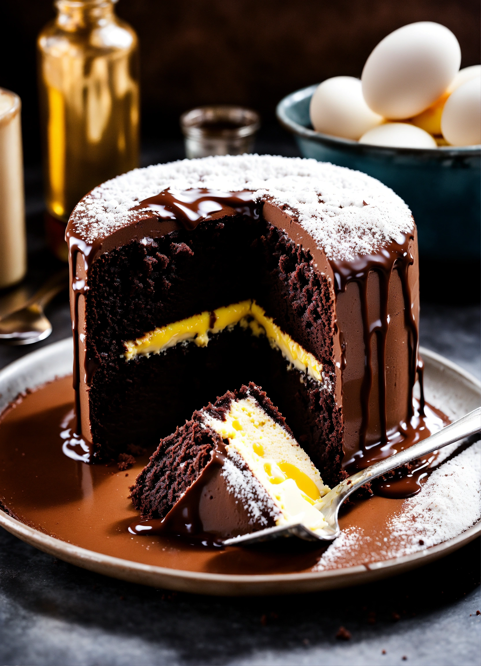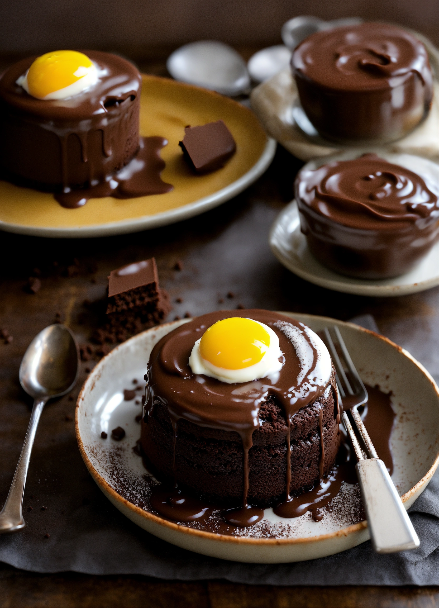 Chocolate lava cakeingredients dark chocolate, butter, eggs, sugar, flour, vanilla extract. instructions melt chocolate and butter. beat eggs with sugar, add melted chocolate, flour, and vanilla combined into a cake that has chocolate ganache