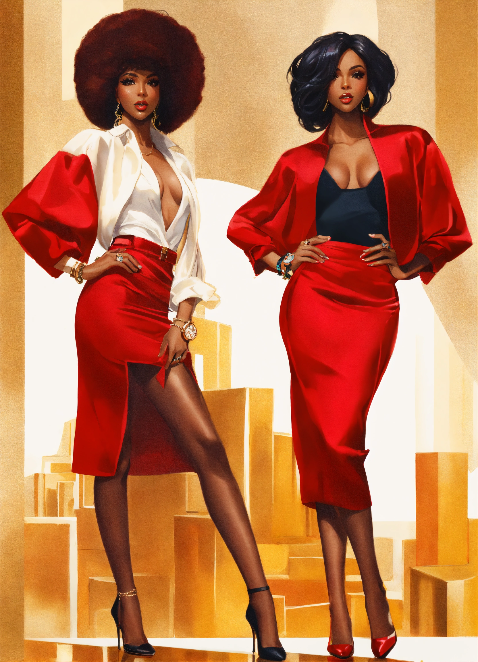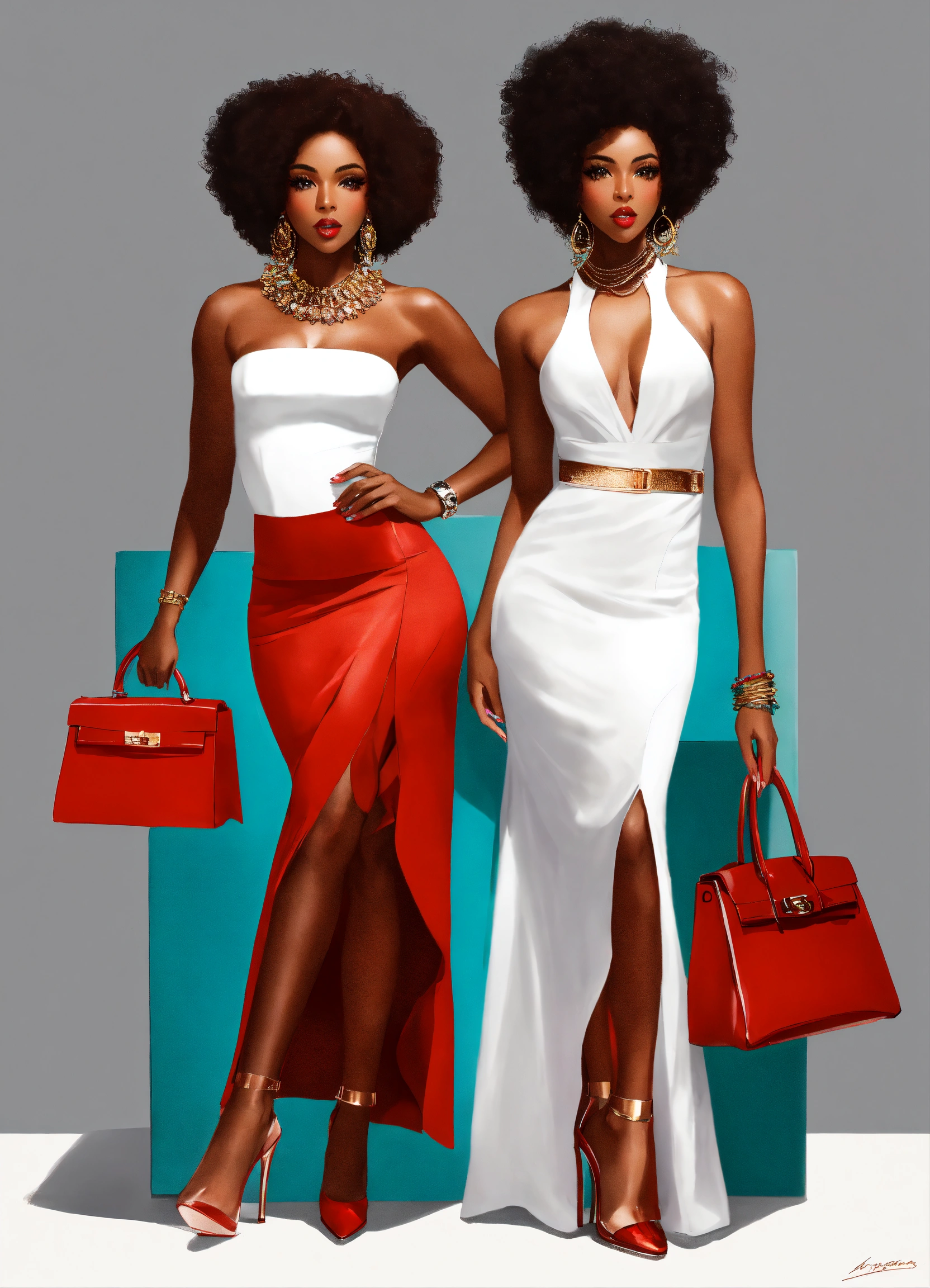 Generate a stunning greeting card horizontal layout an image featuring a group of striking african american women who are either sisters or close friends. these women exude high fashion and elegance, taking inspiration from iconic models like naomi campbell and kelly rowland. adorned in the vibrant colors of delta sigma theta, with their outfits in a rich and bold combination of crimson and white . each woman stands against a solid white backdrop solid white background. they are tall in super high, gleaming gold stiletto heels, adding an extra touch of glamour to their ensemble. accessories include the coveted birkin bags, exquisite bvlgari serpenti tubogas 35mm black dial 18k rose gold watches, elegant cartier bracelets, which accentuate their luxurious style. full-bodies, set against a pristine, minimalist, which offers a stark contrast to their vibrant outfits and accessories., artgerm
