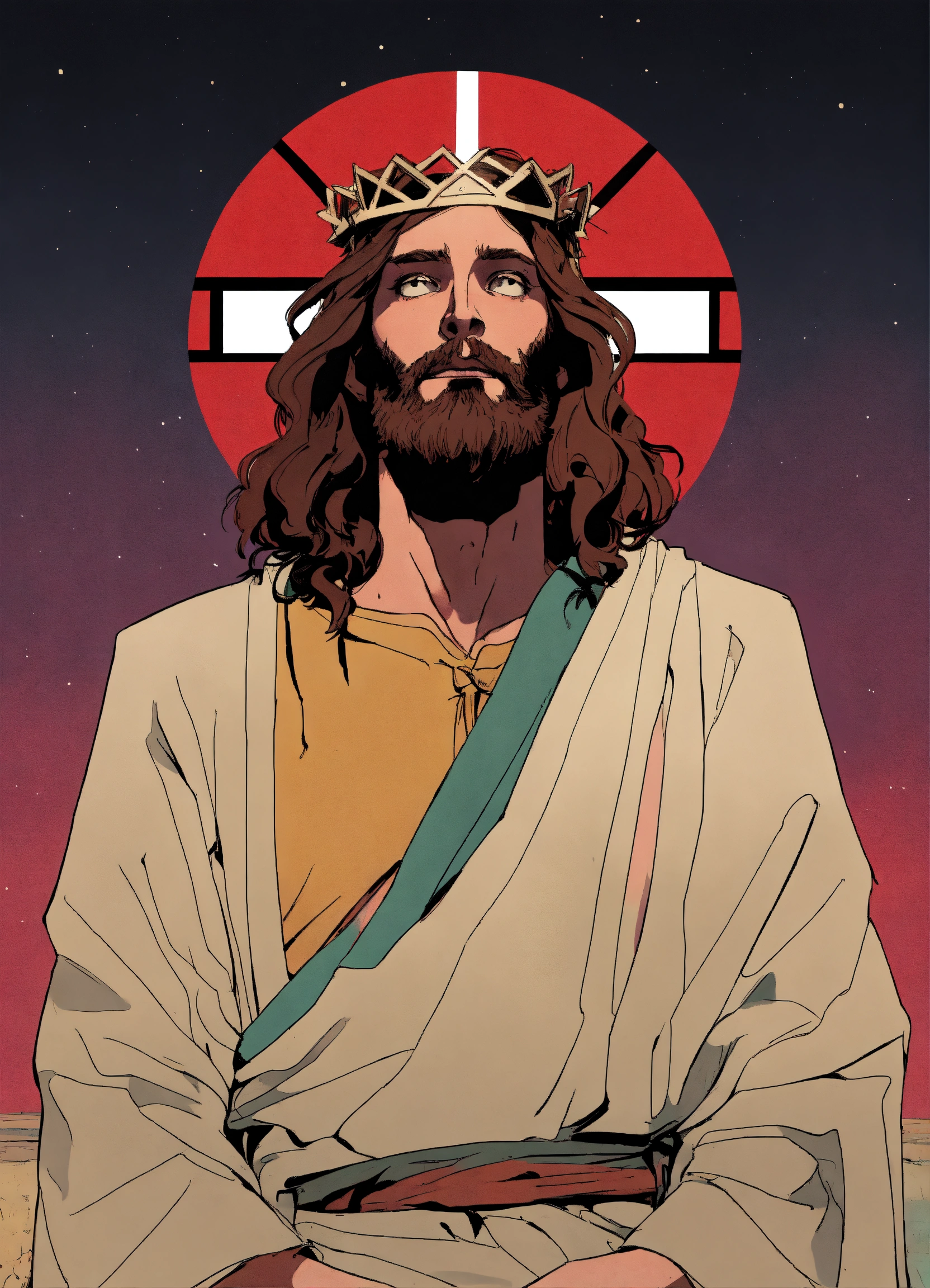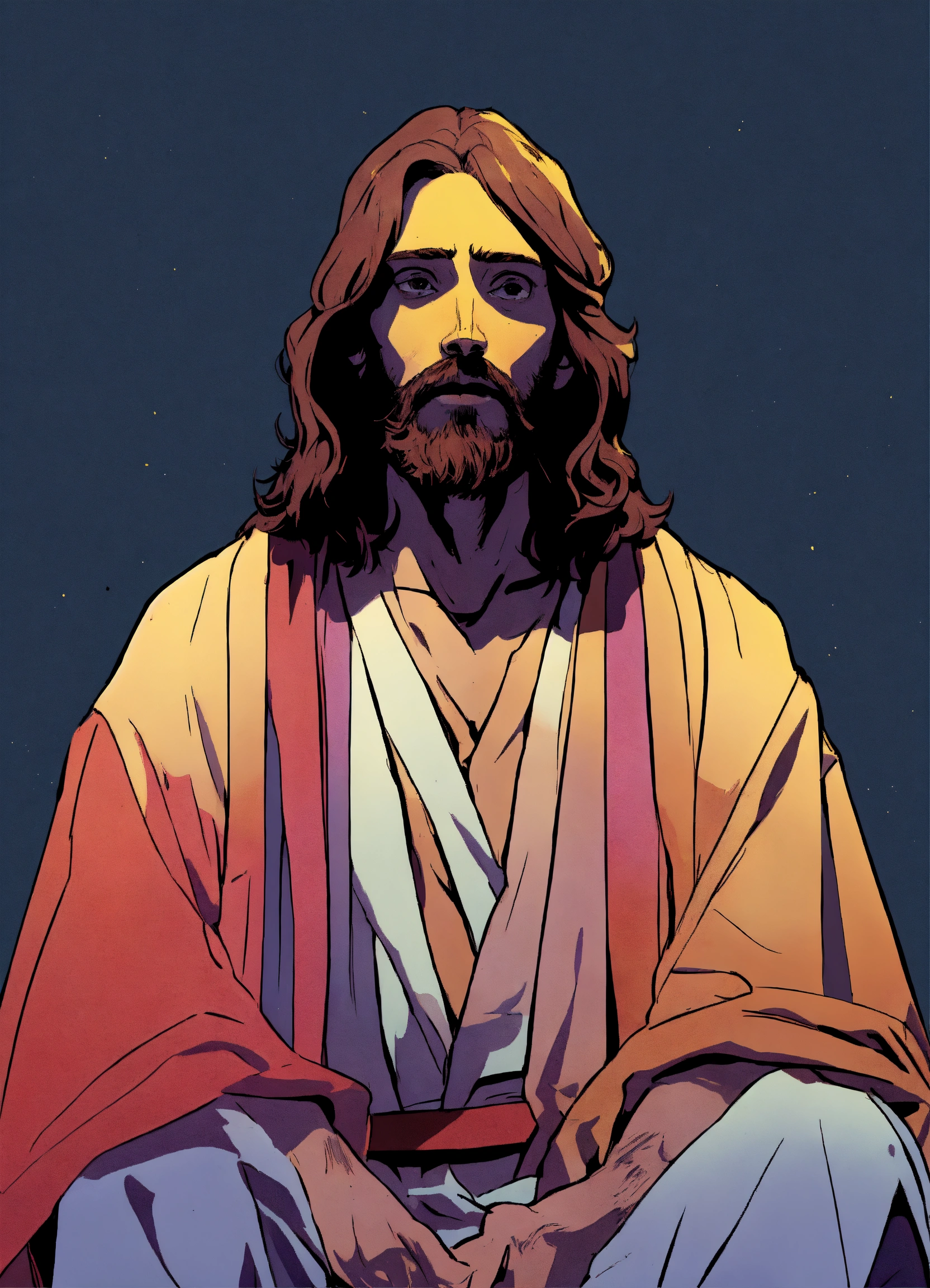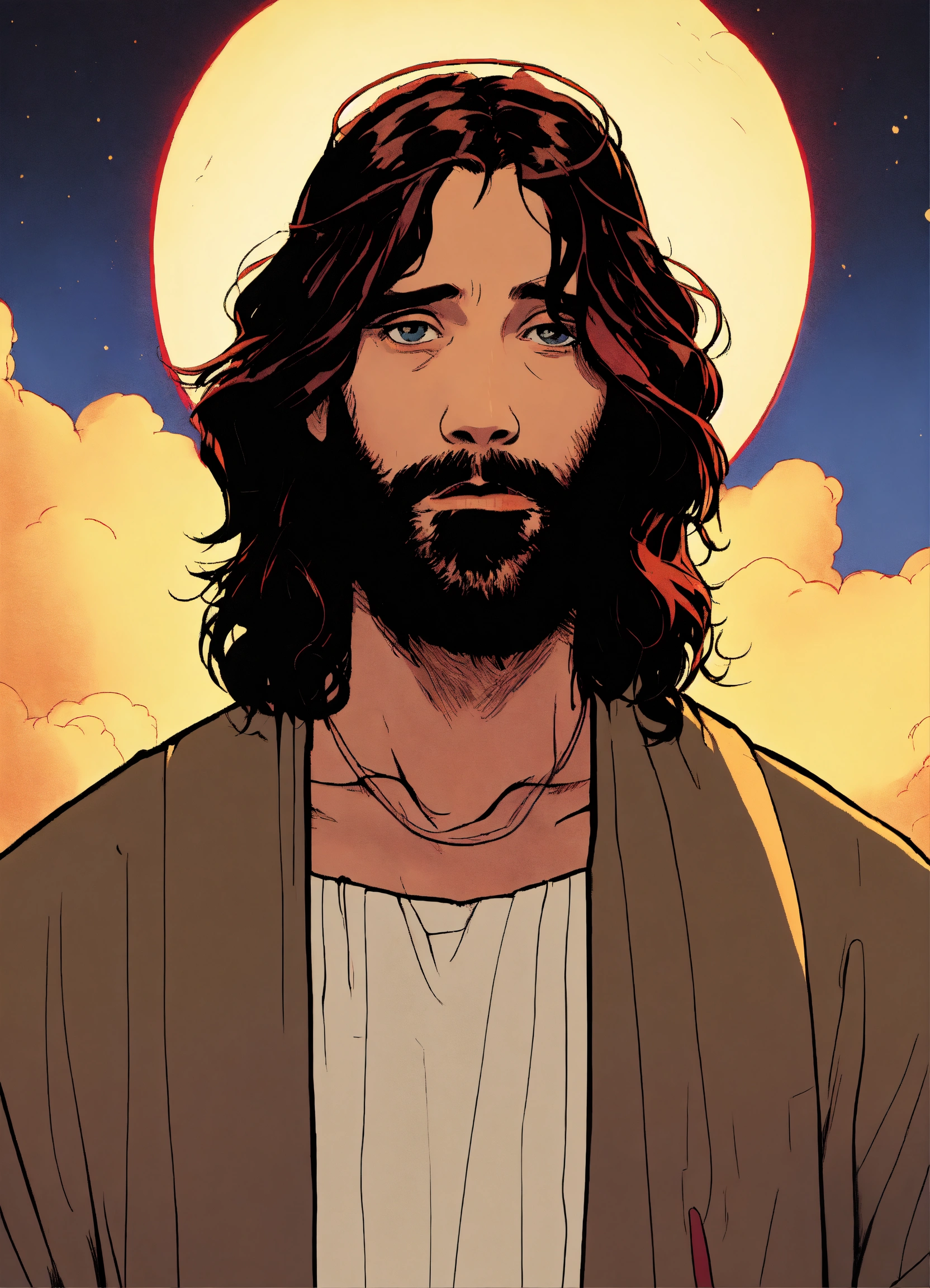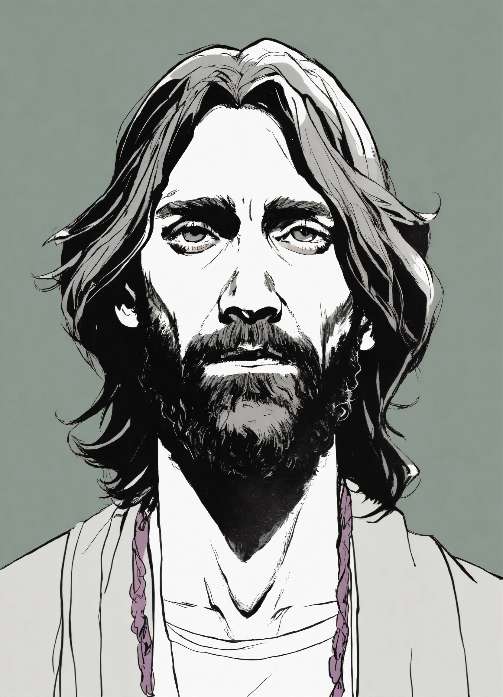 Jesus by jamie hewlett, manga style, concept art by jamie hewlett, jamie hewl, ape nft style, simple, minimalistic.
