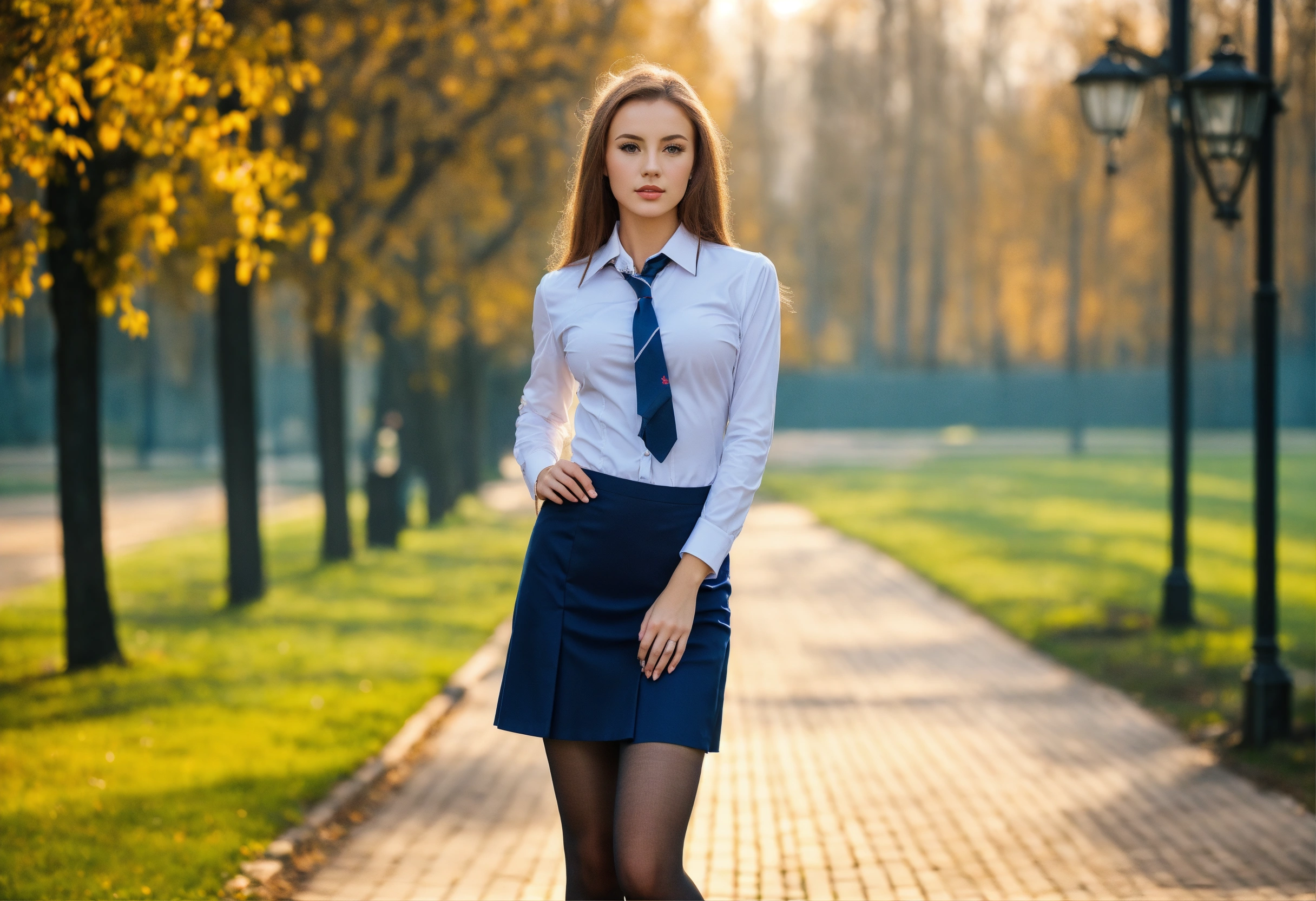 Hot adult woman, polish attractive schoolgirls in uniform, private school uniform, jacket, tight shirt, skirt, tights, feminine, outdoor campus scenes, aura of beauty, relaxation, released tie, wide bust, polish beauty, in belarus, sharp focus, strong composition, angular viewpoint