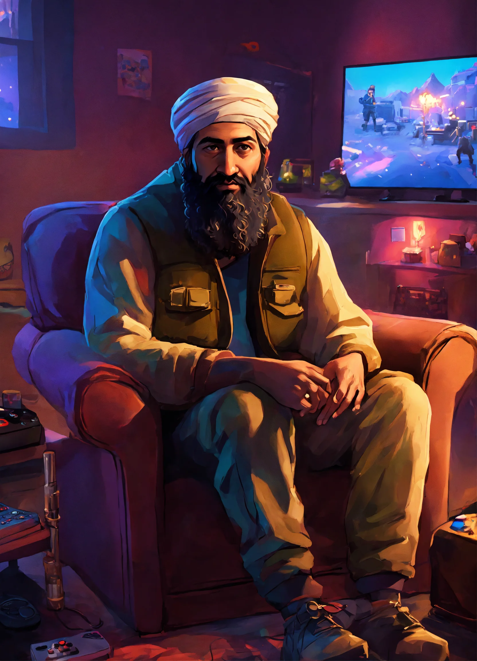 Osama bin laden is playing fortnite photo realistic