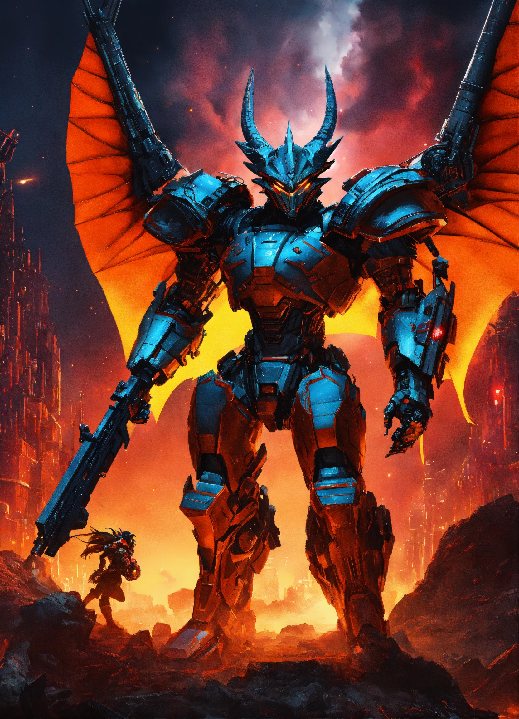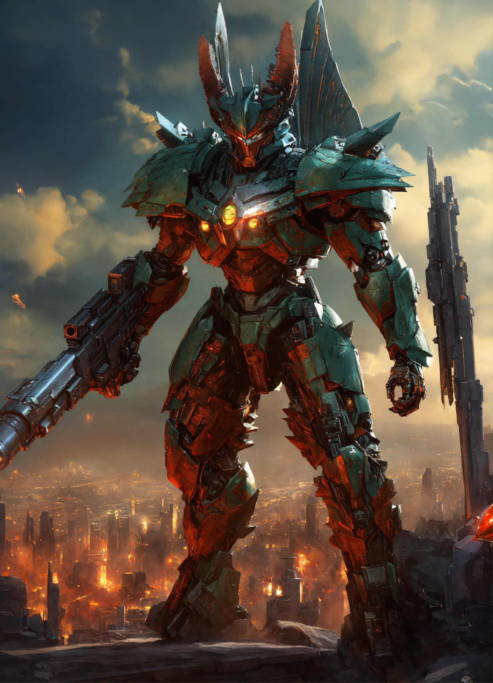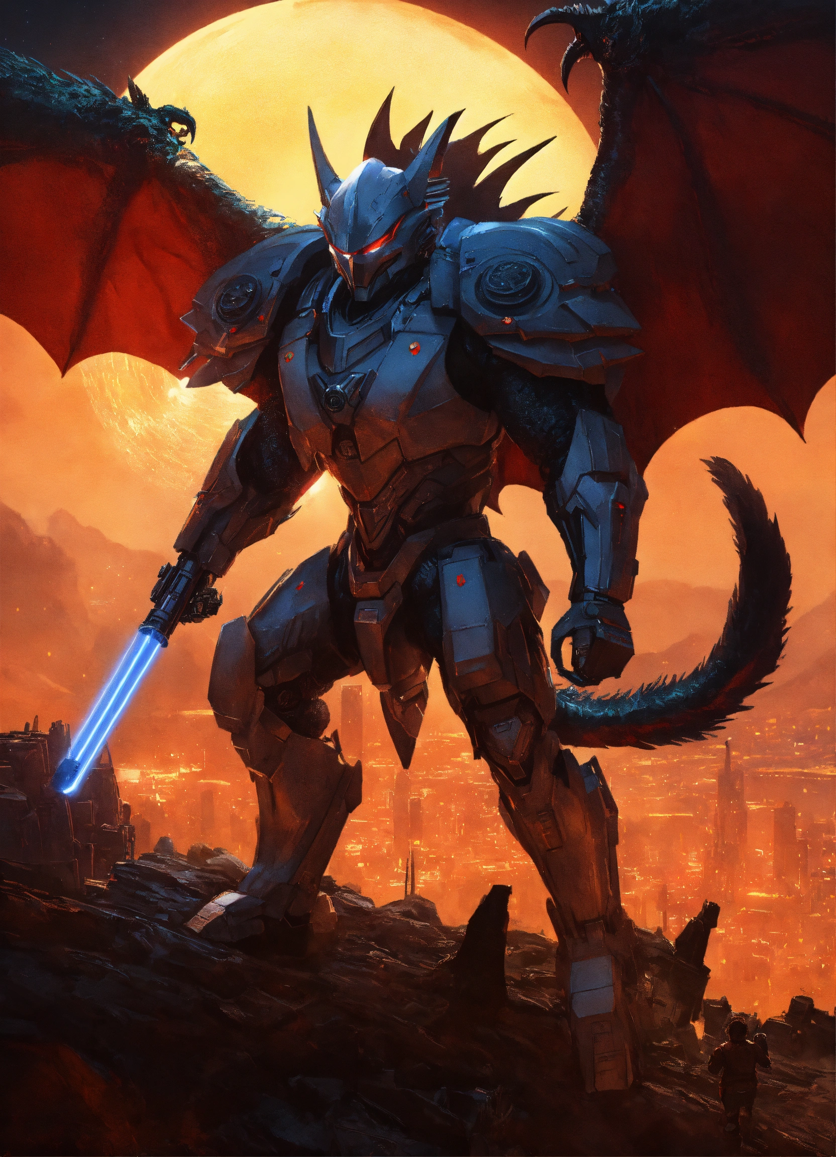 Dragon hybrid mutated male & female werewolves\raven batman, dracula, vampire, superhero athletic cyborg men & women in 60th century dragon-like muscular humanoid in full body armor scenes or mega future blade runner cities scenarios holding 5965 a.d. advanced star wars blasters, laser rifles & ancient looking h. r. giger-like gears of war-like big gun weapons in a photo of a quetzal armored figure fighting on a detailed advanced futuristic civilized back-drop densely or heavily populated worlds with metallic chrome wolf & raven vampire dragons on land & in space vs rom the space knight, battlestar galactica meta-hybrid cylons vs alien cyborg kaiju space predators in style of laurie greasley, studio ghibli, akira, kryptonian, galvatron movie version, tomiyama, gene roddenberry, george lucas, james gilliard, genshin impact, pixiv fanbox, acrylic palette light sabers, 4k, chrome, vibrant colors, deviantart, trending on artstation, rendered in highly detailed cinematic studio quality gci
