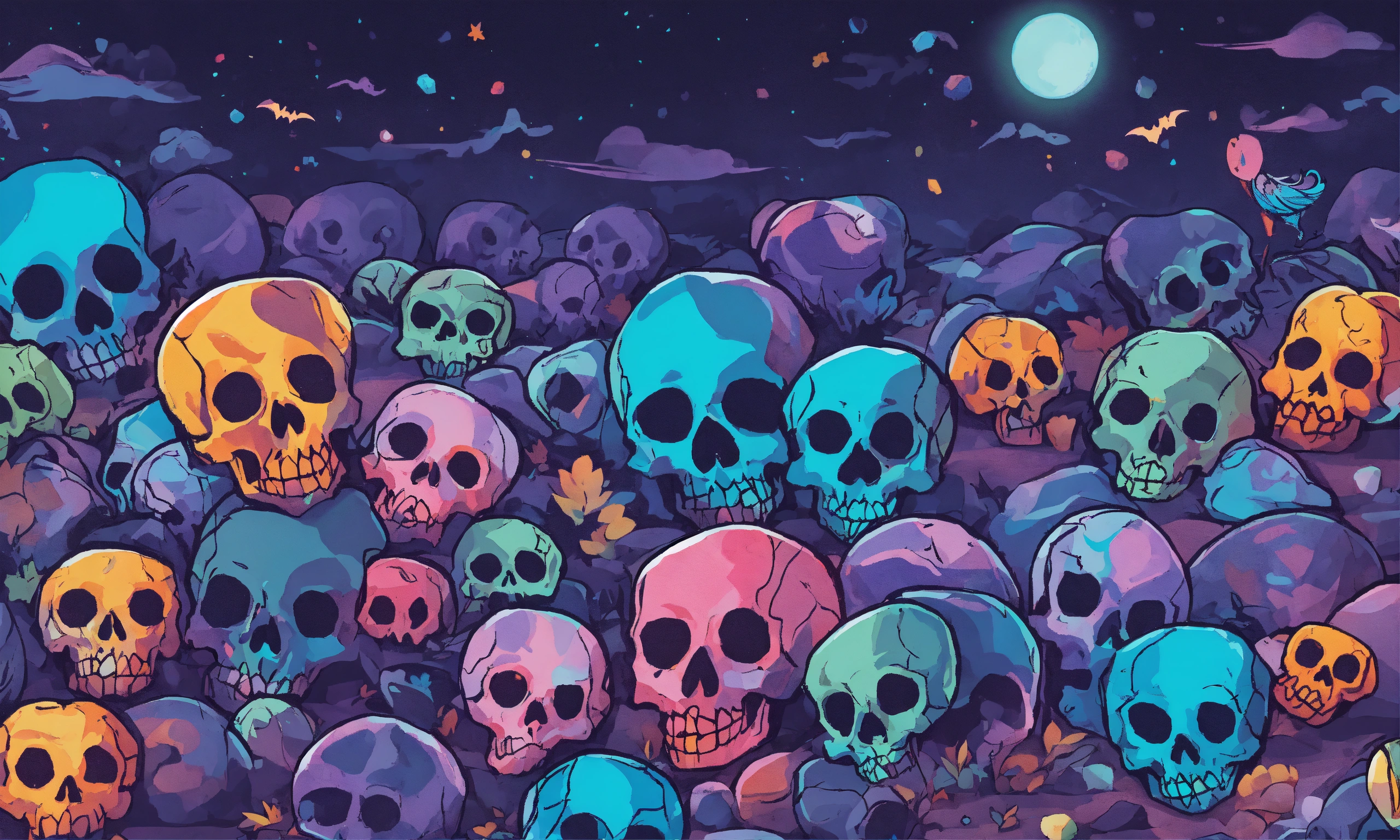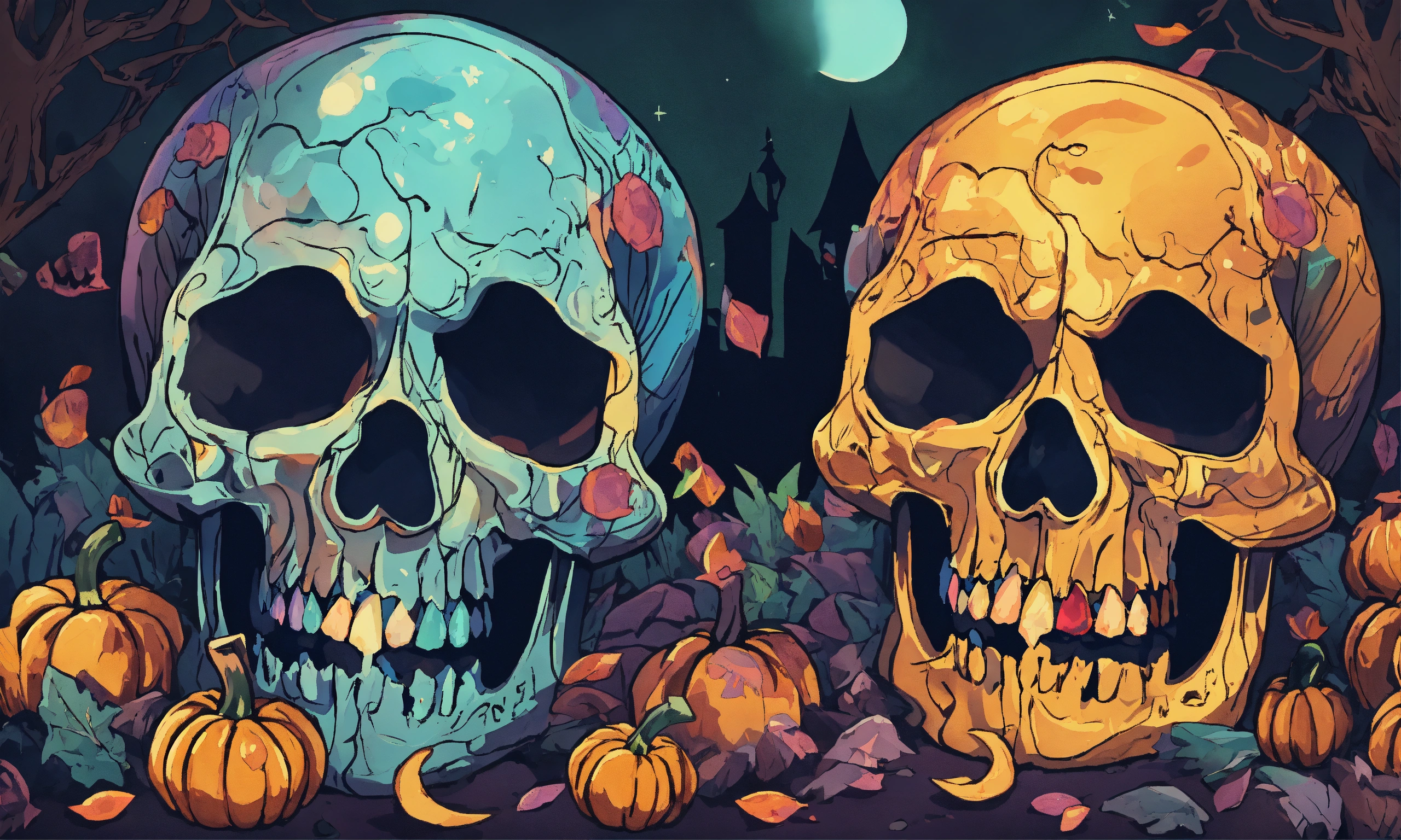 Opal stone color halloween happy skulls club illustration art, die-cut sticker, paper cut, magazine illustration, highly detailed, simple, smooth and clean vector curve, no jagged lines, vector art, night behind, no backround