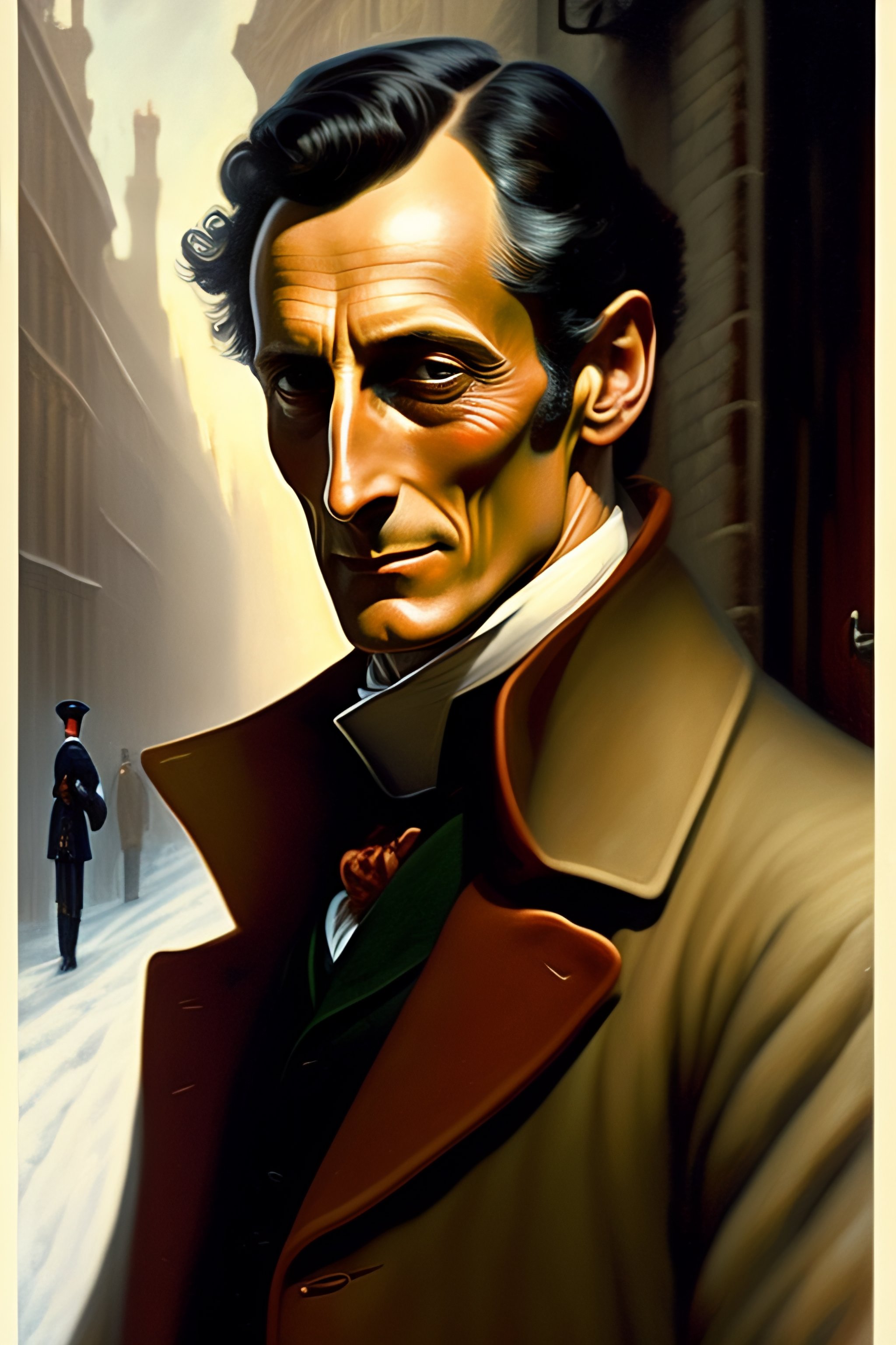 Young peter cushing as sherlock holmes in victorian london streets, intrincate details, by norman rockwell