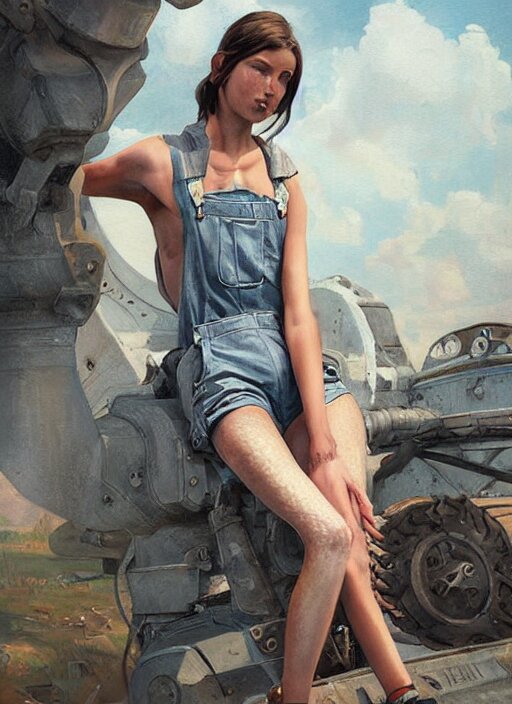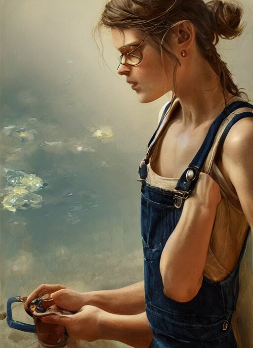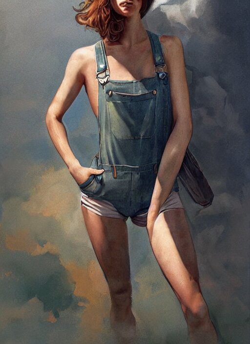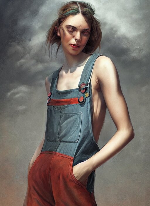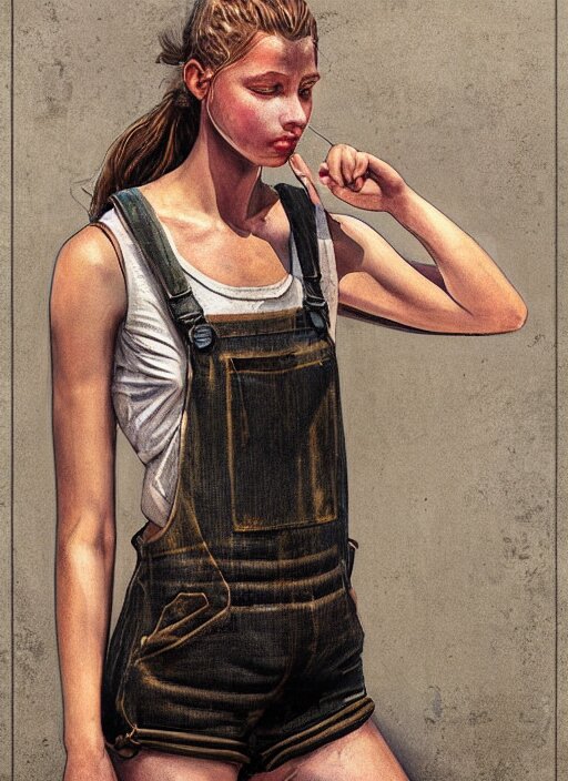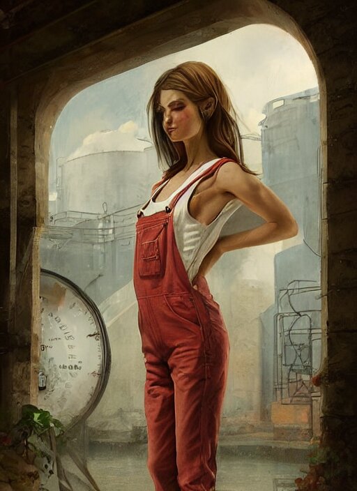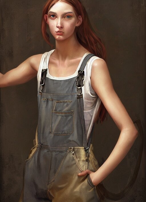 Digital _ painting _ of _ girl in tank top and overalls _ by _ filipe _ pagliuso _ and _ justin _ gerard _ symmetric _ fantasy _ highly _ detailed _ realistic _ intricate _ port