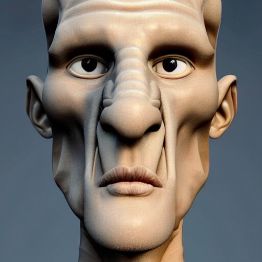 Portrait photograph of a beautiful handsome perfect handsome squidward with majestic thick curly brown hair and an extremely chiseled jawline with sharp jagged cheekbones and a strong symmetrical facial structure with decently big lips realistic hyperrealistic 4 k resolution 8 k resolution highly detailed very detailed extremely detailed hd quality detailed face very detailed face extremely detailed face trending on artstation