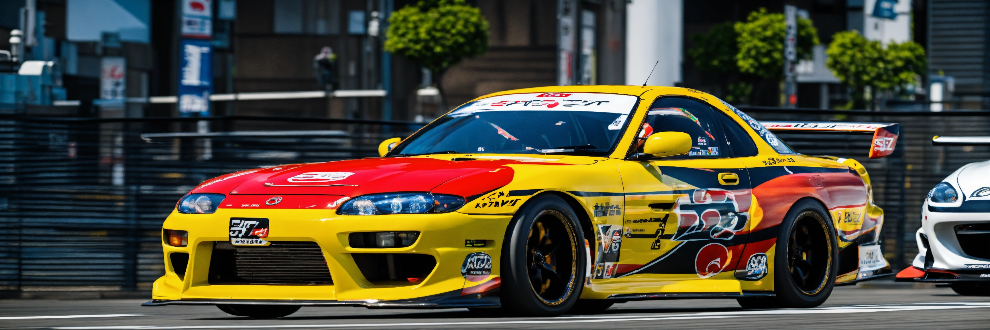 A nissan silvia s15 racing a mazda rx7 in tokyo