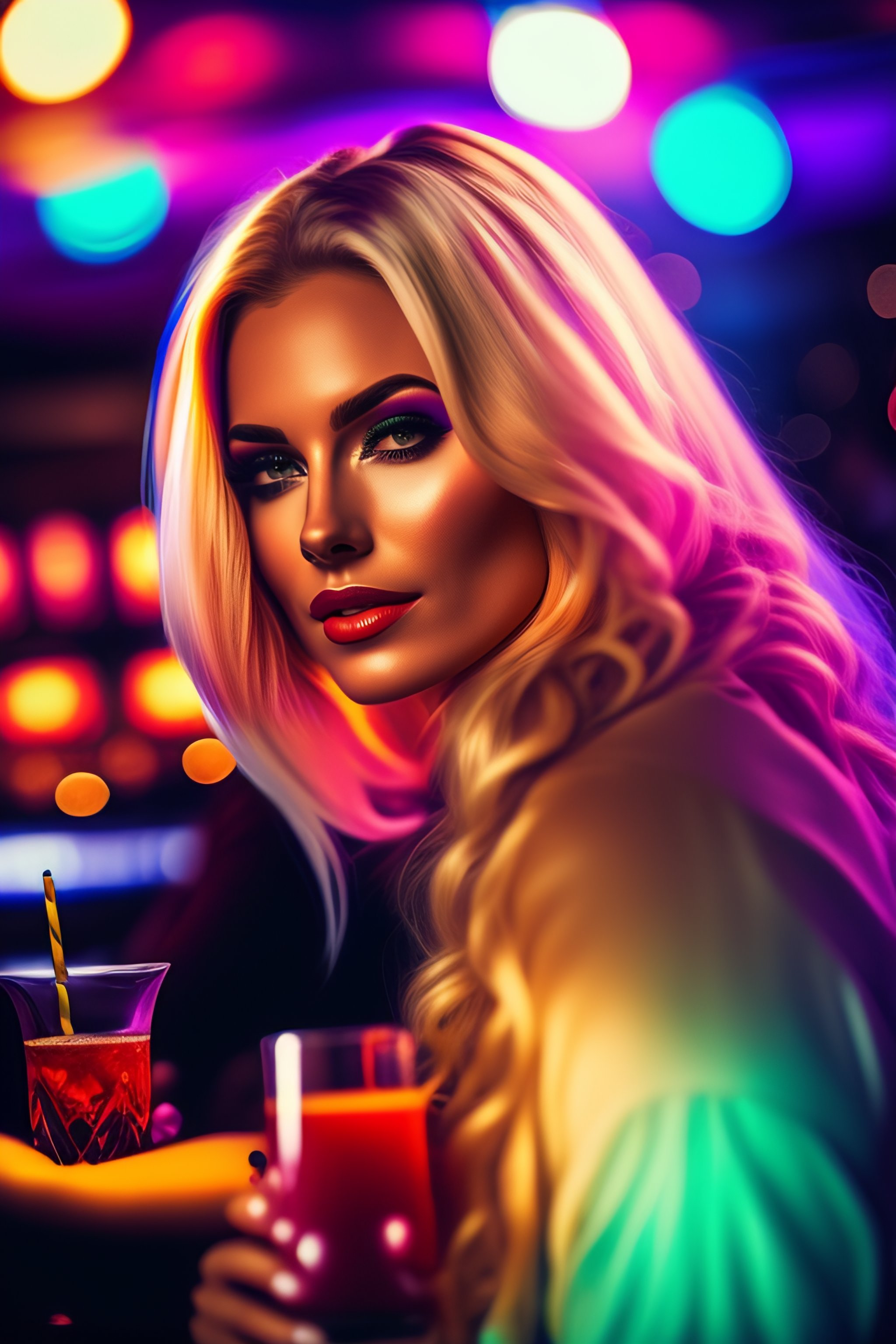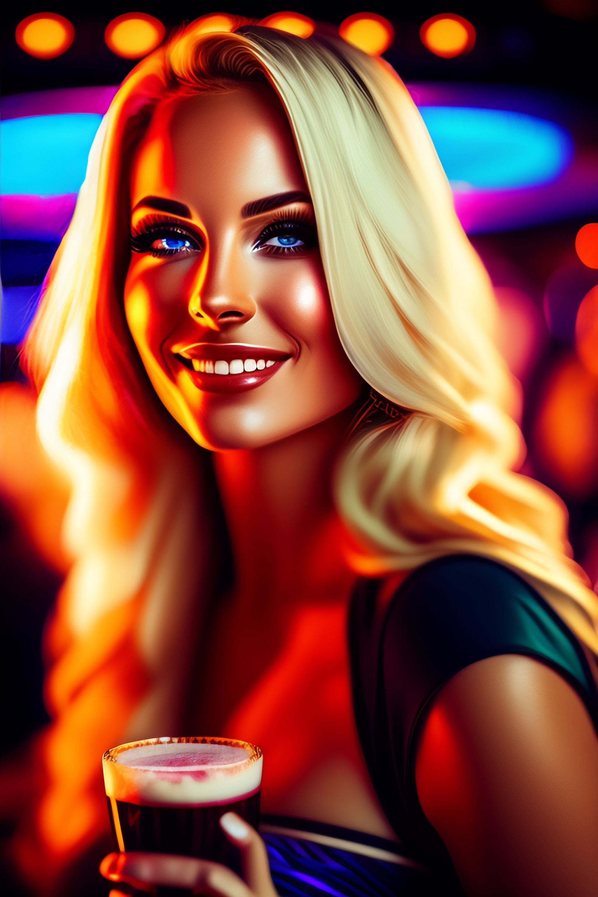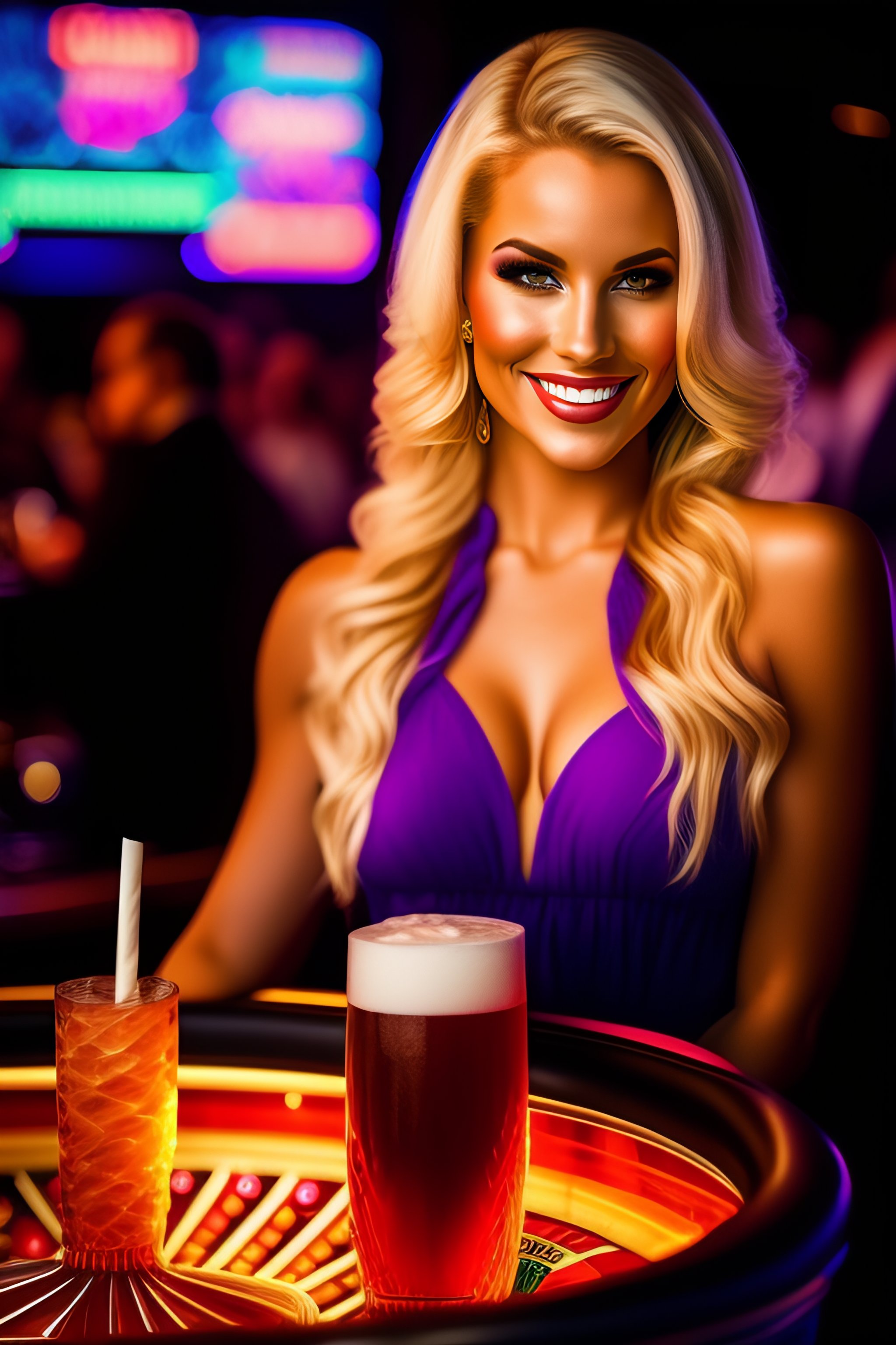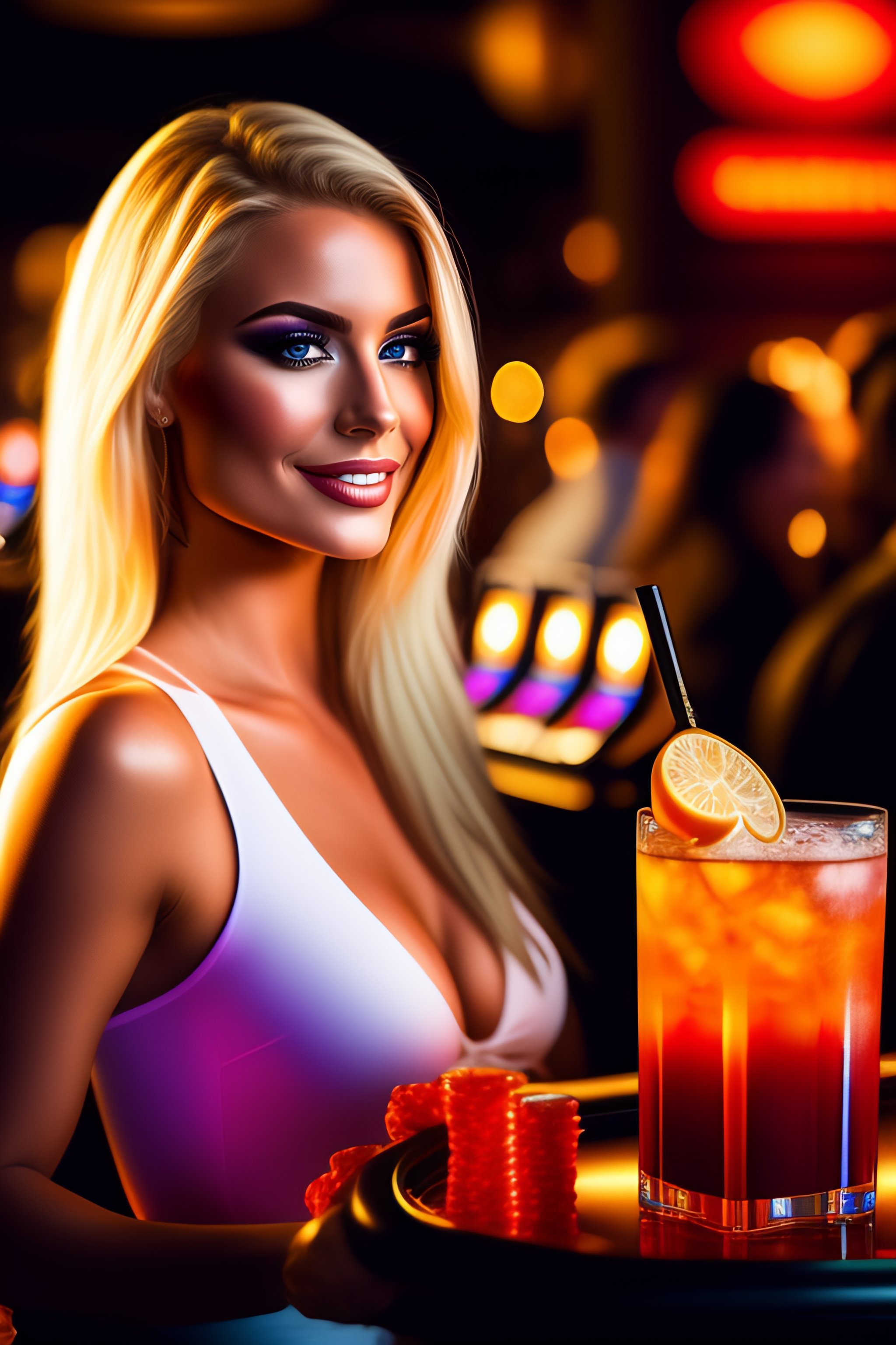 A las vegas casino, people gambling and drinking, a beautiful girl, blonde hair serving drinks, beautiful casino, fun lighting
