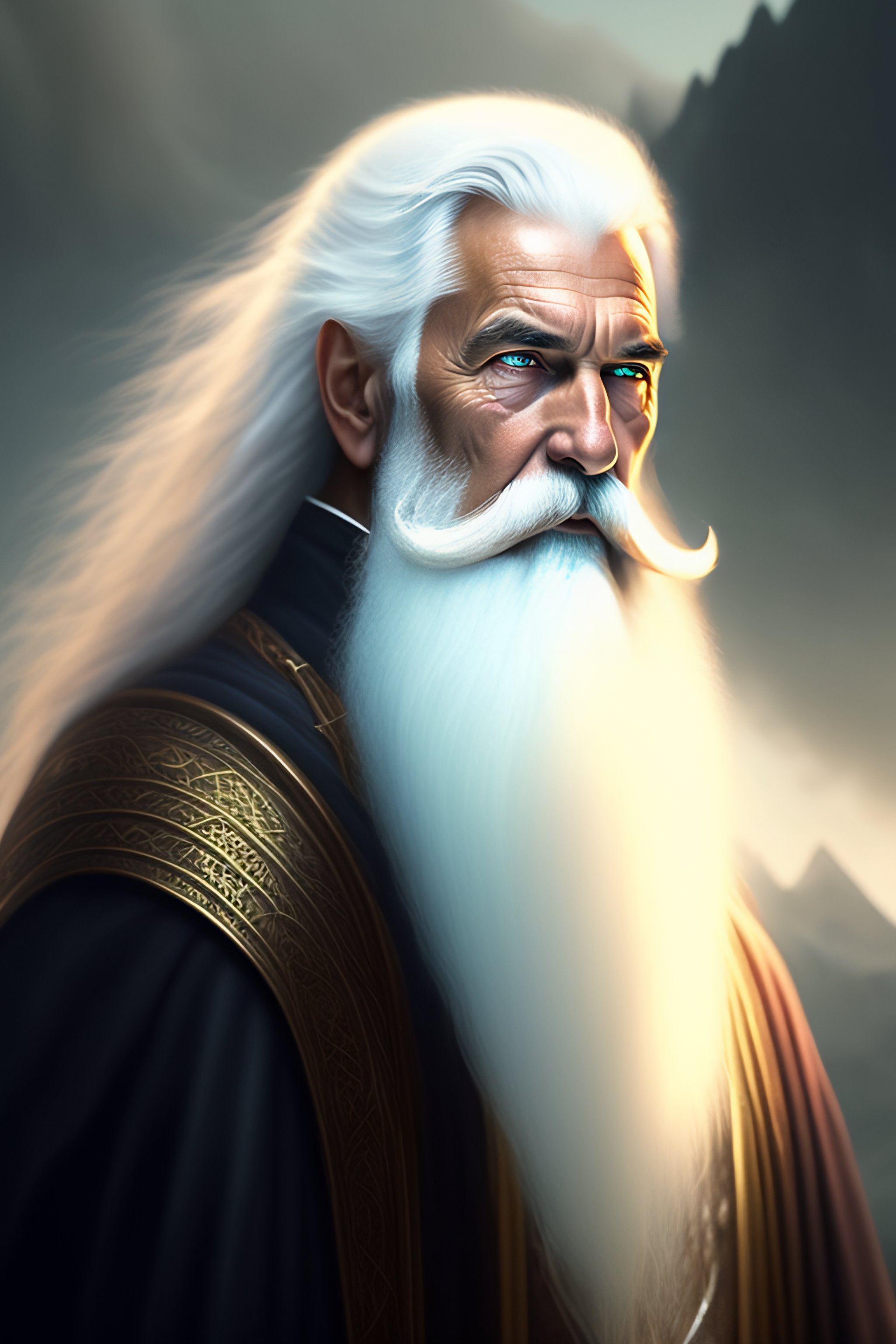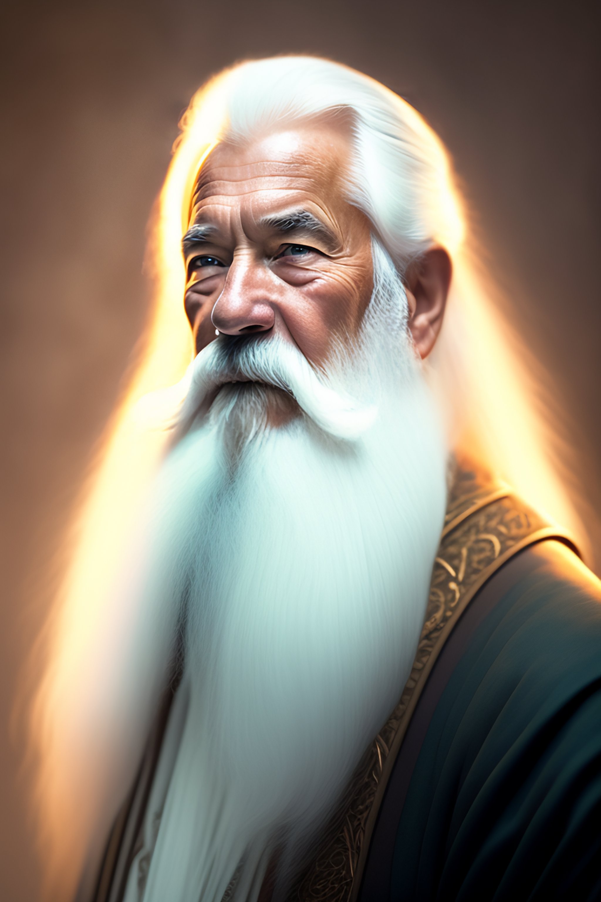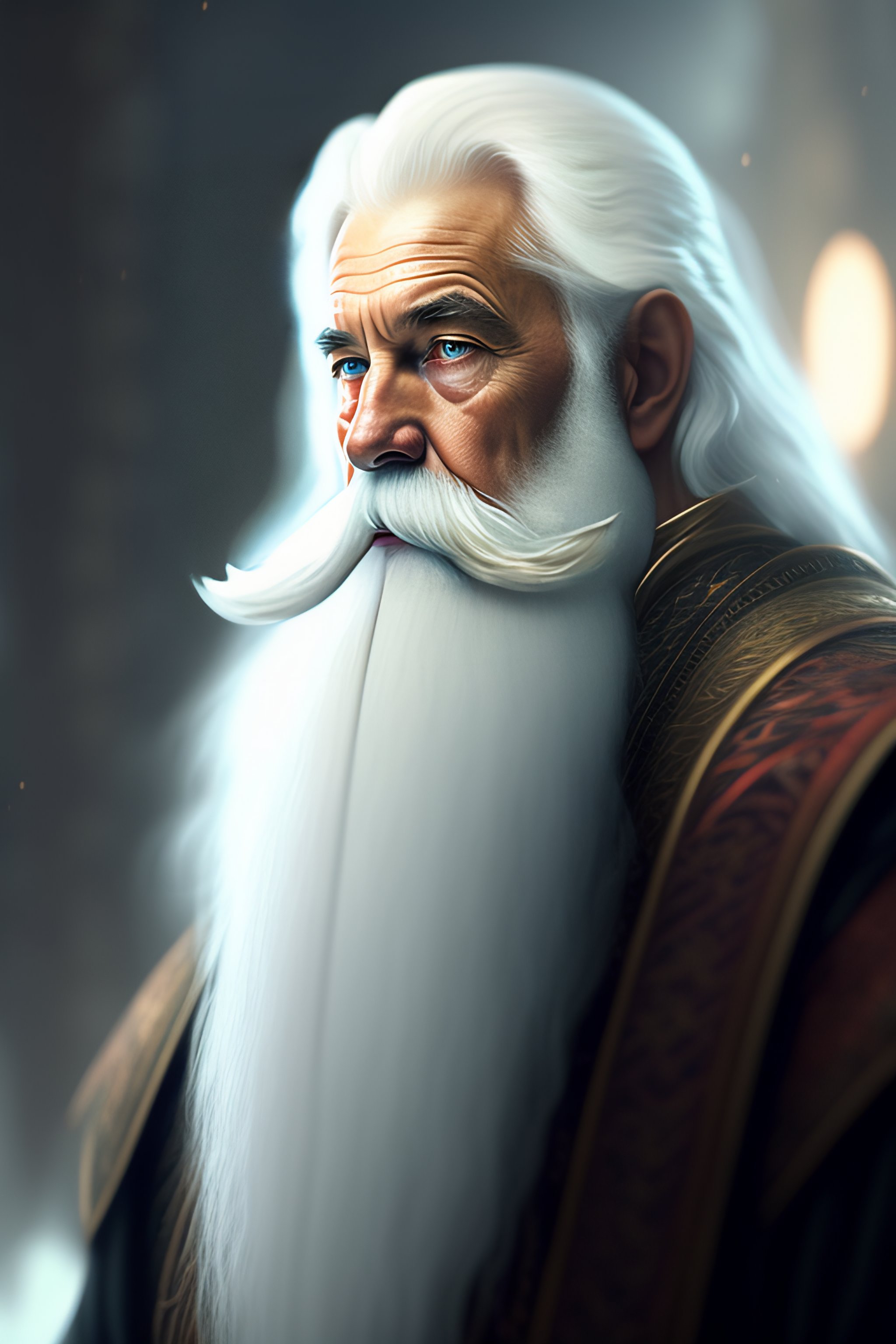 An old wizard with a long white beard and long white hair