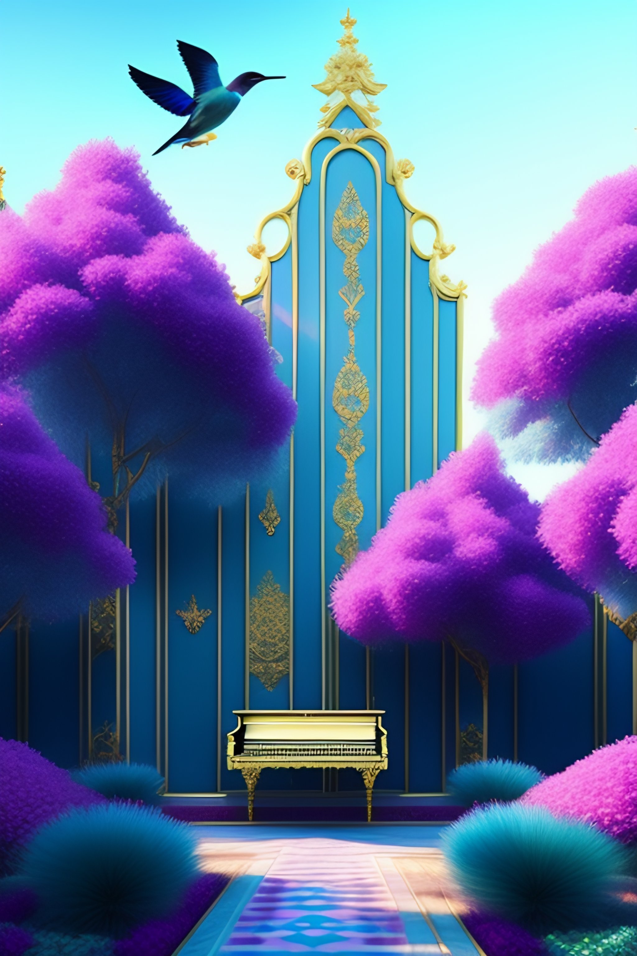 Baby blue buildings far above a crystal grove, a magenta plated terrace with a table and a stove, guarded golden railings just to frame the pretty stars, fix that old piano and the birds will fall apart