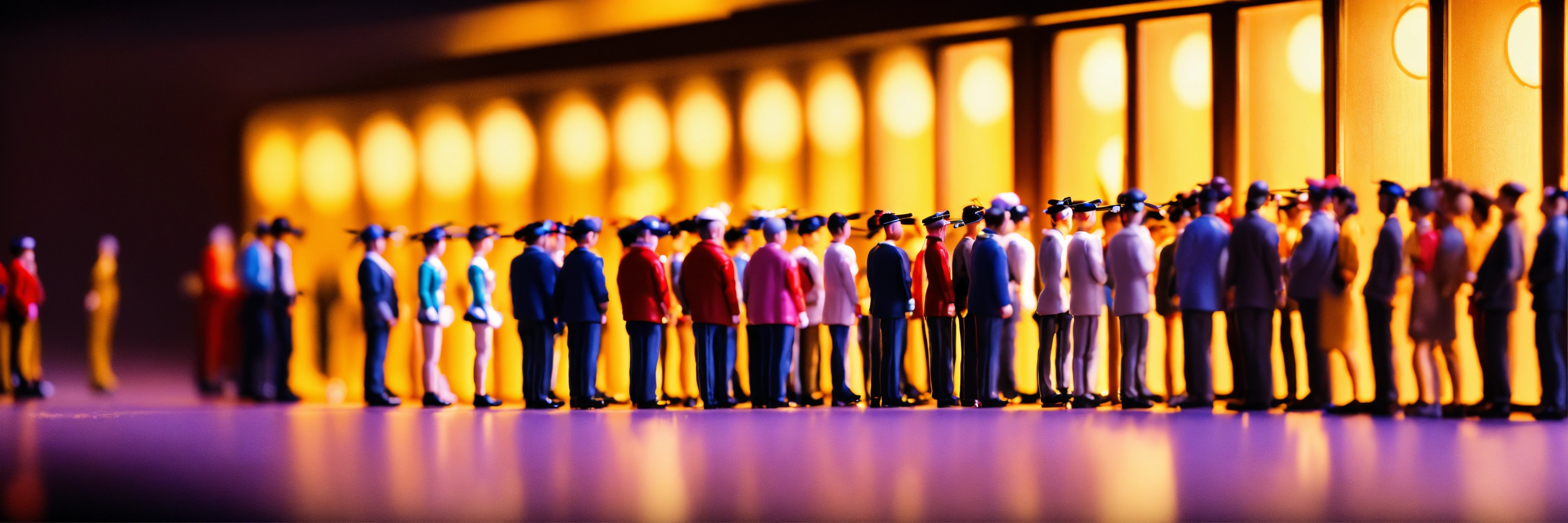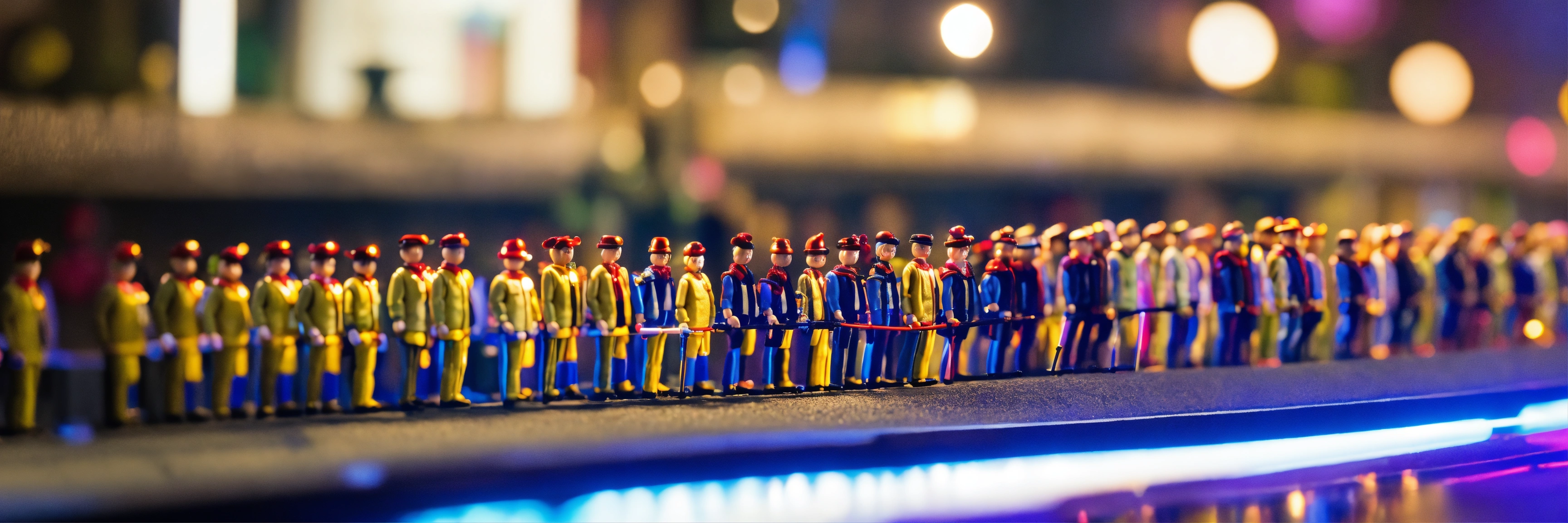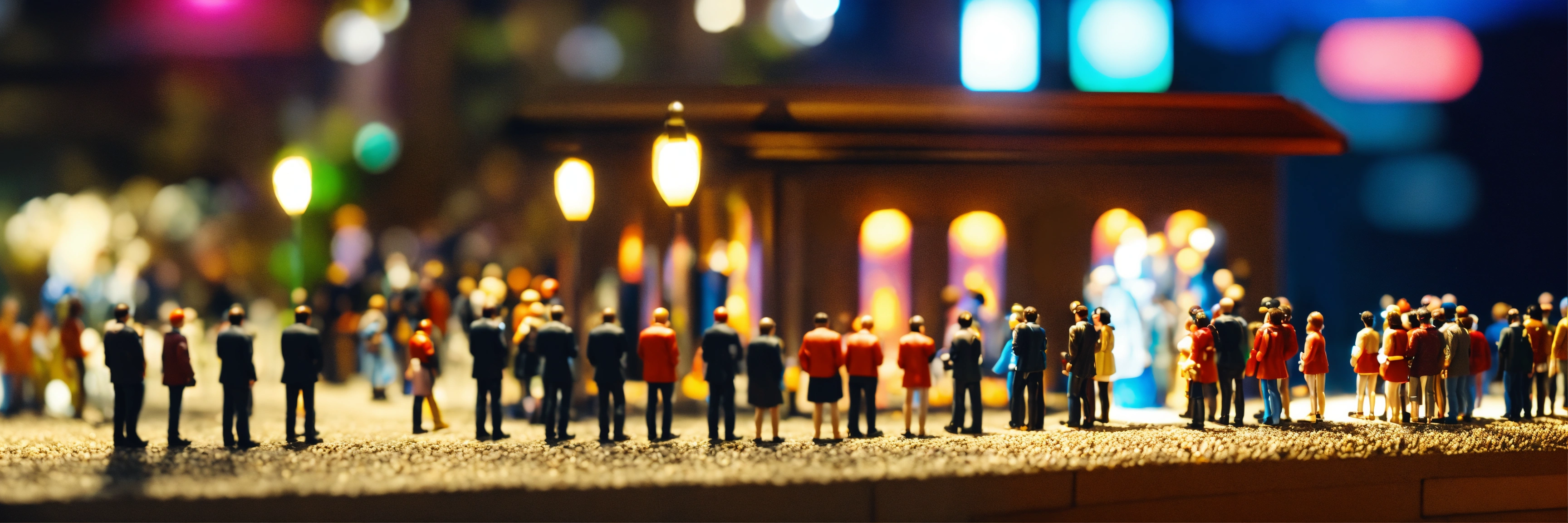 Tilt-shift photo of a long line of toy people waiting to get into an exclusive club, drone angle, miniature people, beautiful lighting, emphasis lighting, global lighting surreal, ultra - detailed, unreal engine 8k