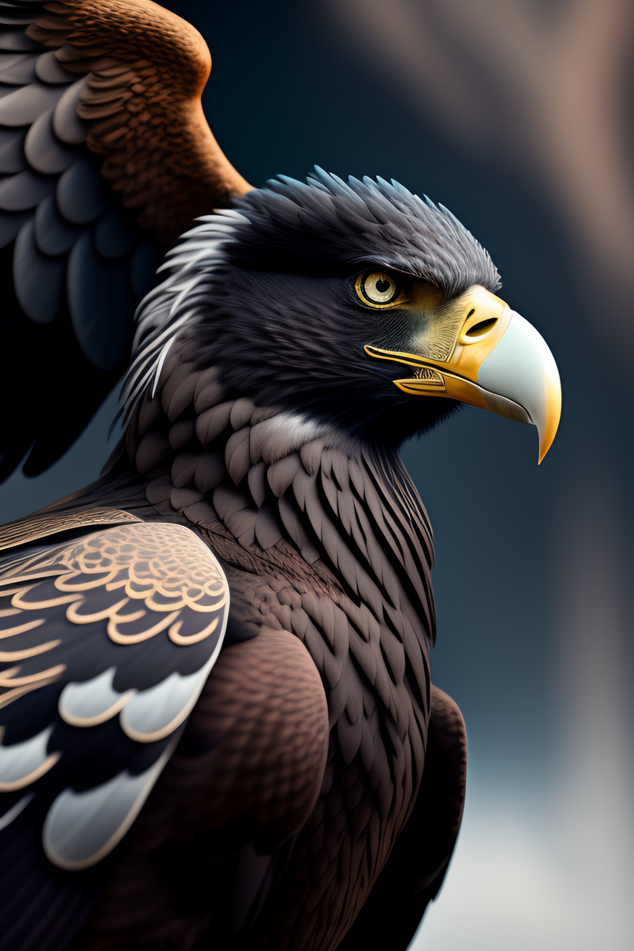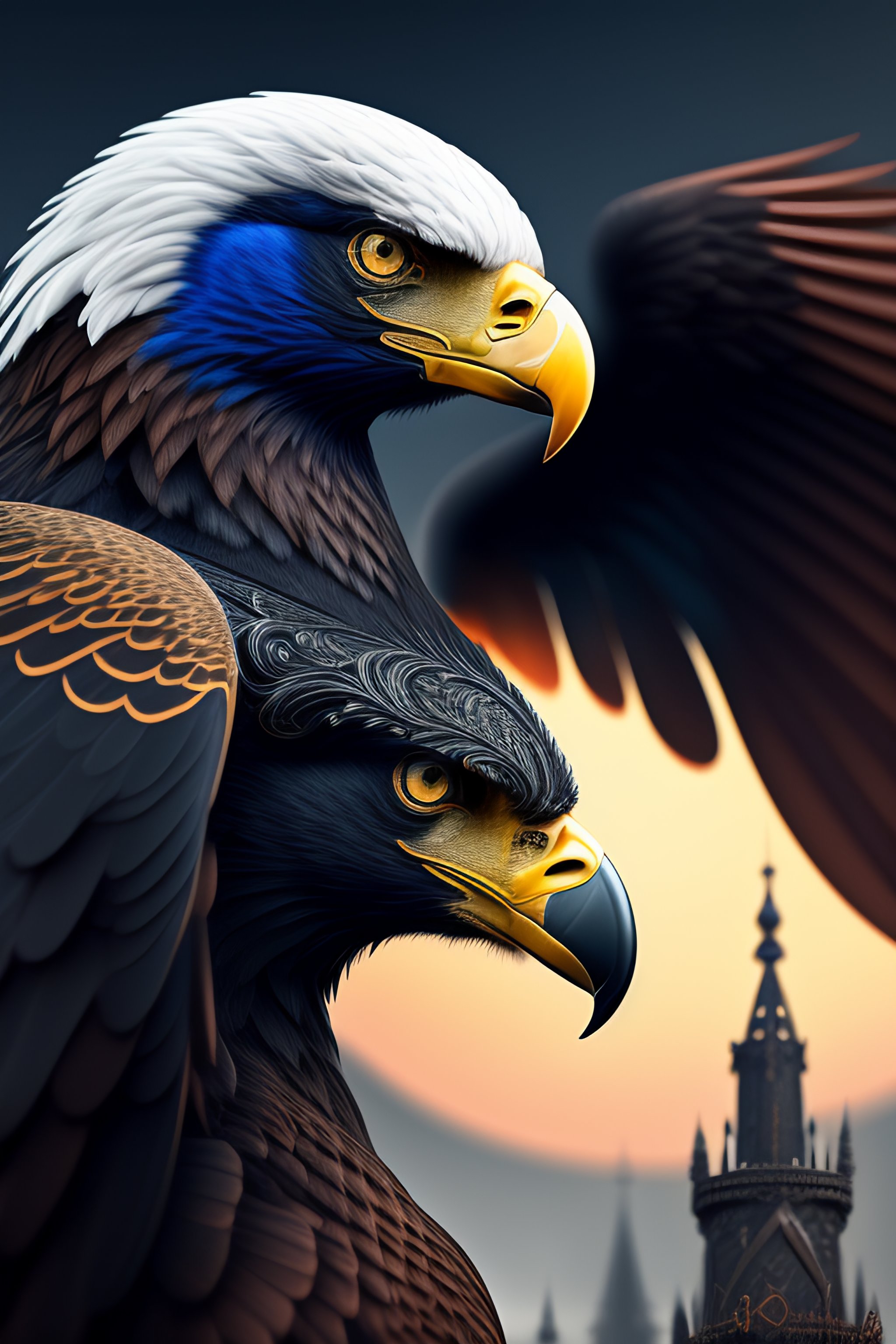 Eagle with black and white feather, hyperdetailed intricately detailed gothic art trending on artstation triadic colors unreal engine 5 detailed matte painting, deep color, fantastical, intricate detail, splash screen, complementary colors, fantasy concept art, 8k resolution, gothic deviantart masterpiece