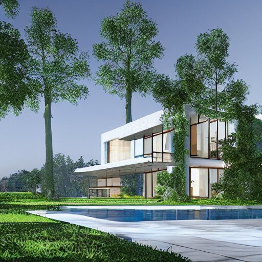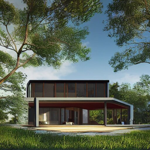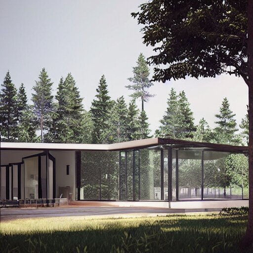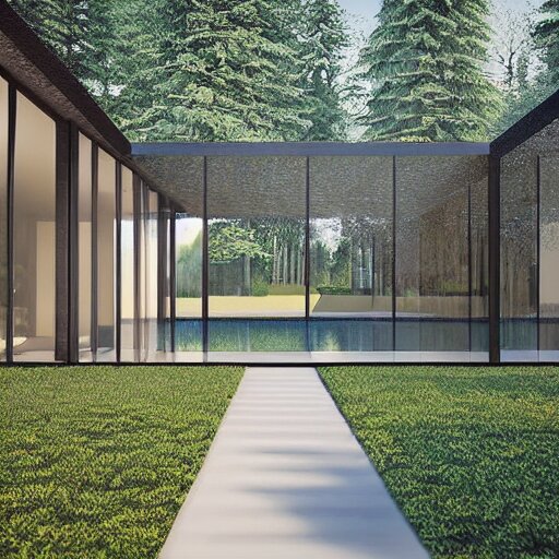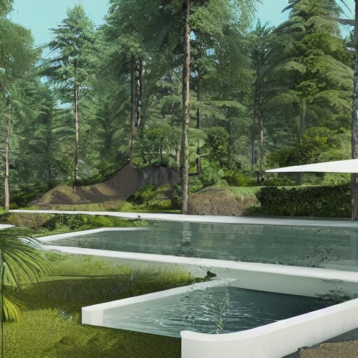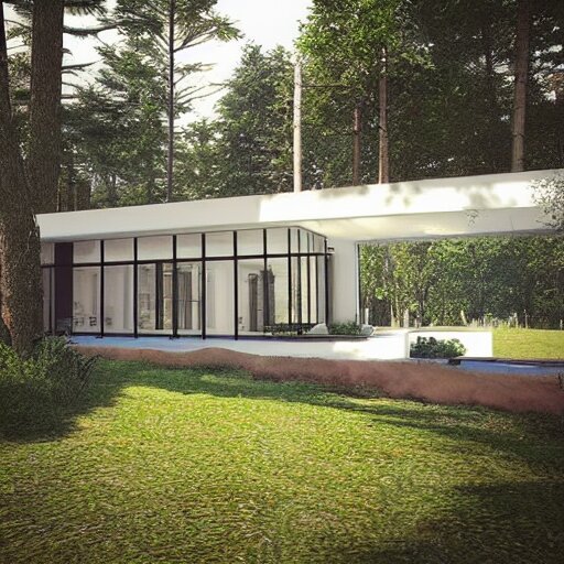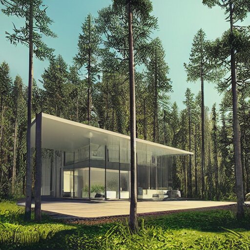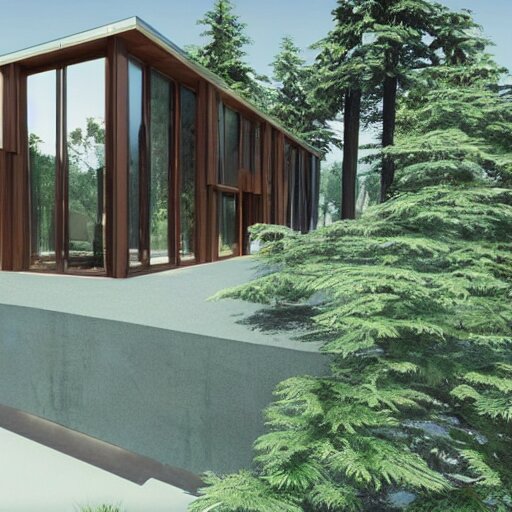 “ large openings frame views of the villa's positioning amidst a fir - tree woodland, unreal engine 5 render ”