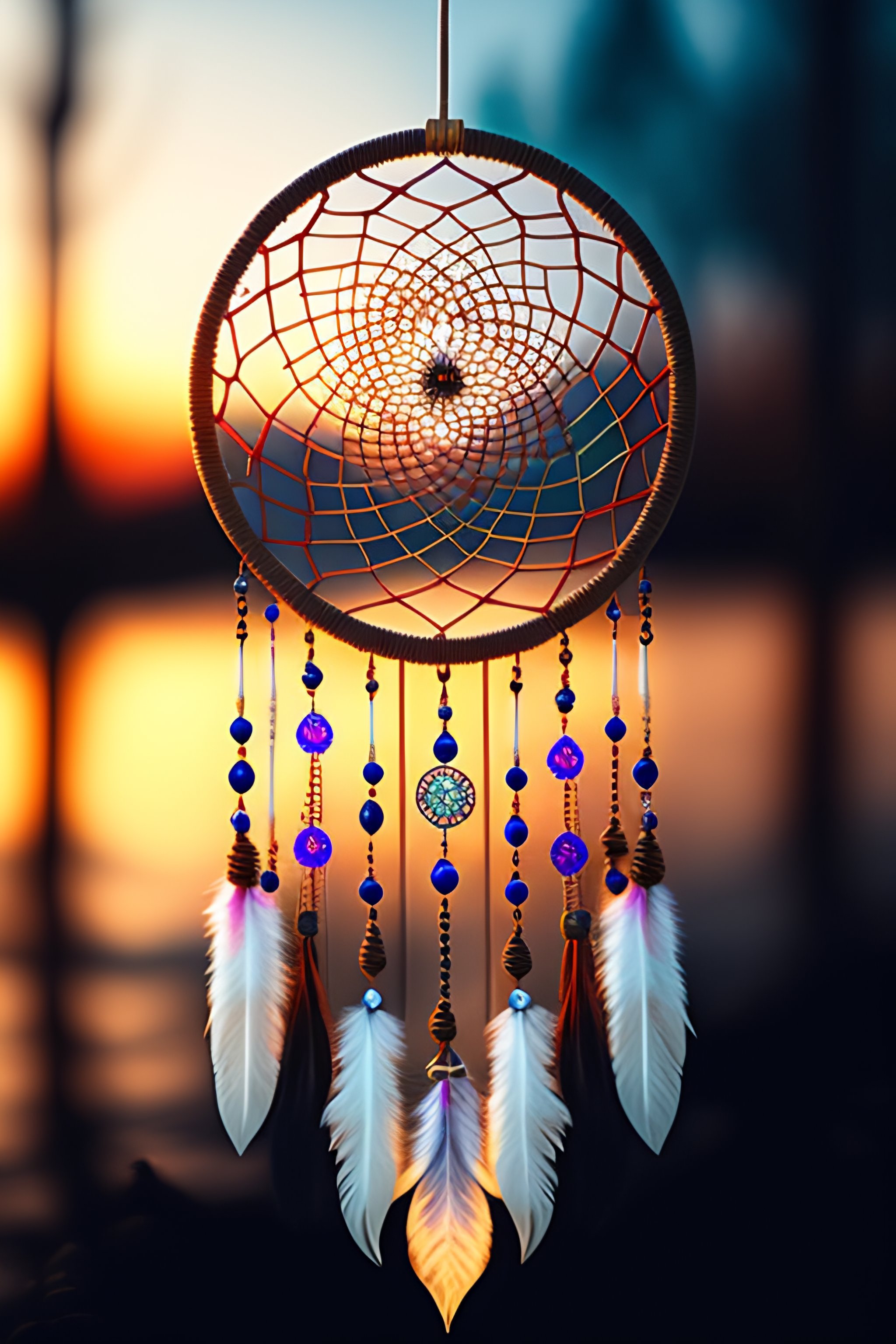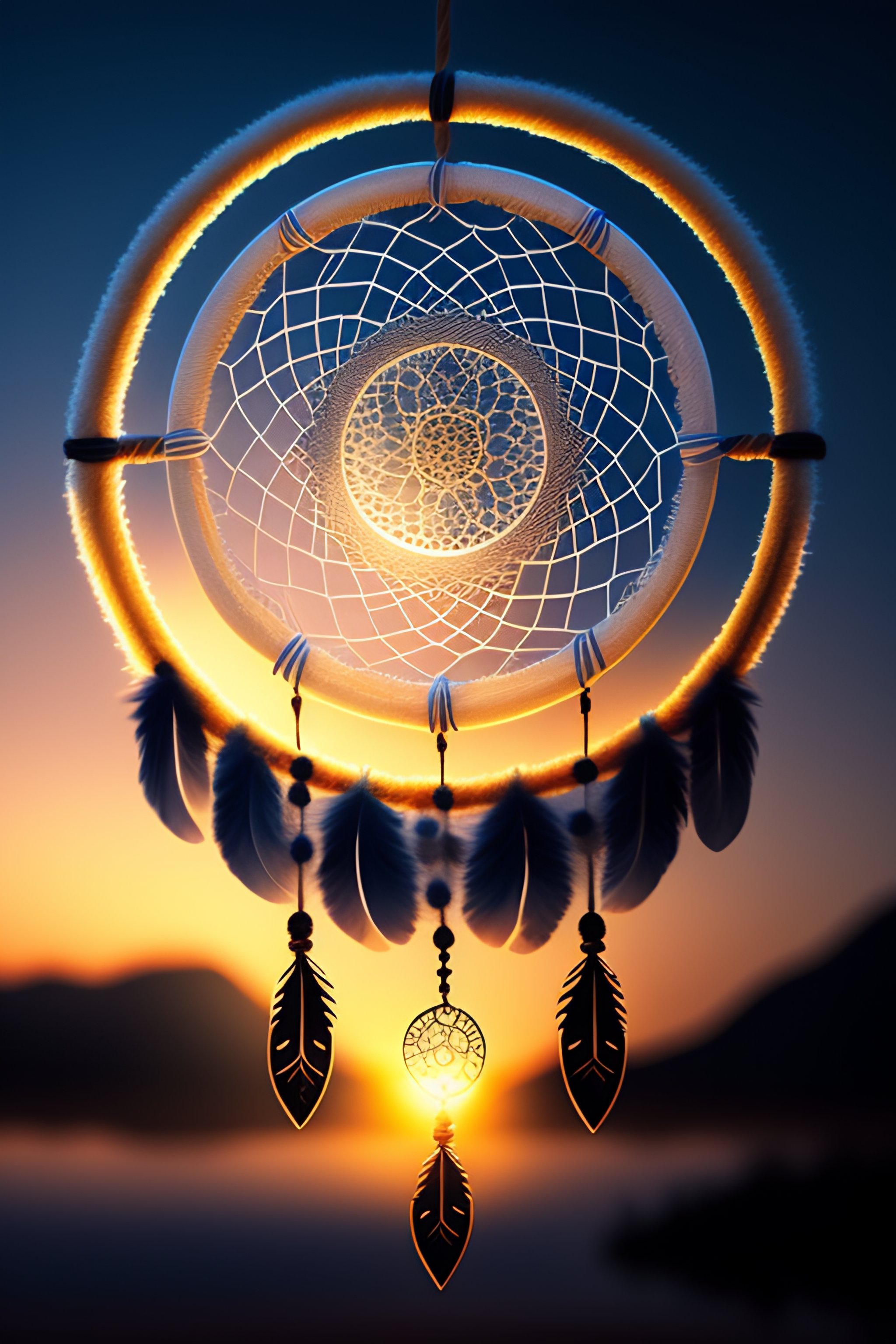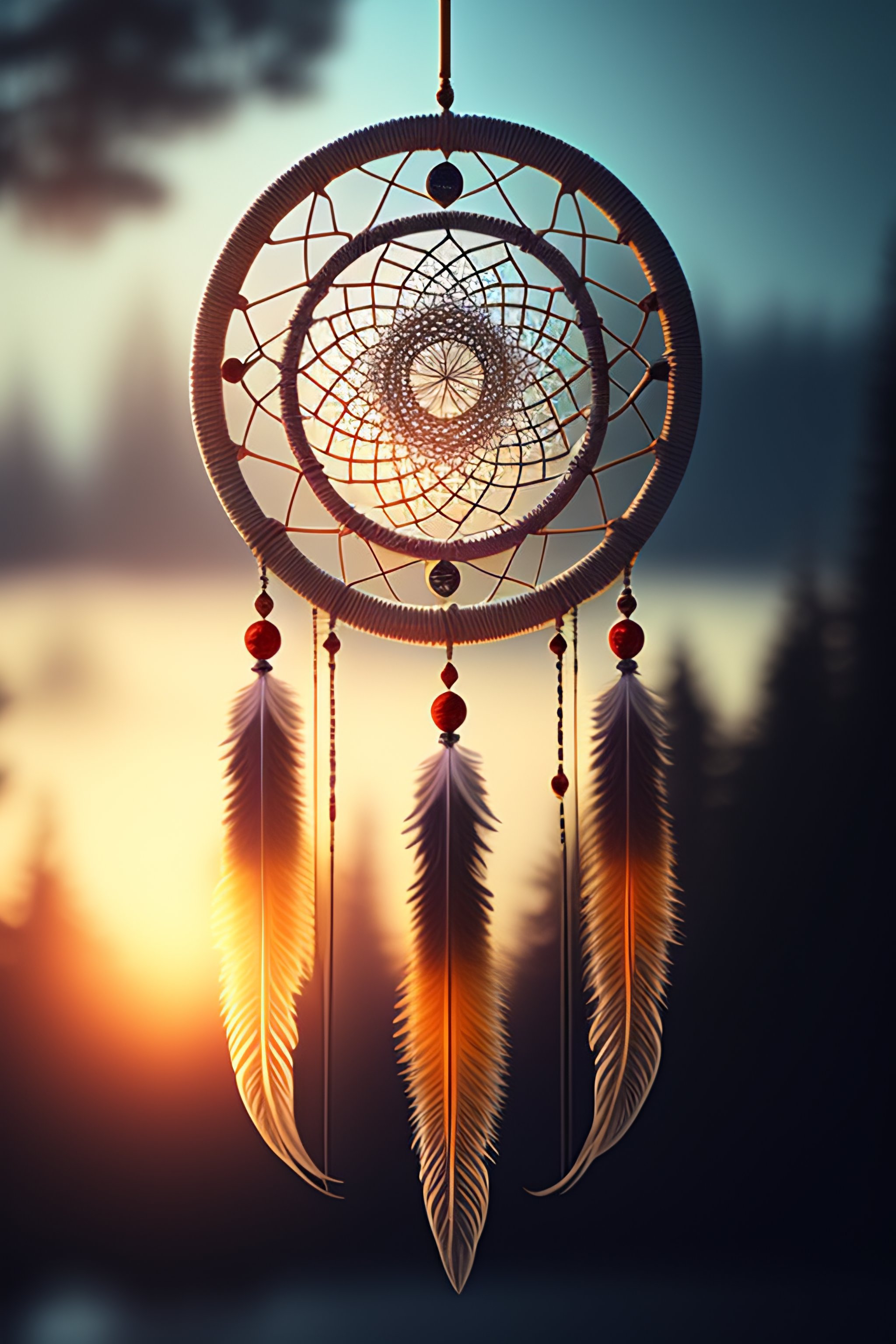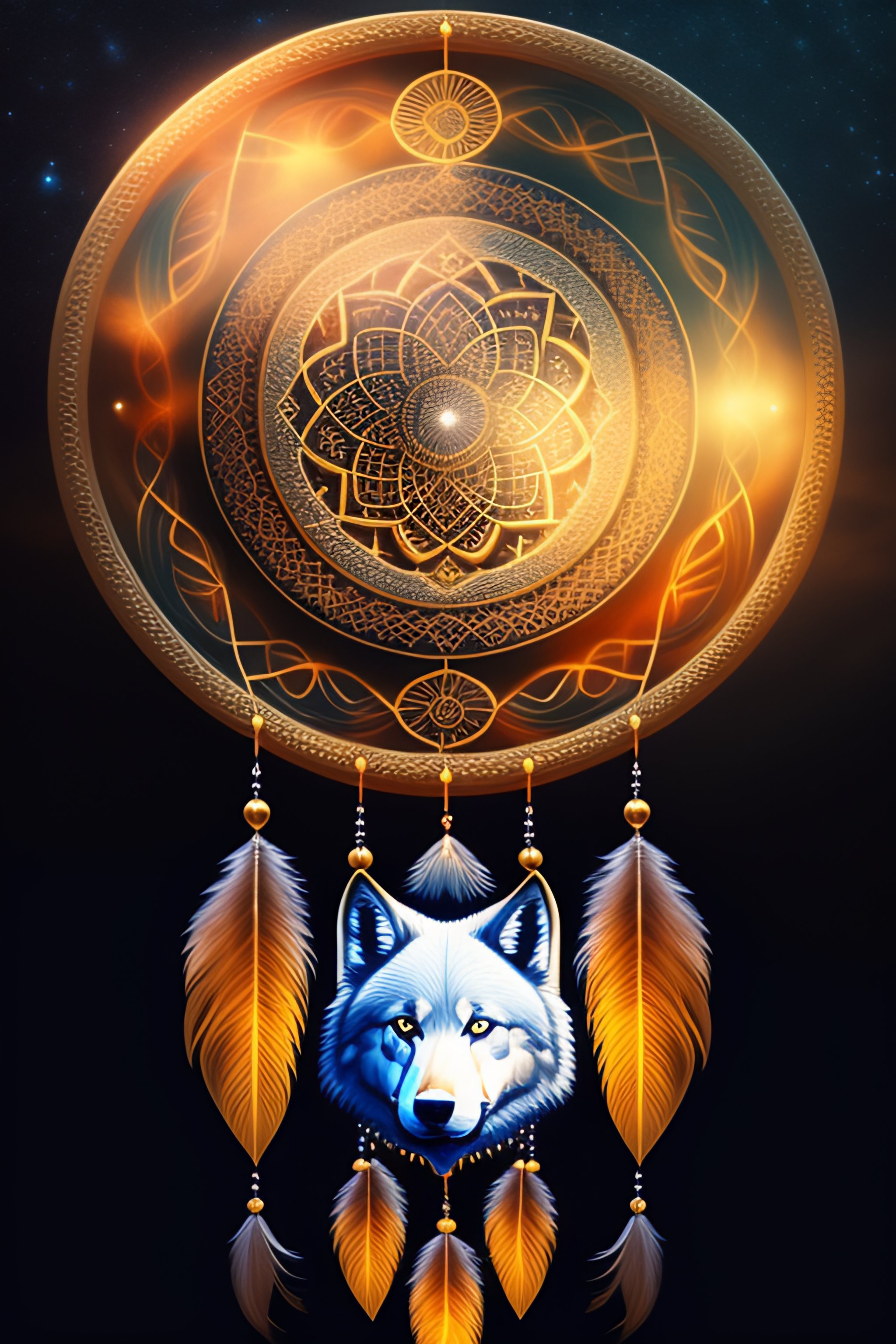 A dream catcher with the strings forming a wolf