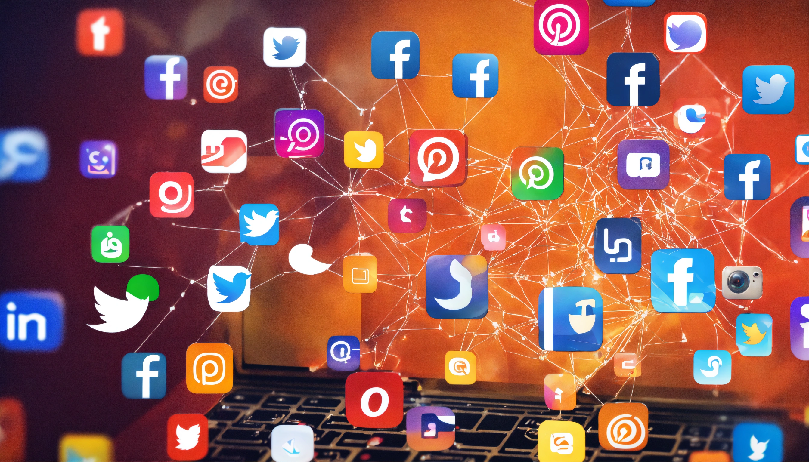 The most popular social media icons coming out of a computer screen