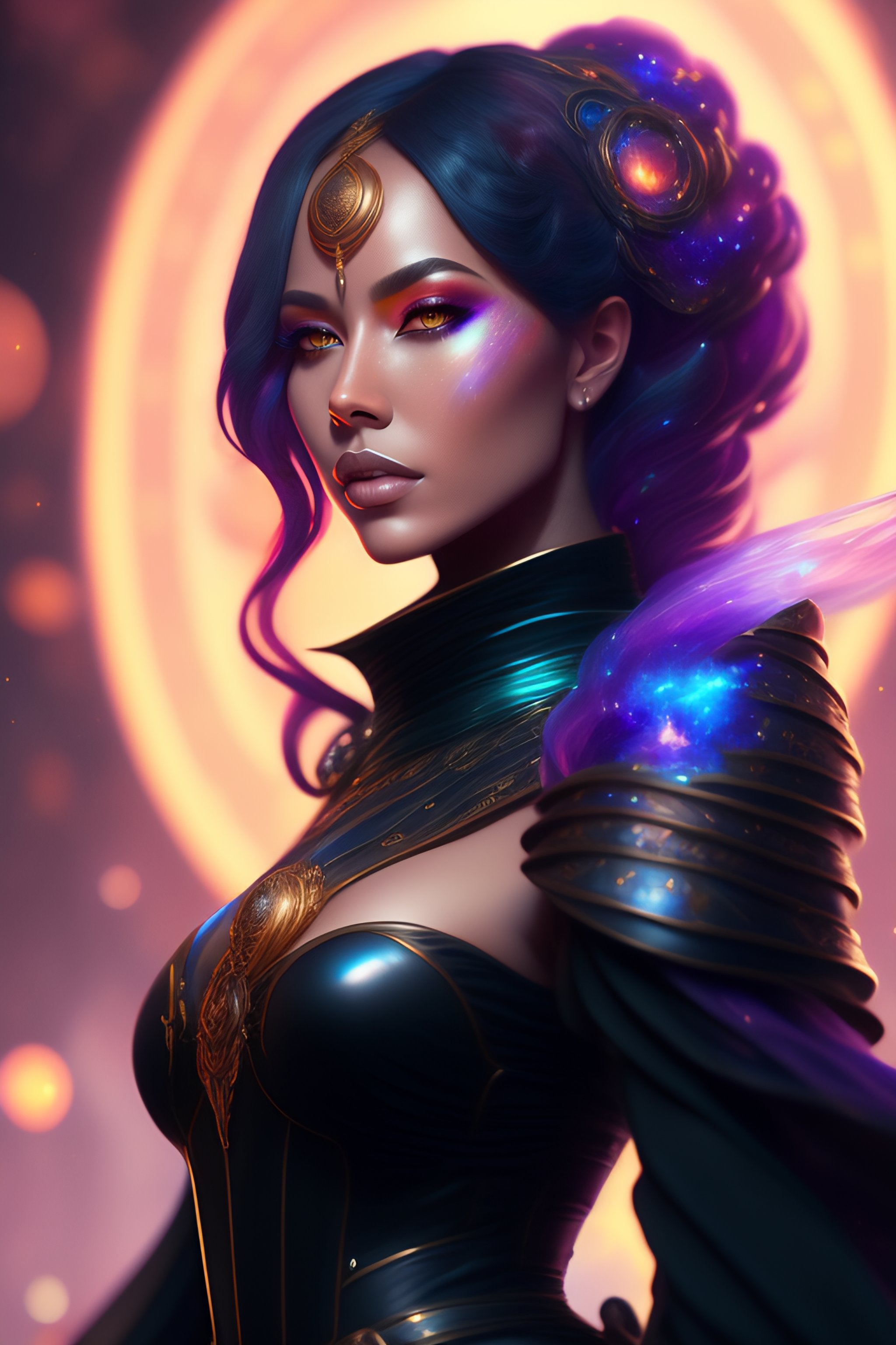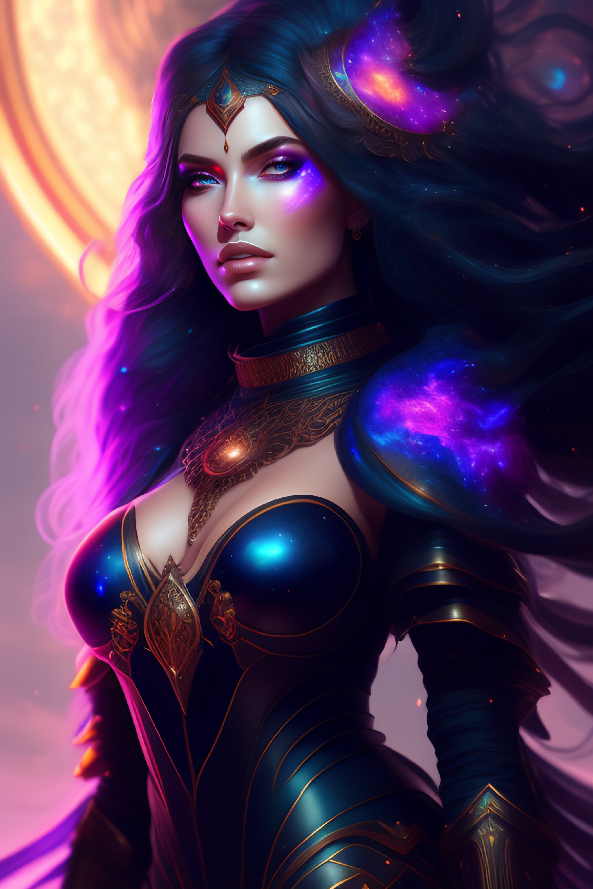 Cosmic sorceress, sexy, full body, nebulas, perfect face, galactic, concept art portrait by greg rutkowski, artgerm, hyperdetailed intricately detailed gothic art trending on artstation triadic colors unreal engine 5 detailed matte painting, deep color, fantastical, intricate detail, splash screen, complementary colors, fantasy concept art, 8k resolution, gothic deviantart masterpiece