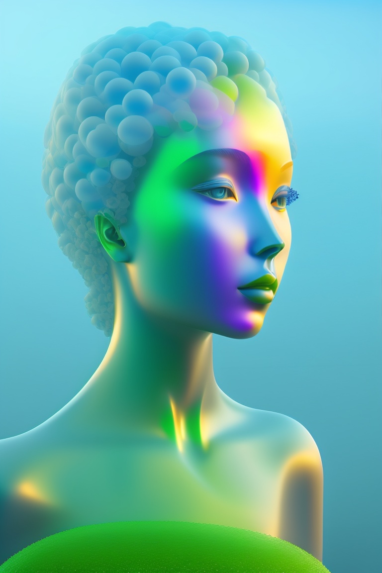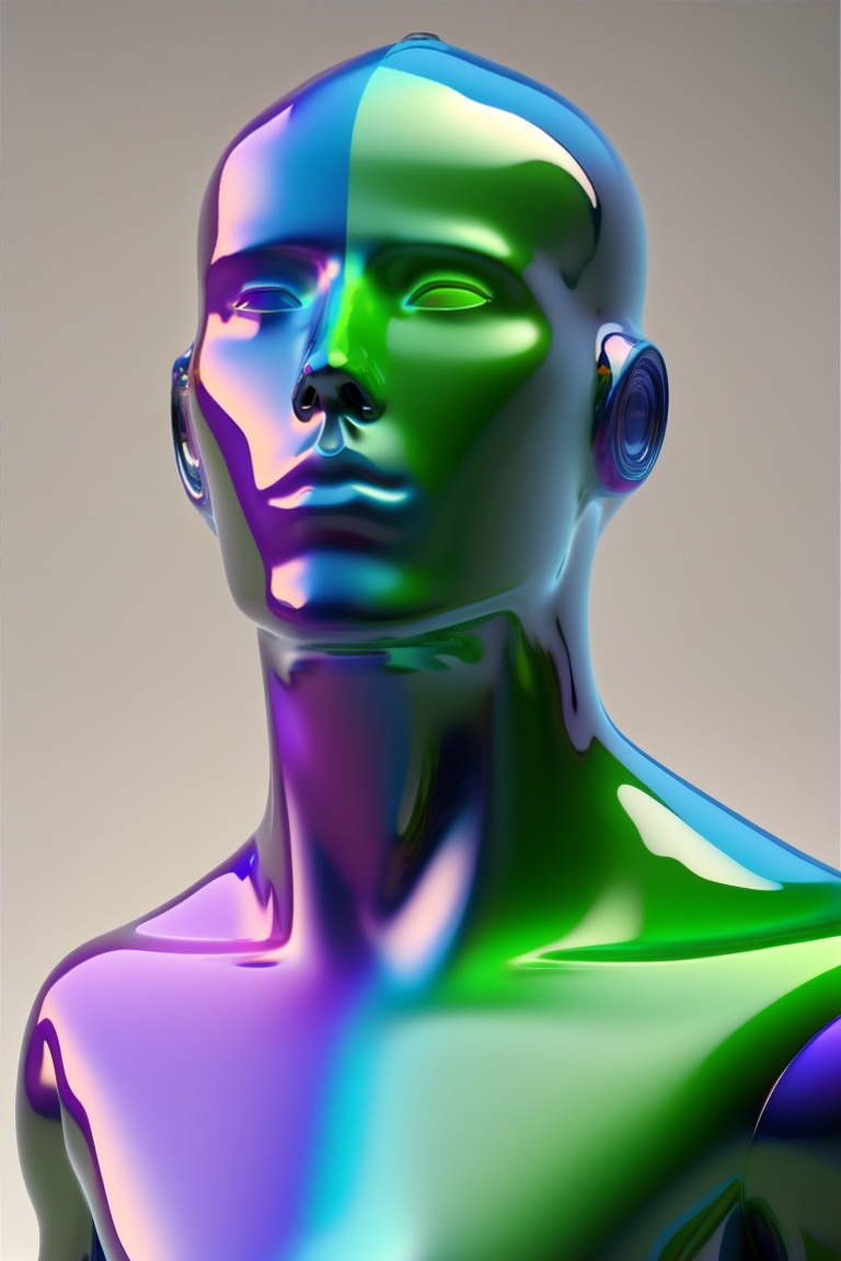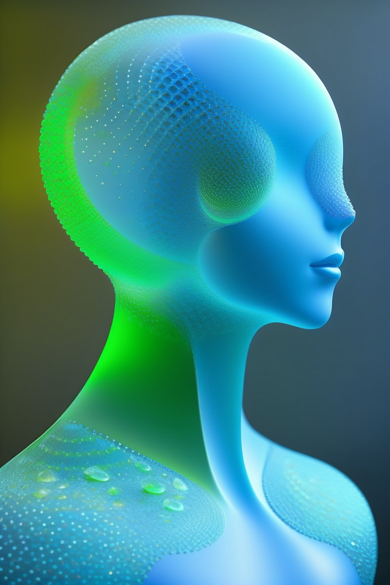 Create an abtract jelly human form without eyes nose and mouth with closure head with abstract inconstant shape with gelatin texture and pleasent smell as blue and fresh smell as green and with gillas and pores in the center of the absttract jelly body with holes and the shape of avatar will be in asymetrically equilibrium