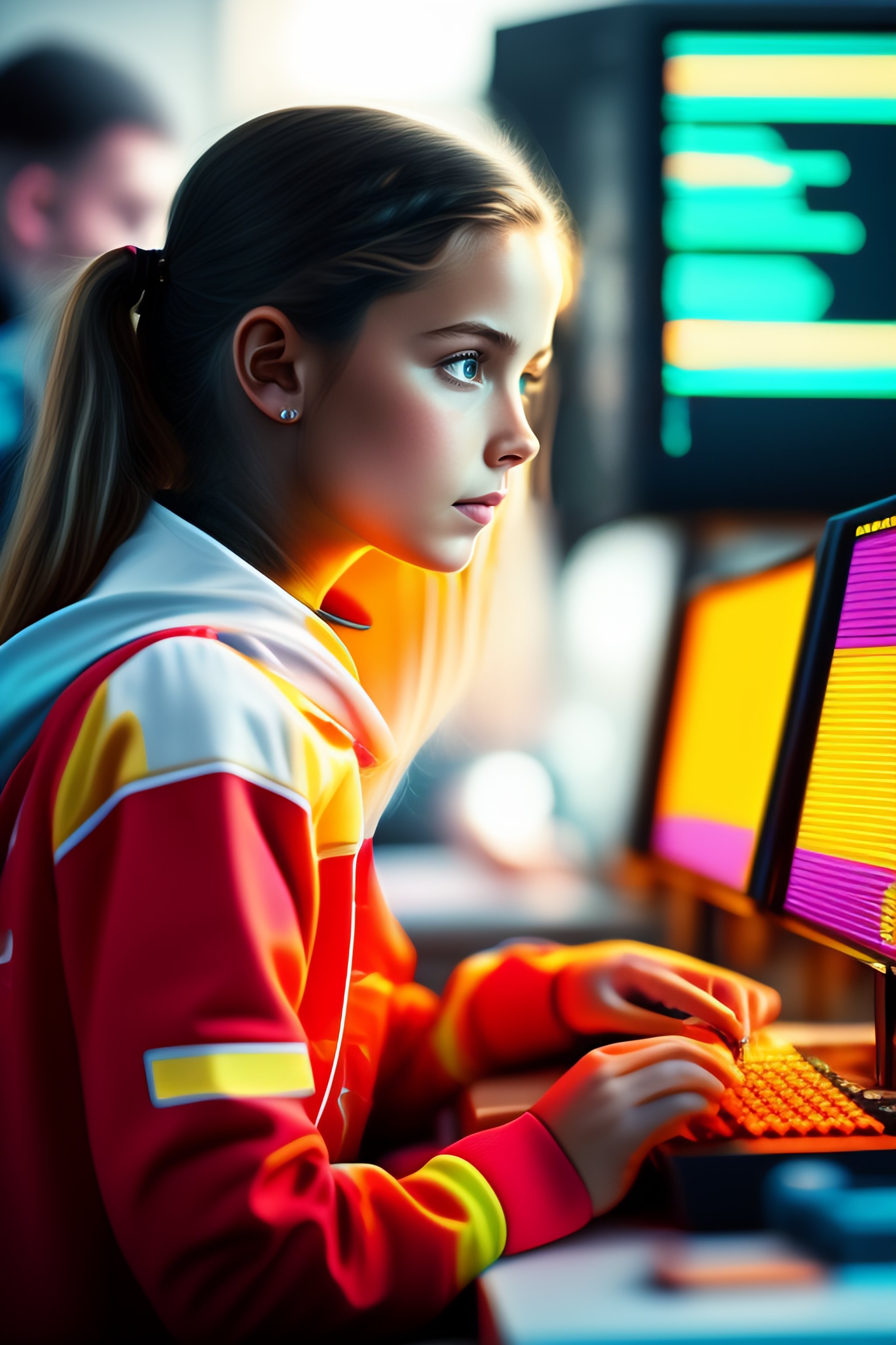 A protrait og a girl coding