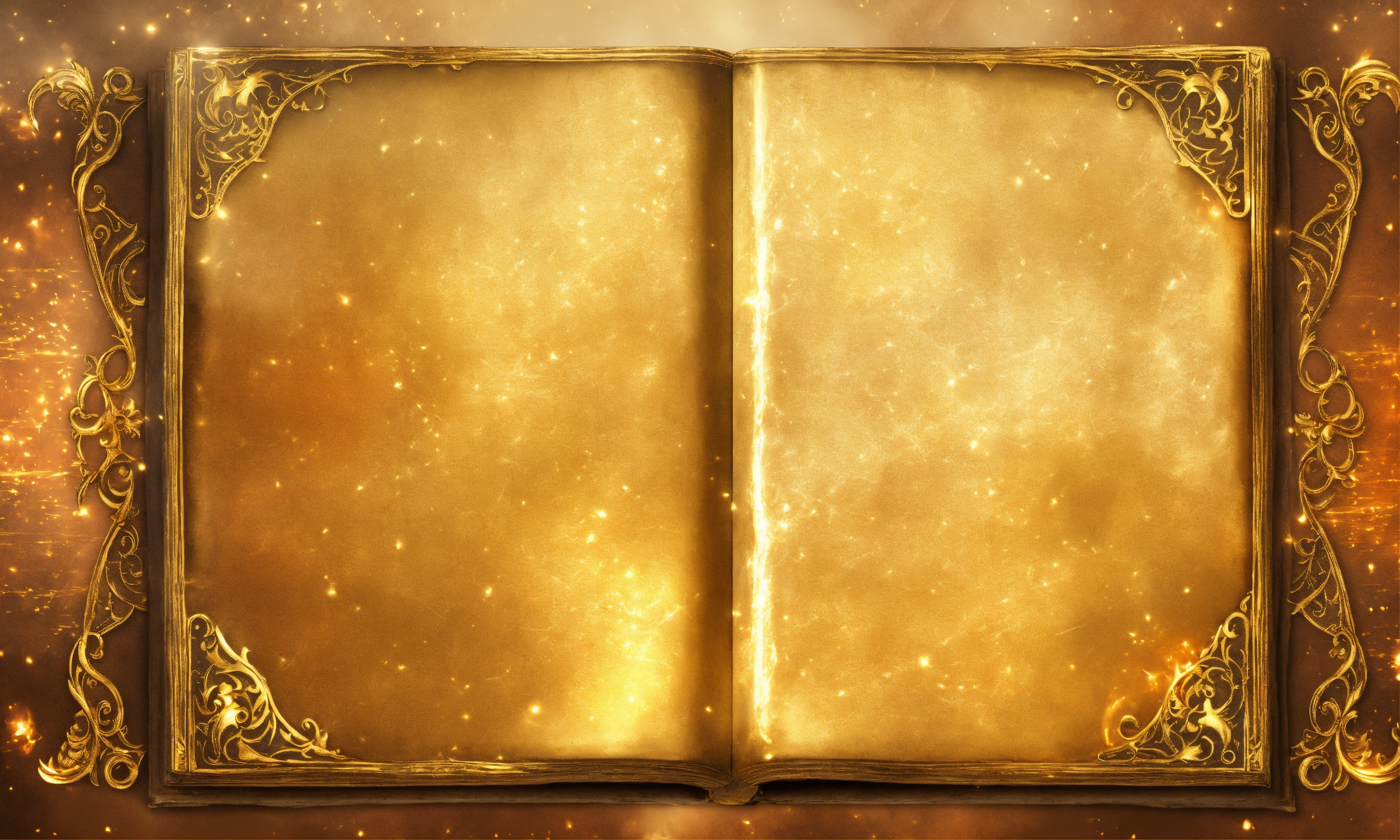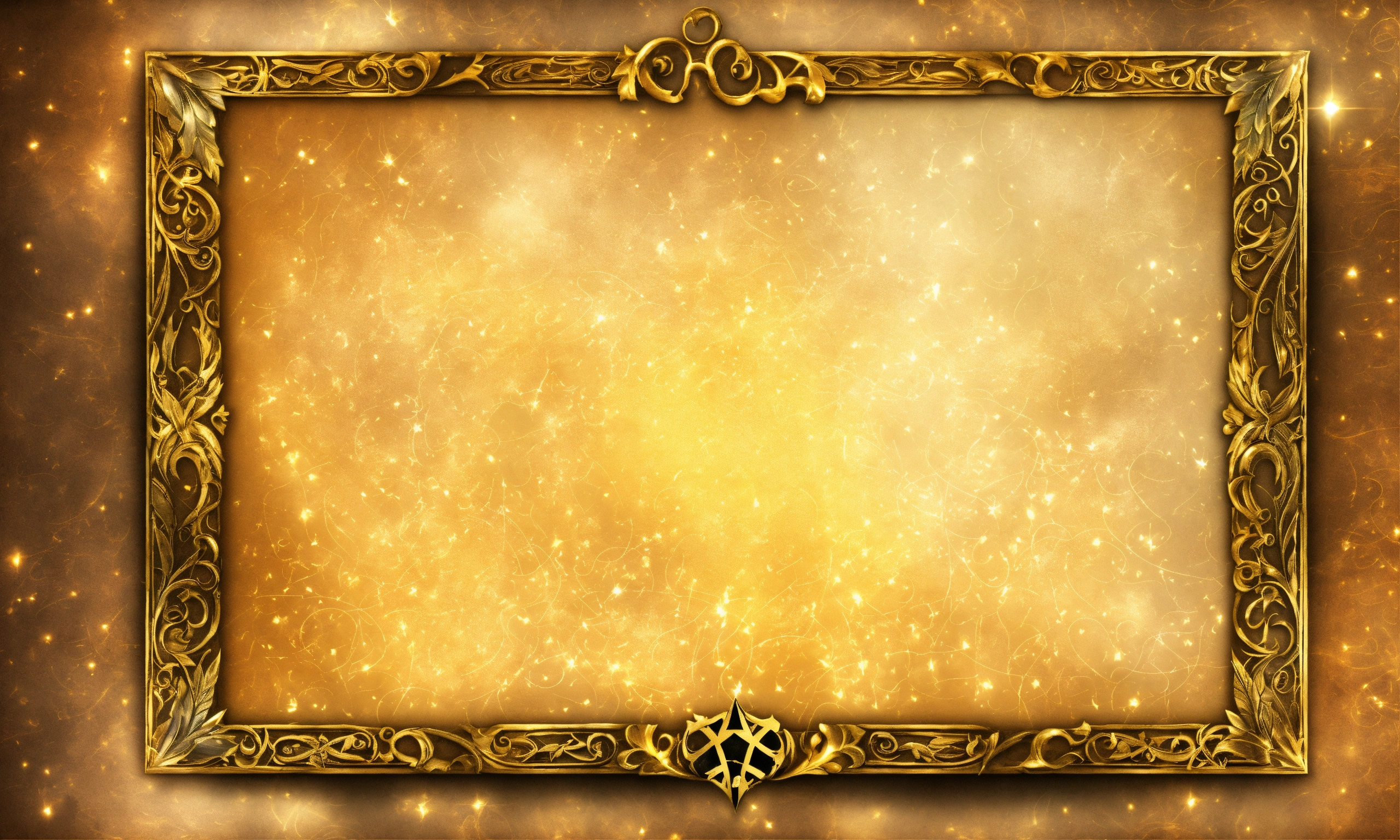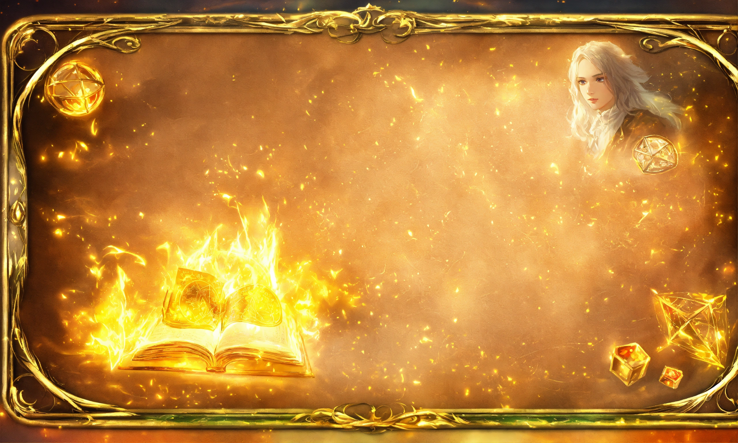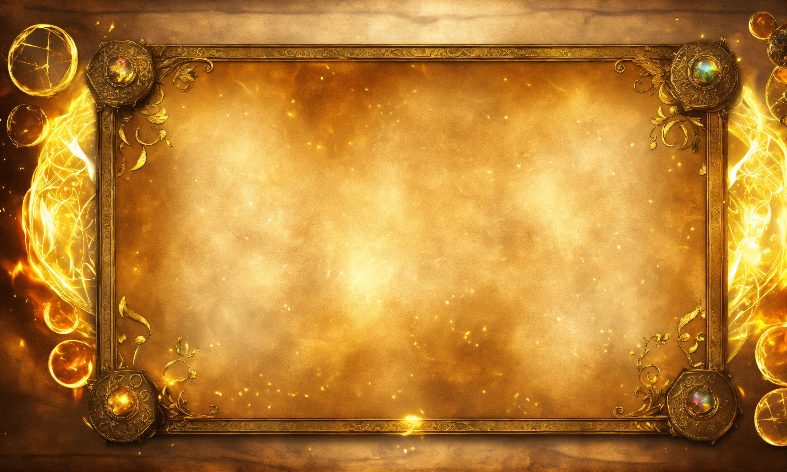Magic spell frame, template, old parchment background, magic book, fantasy, gold, dungeons and dragons, elements, magic effects