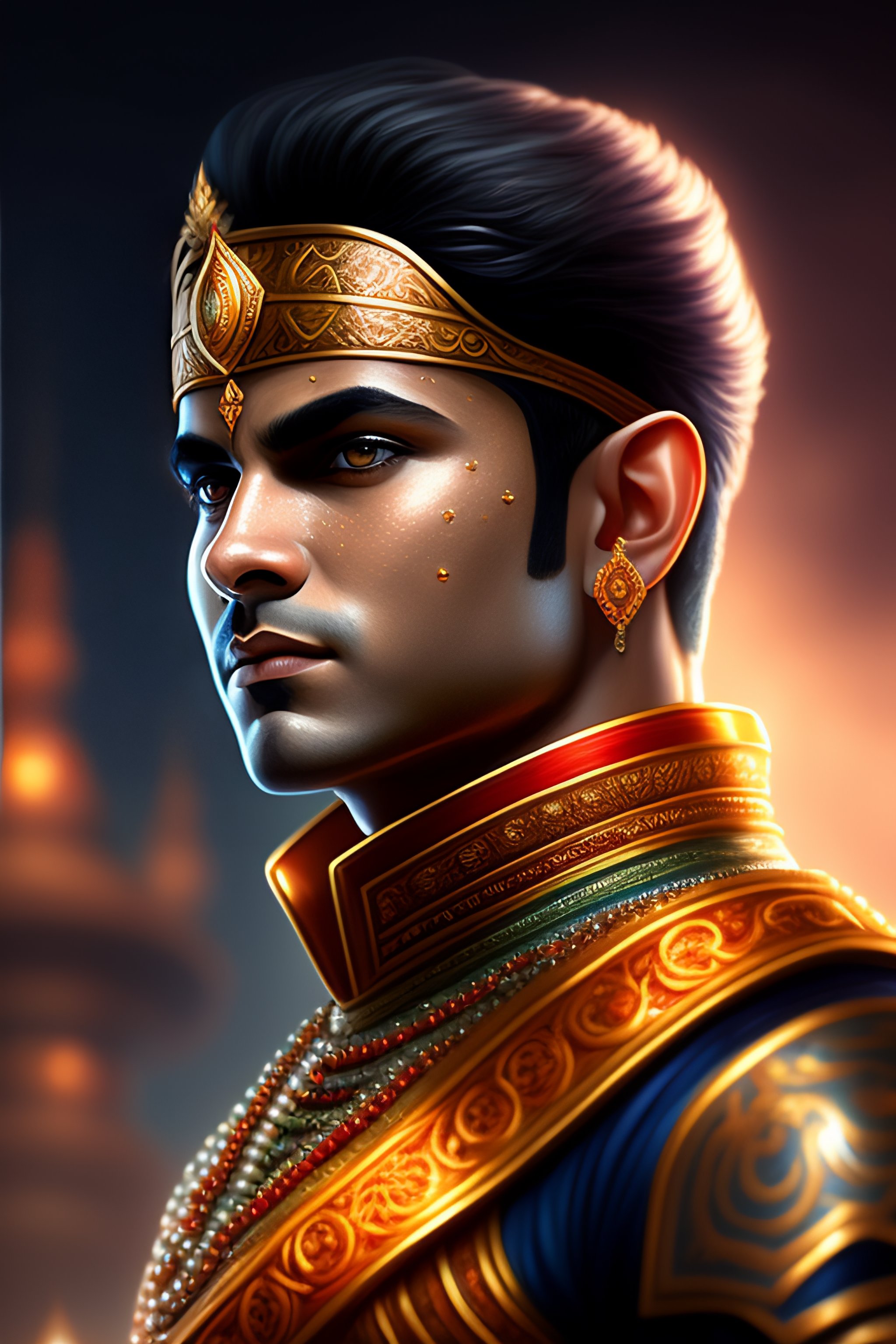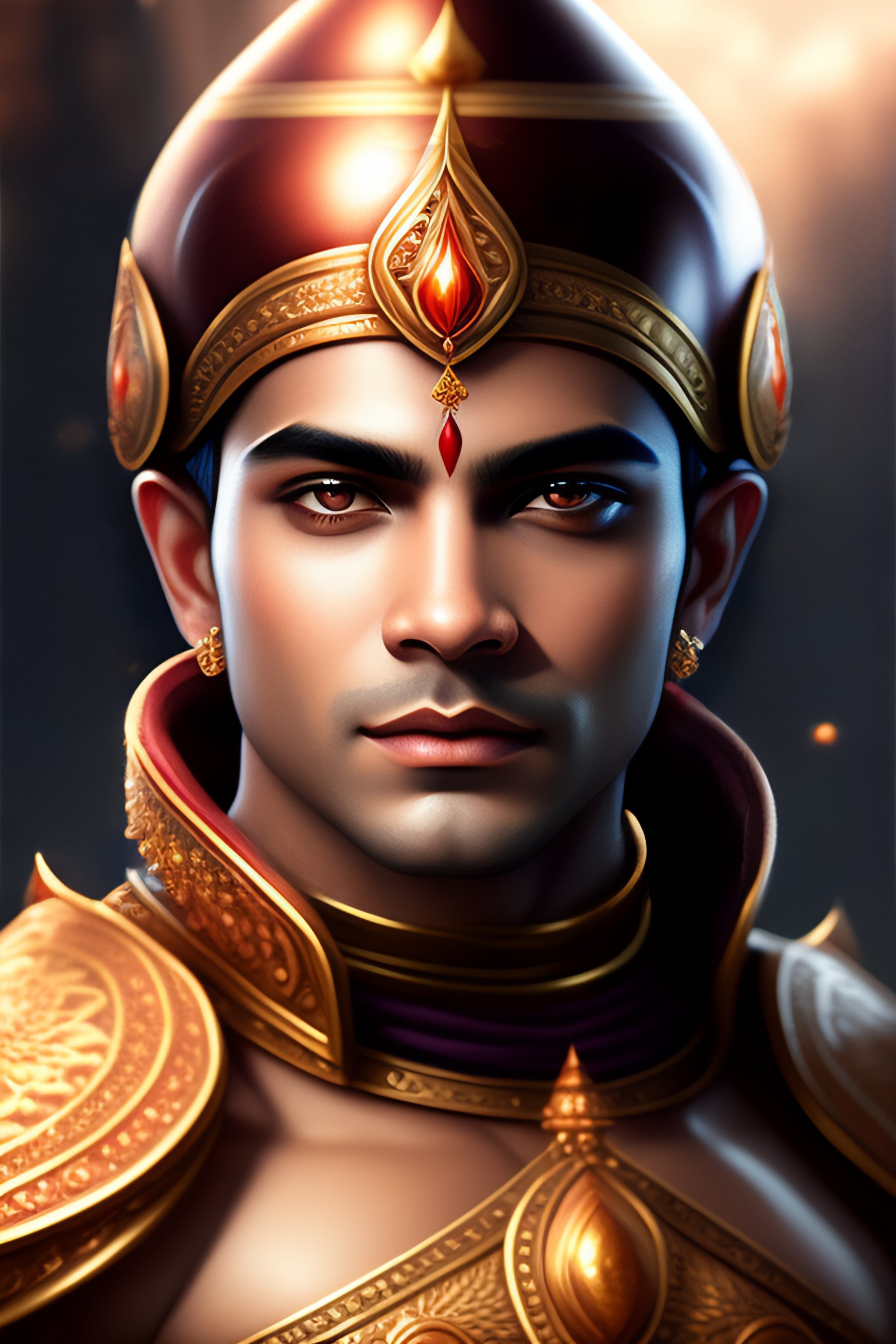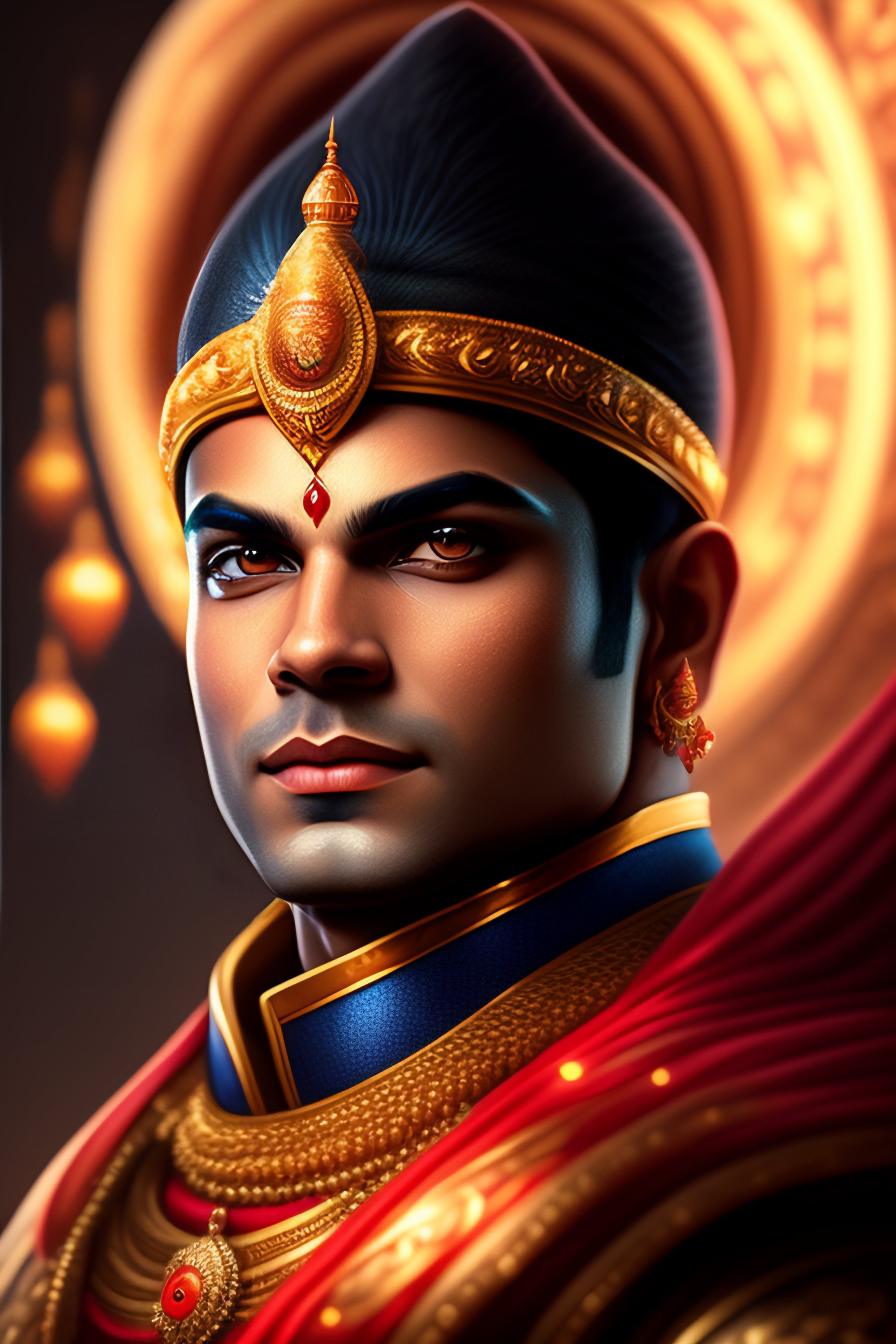 Portrait of a lord vamana, fantasy, front light, intricate, muscular, highly detailed, digital painting, smooth, sharp focus, illustration, 8 k, spaceship bridge on background