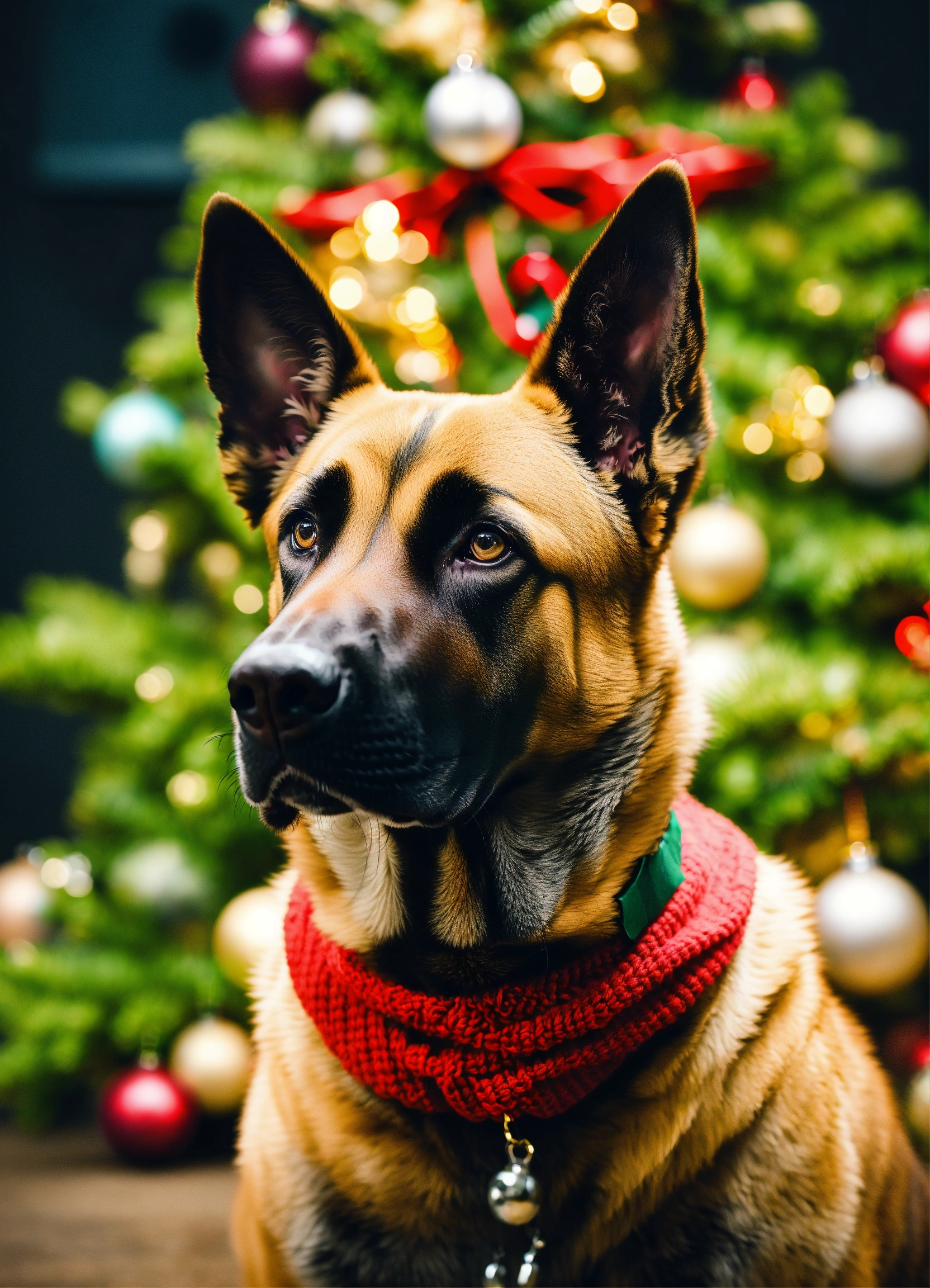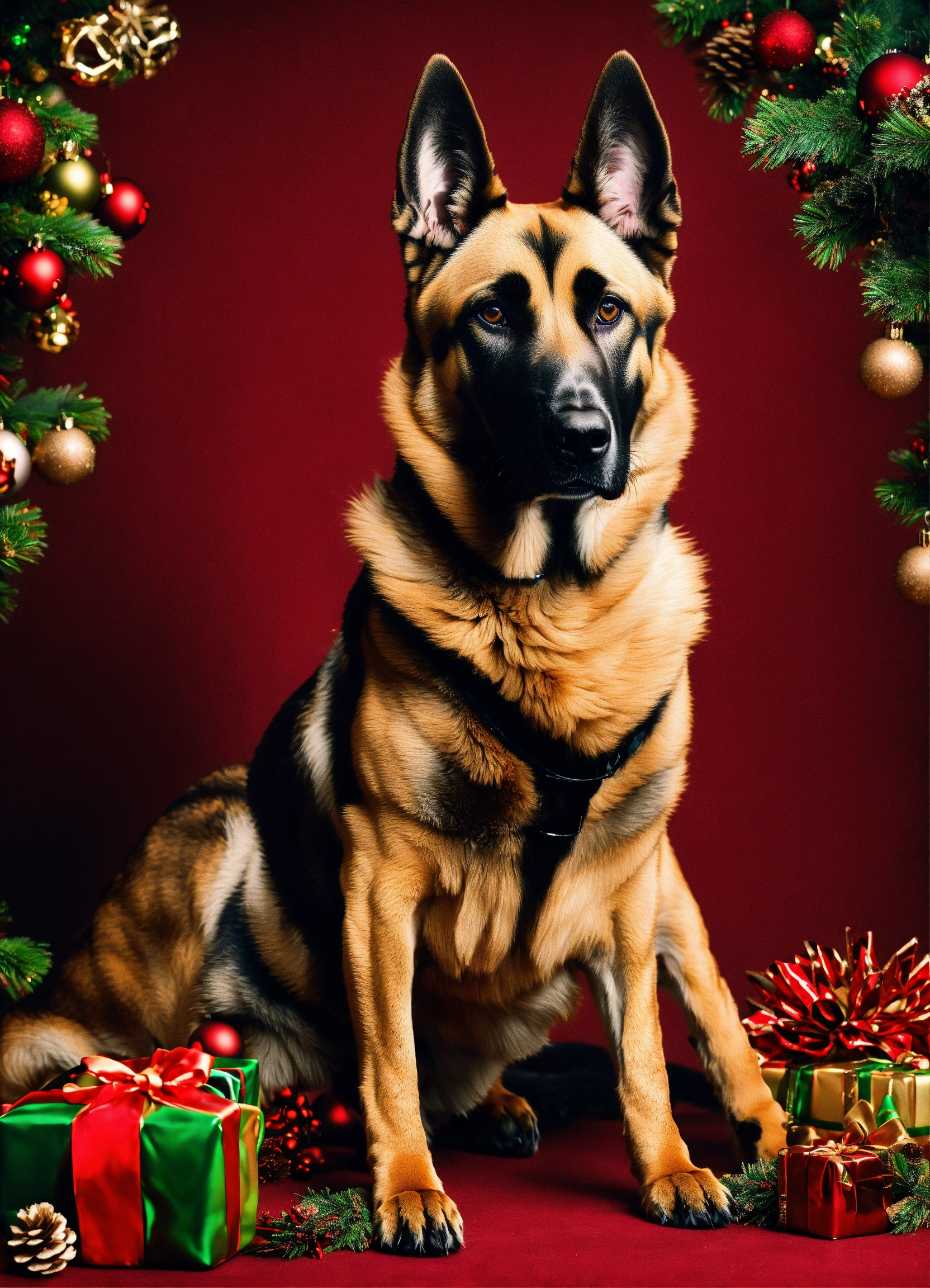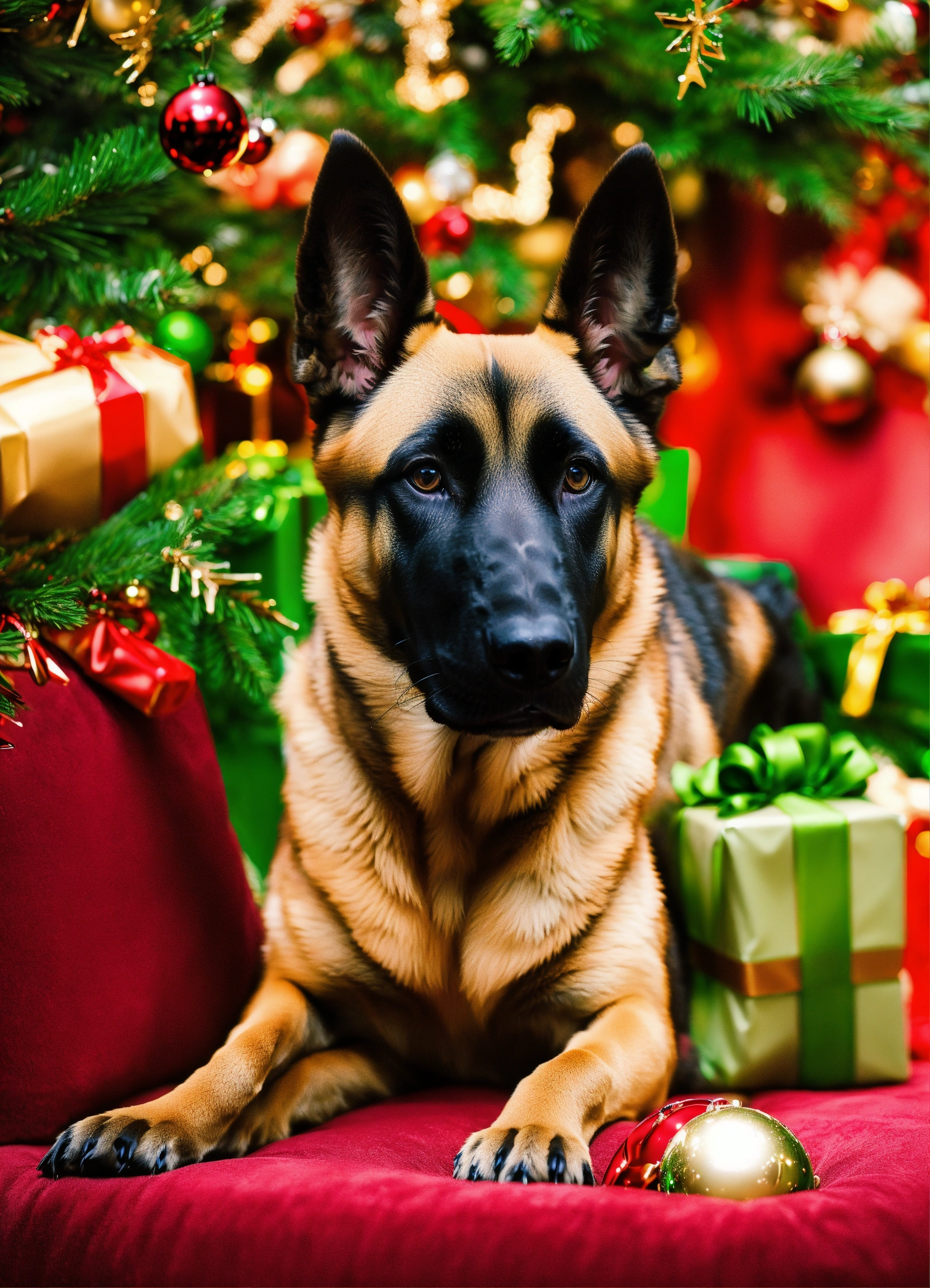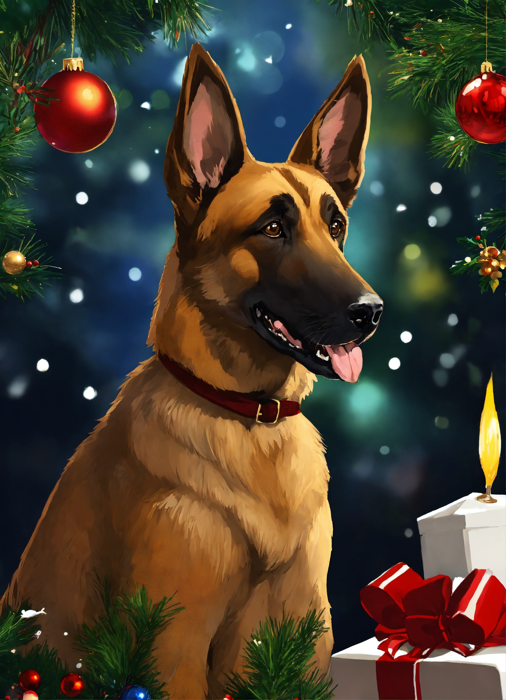 I would like a drawing of a malinois on the theme christmas