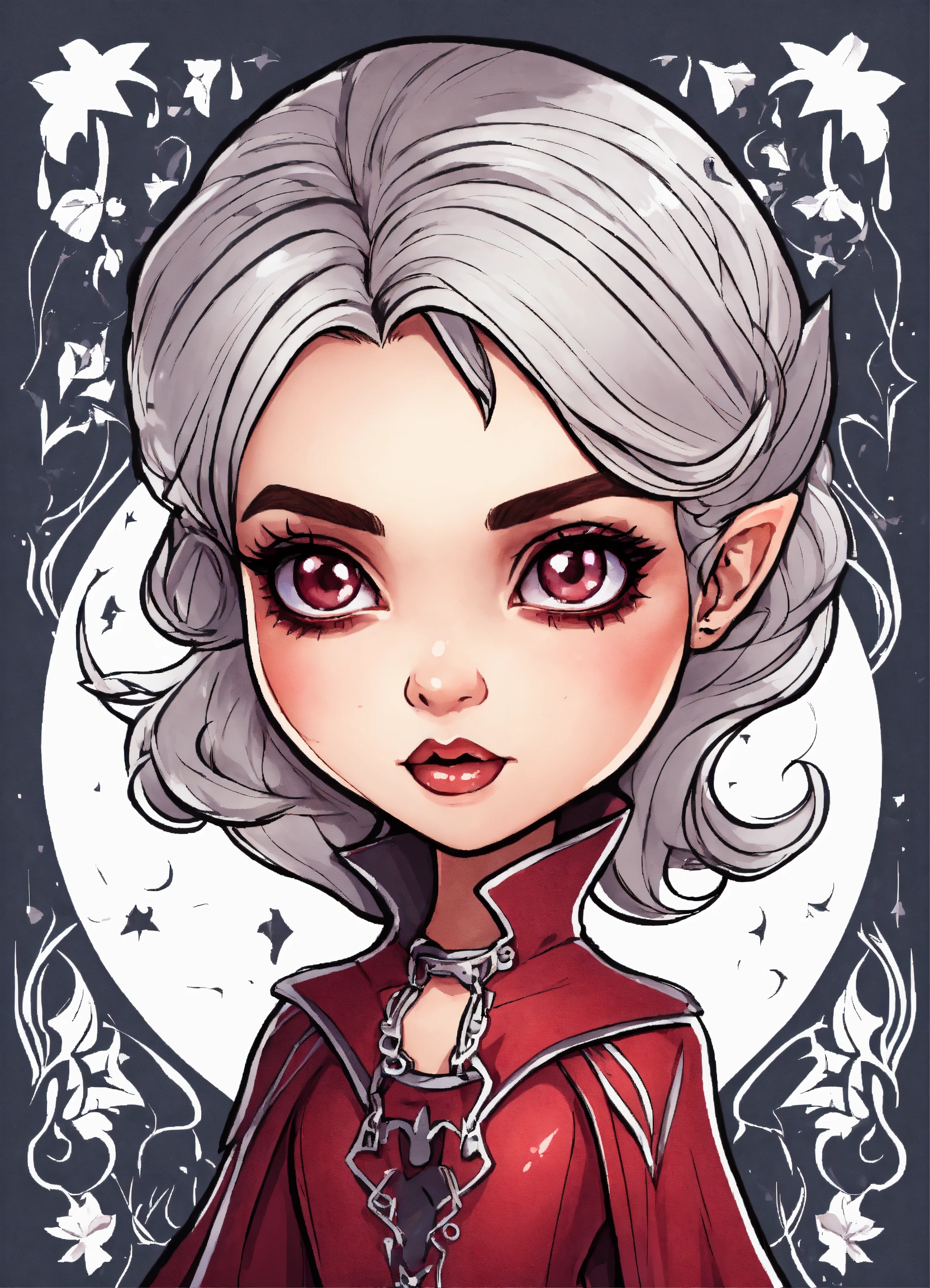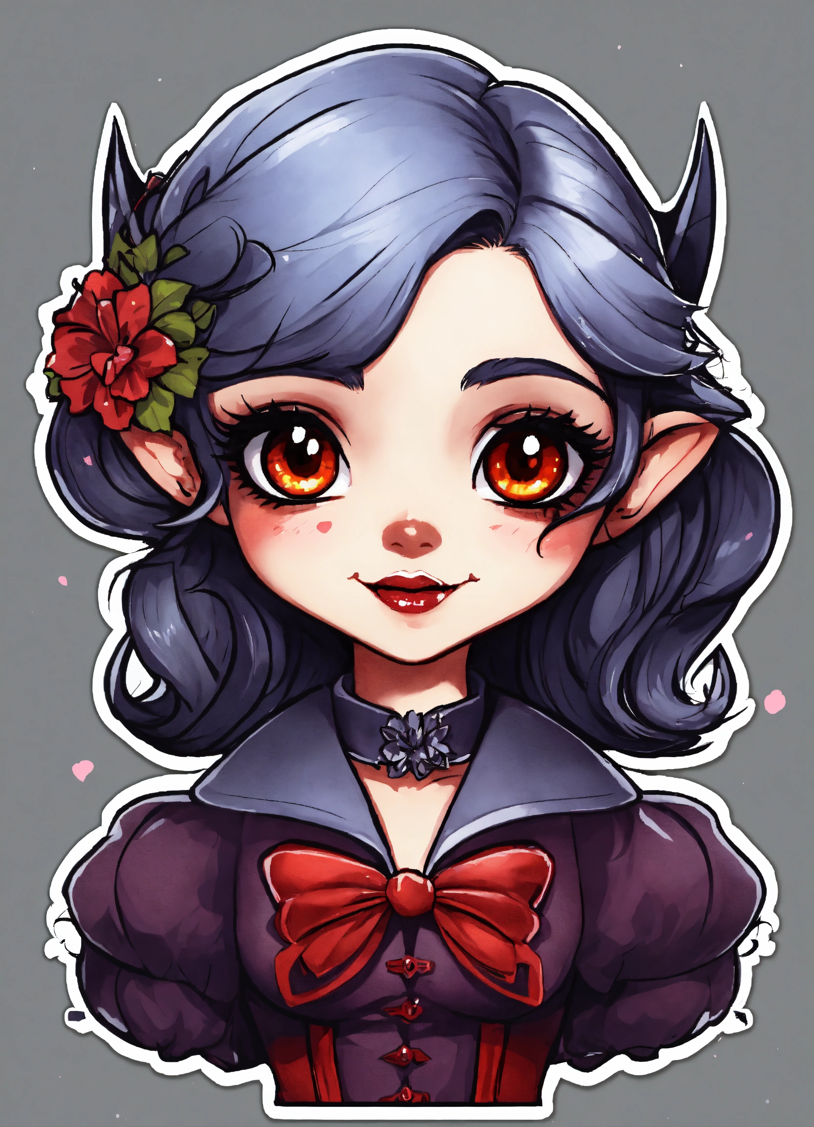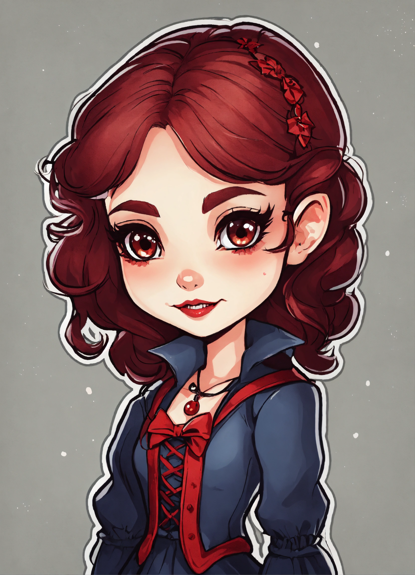 Generate a cute vampire girl illustration, 4k resolution, cartoon-sticker style with clear lines on a pure white background suitable for a children's coloring book.