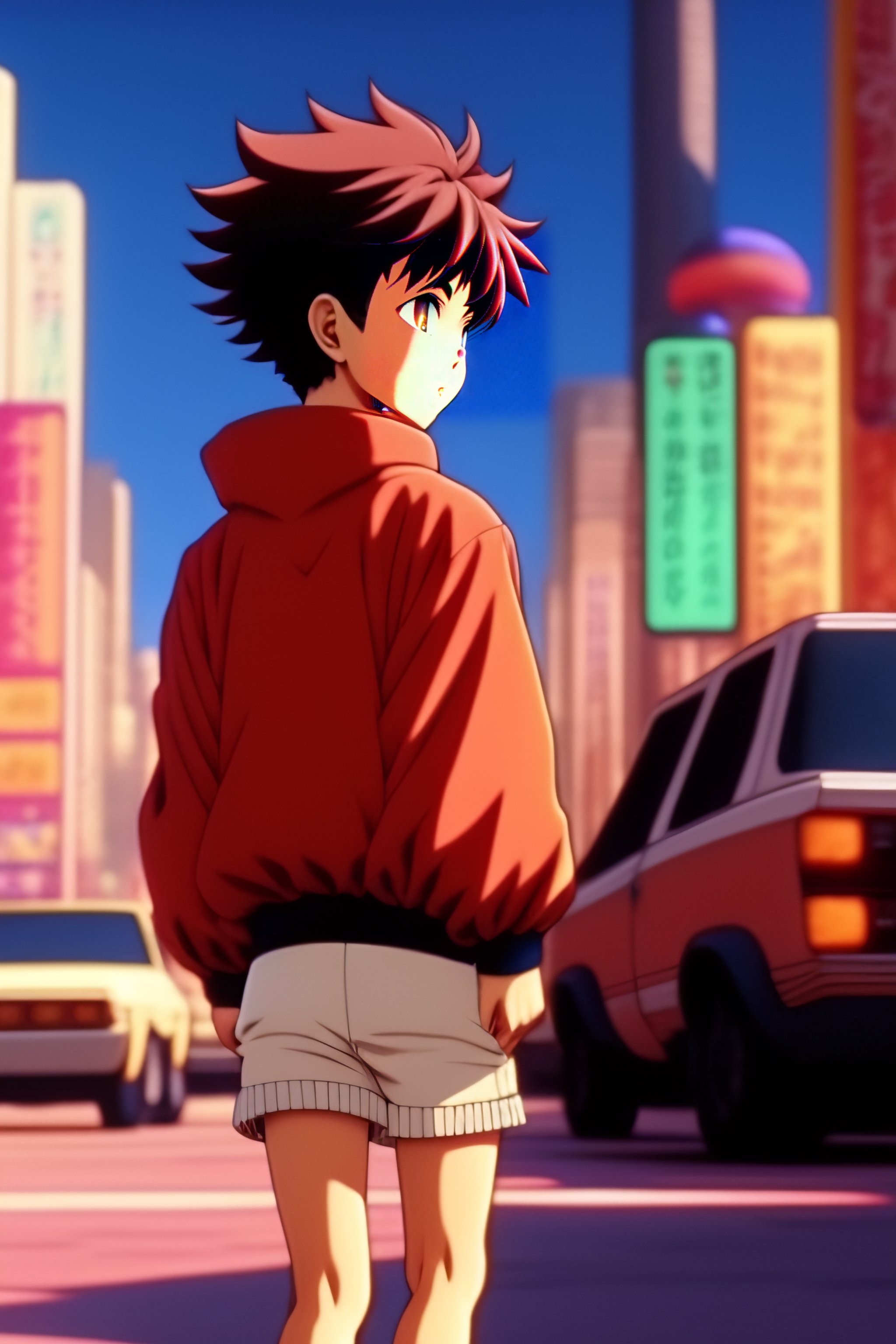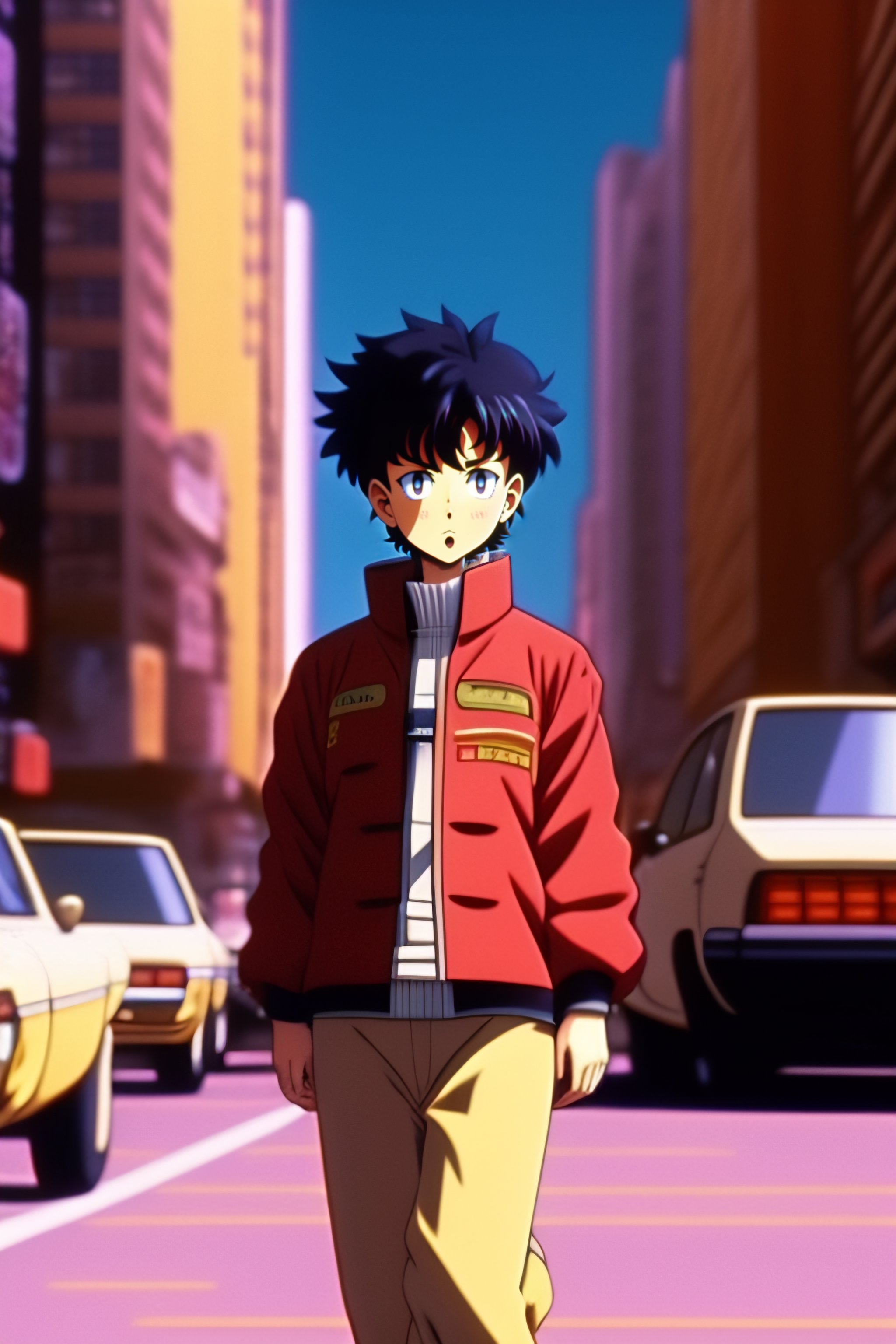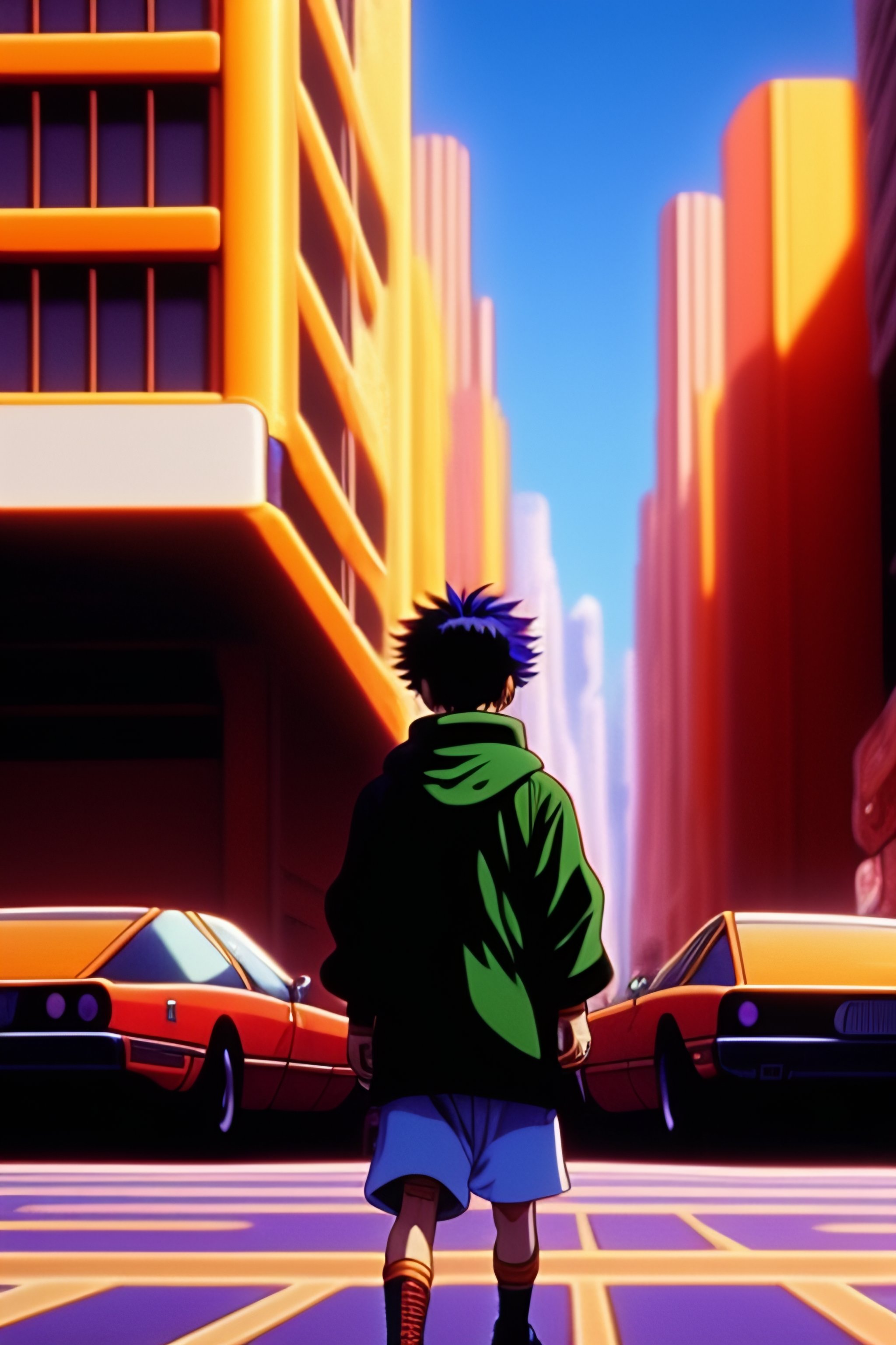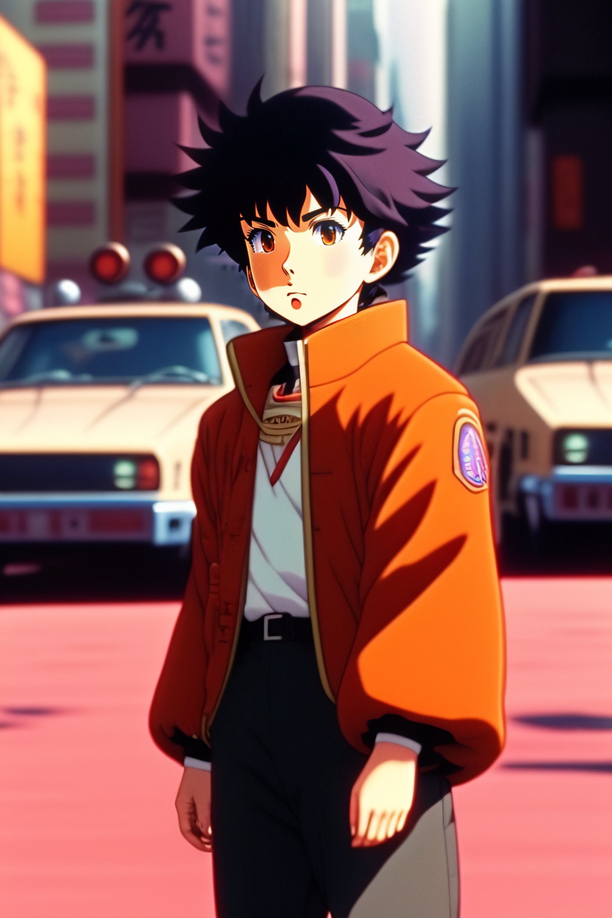 Vintage anime screenshot from akira, 90’s anime aesthetic. young protagonist, walking through city, full of yokai spirits