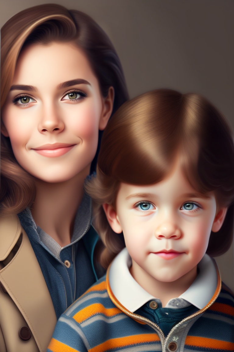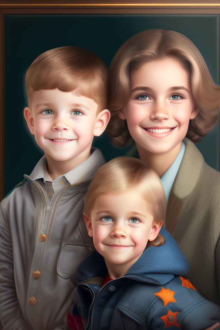Realistic family portrait of two boys with their mother