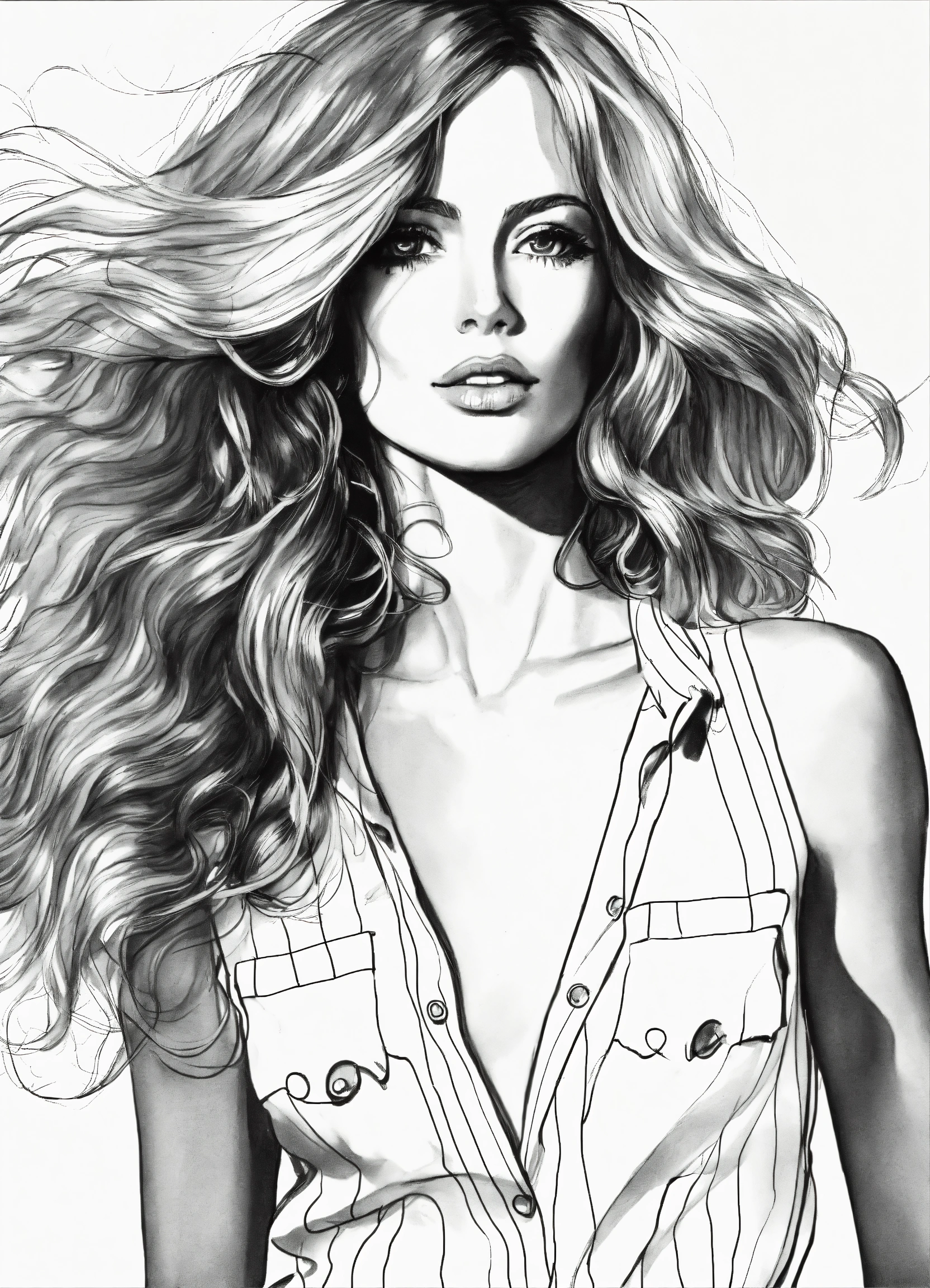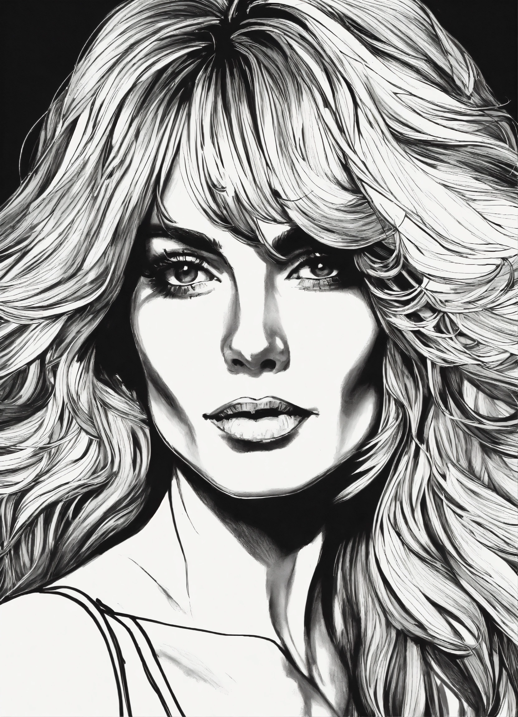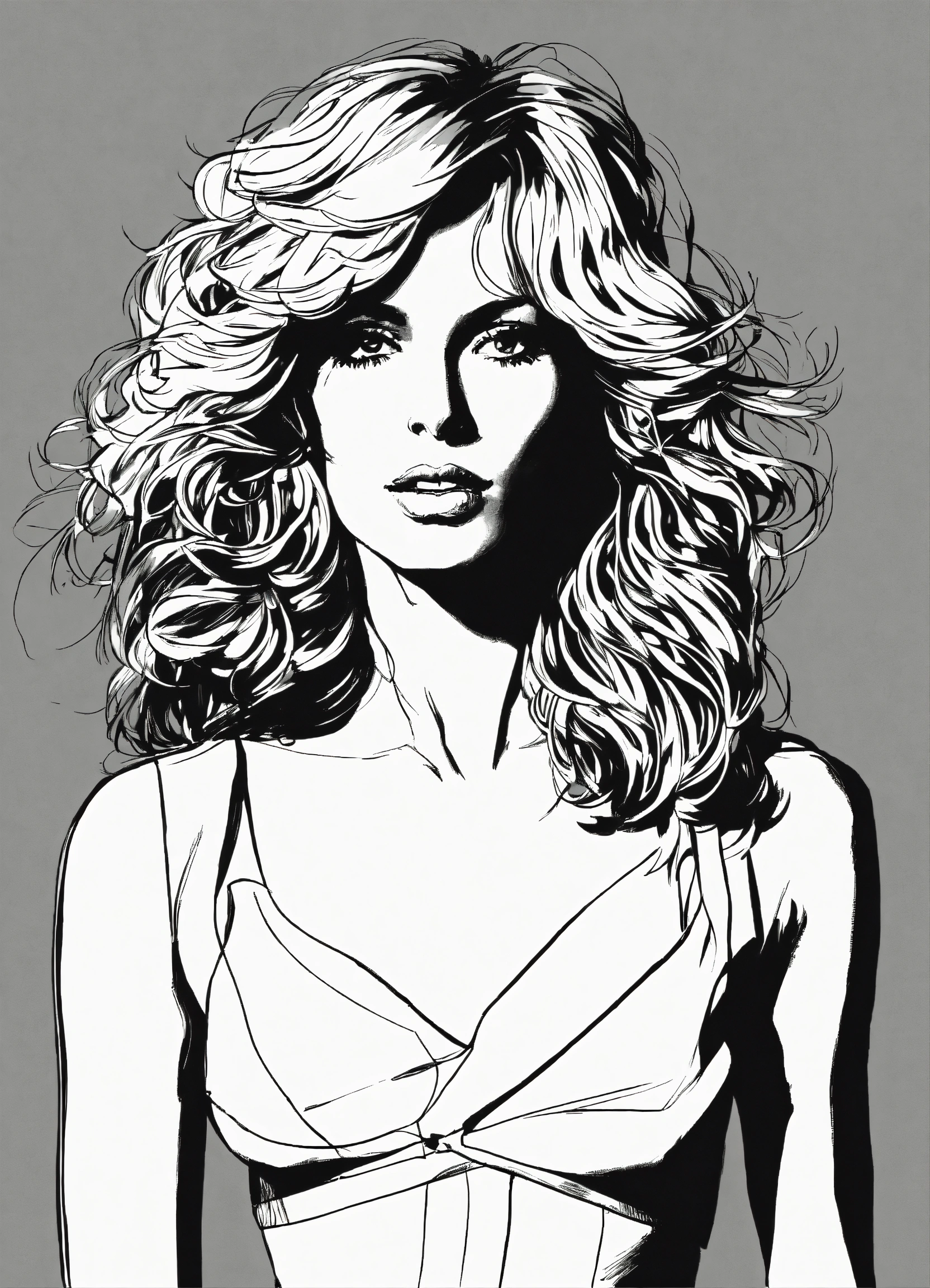 skinny girl with farrah fawcett hair