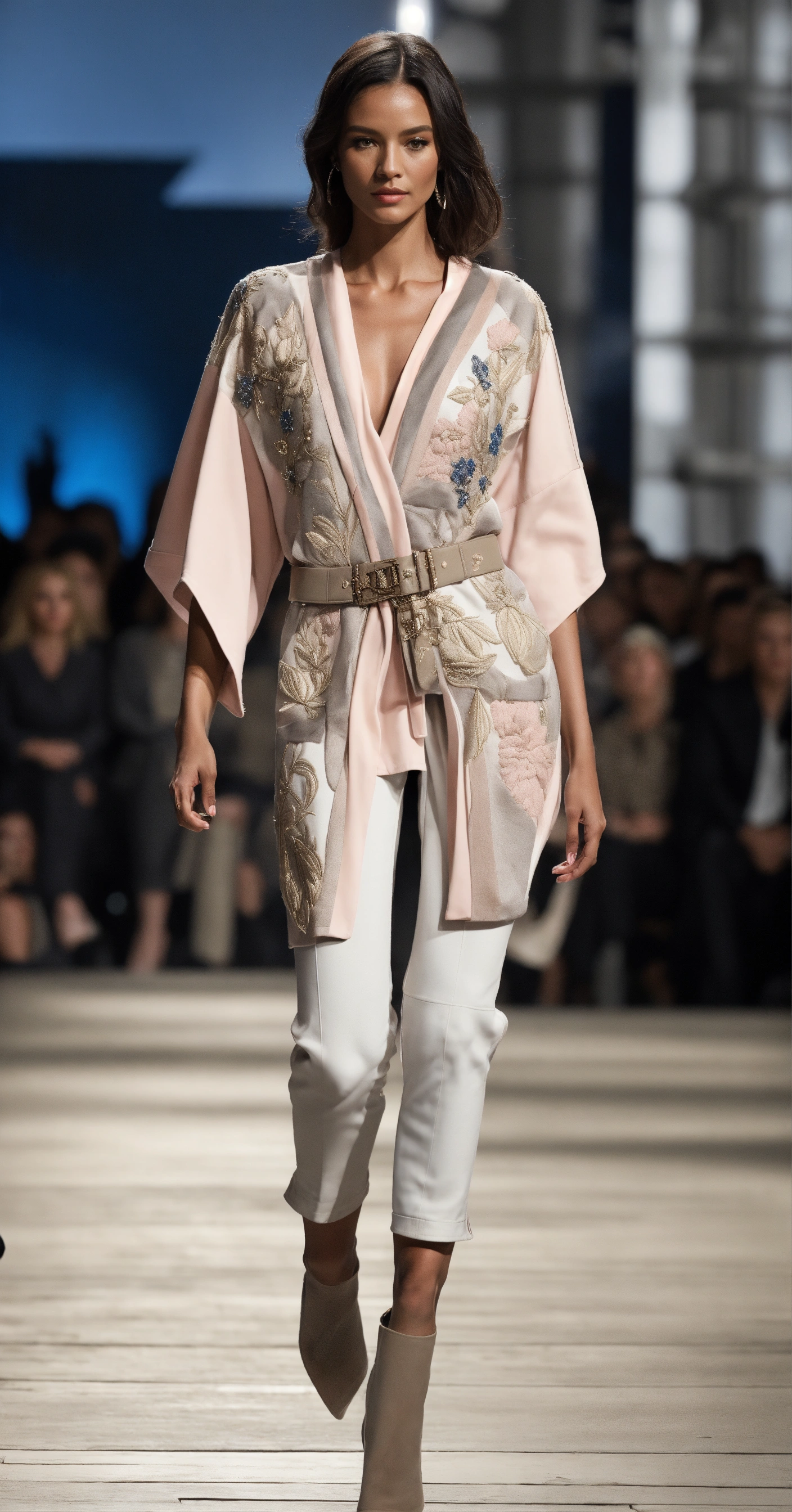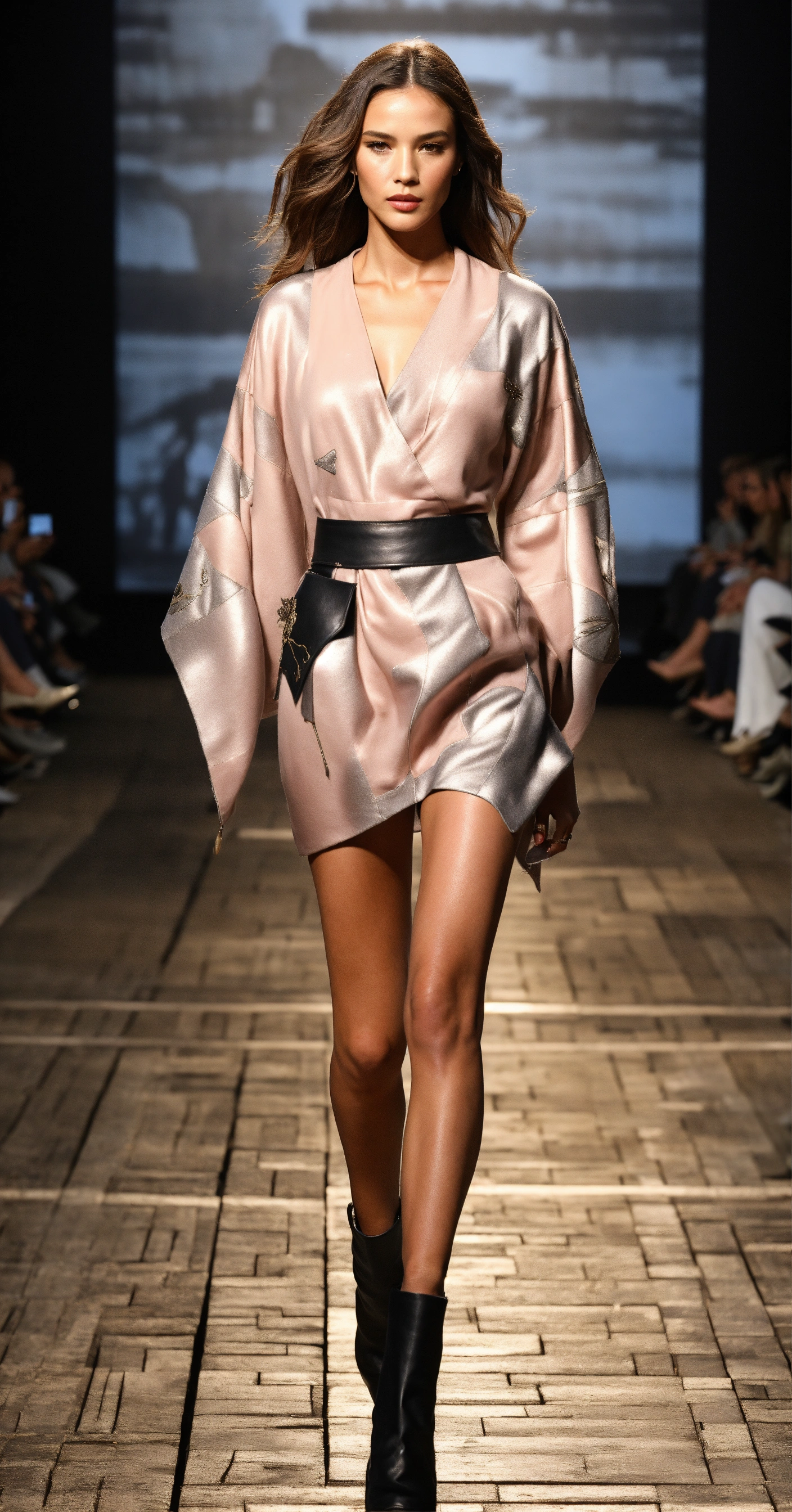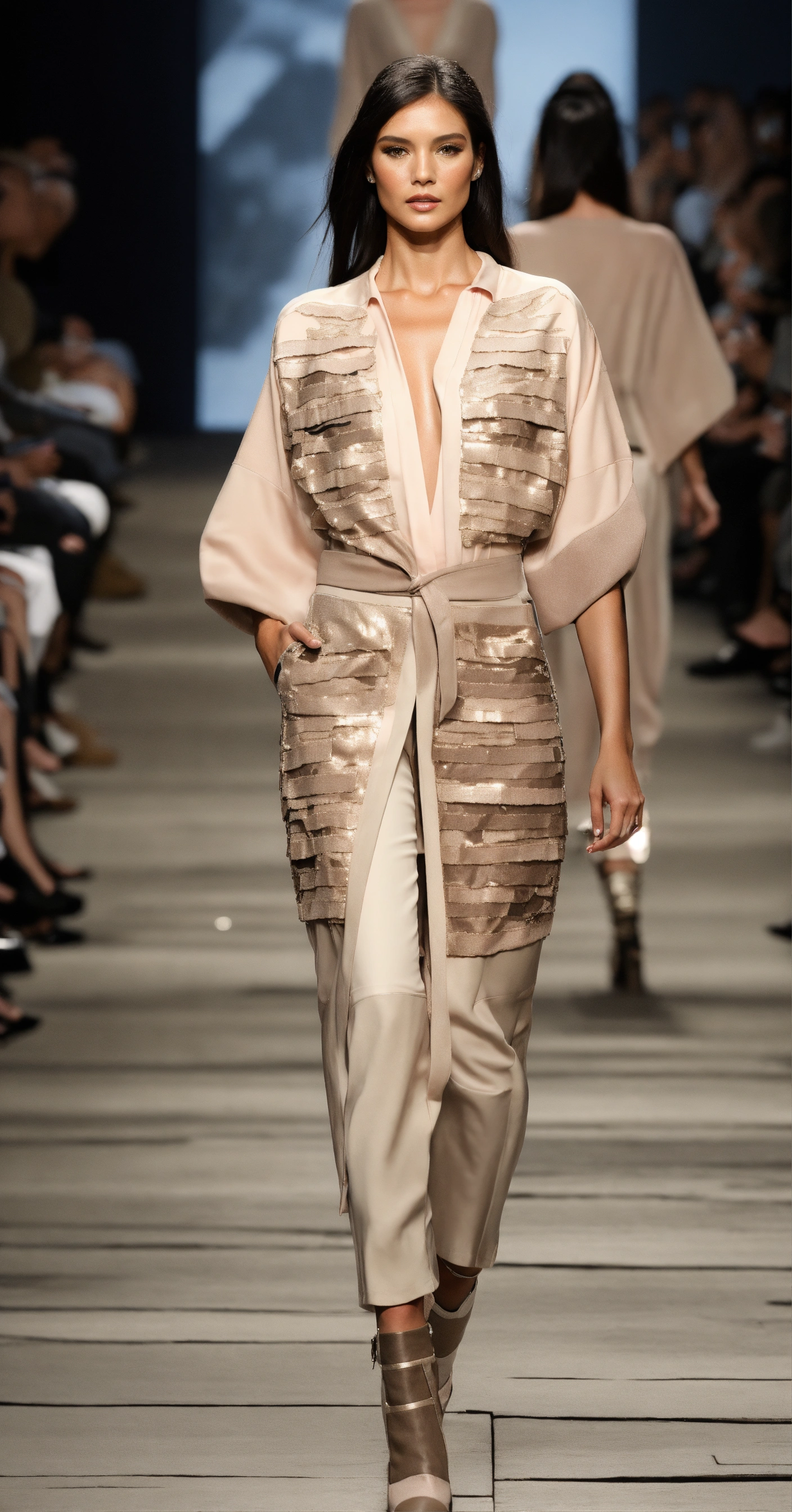 3d realistic photo of female warriors walking runway during military fashion week wearing dolman sleeve donna karan warrior fashion in black, white, blush, grey, beige, stone, metallics, shimmer, denim, leather embroidered walking a war field night runway