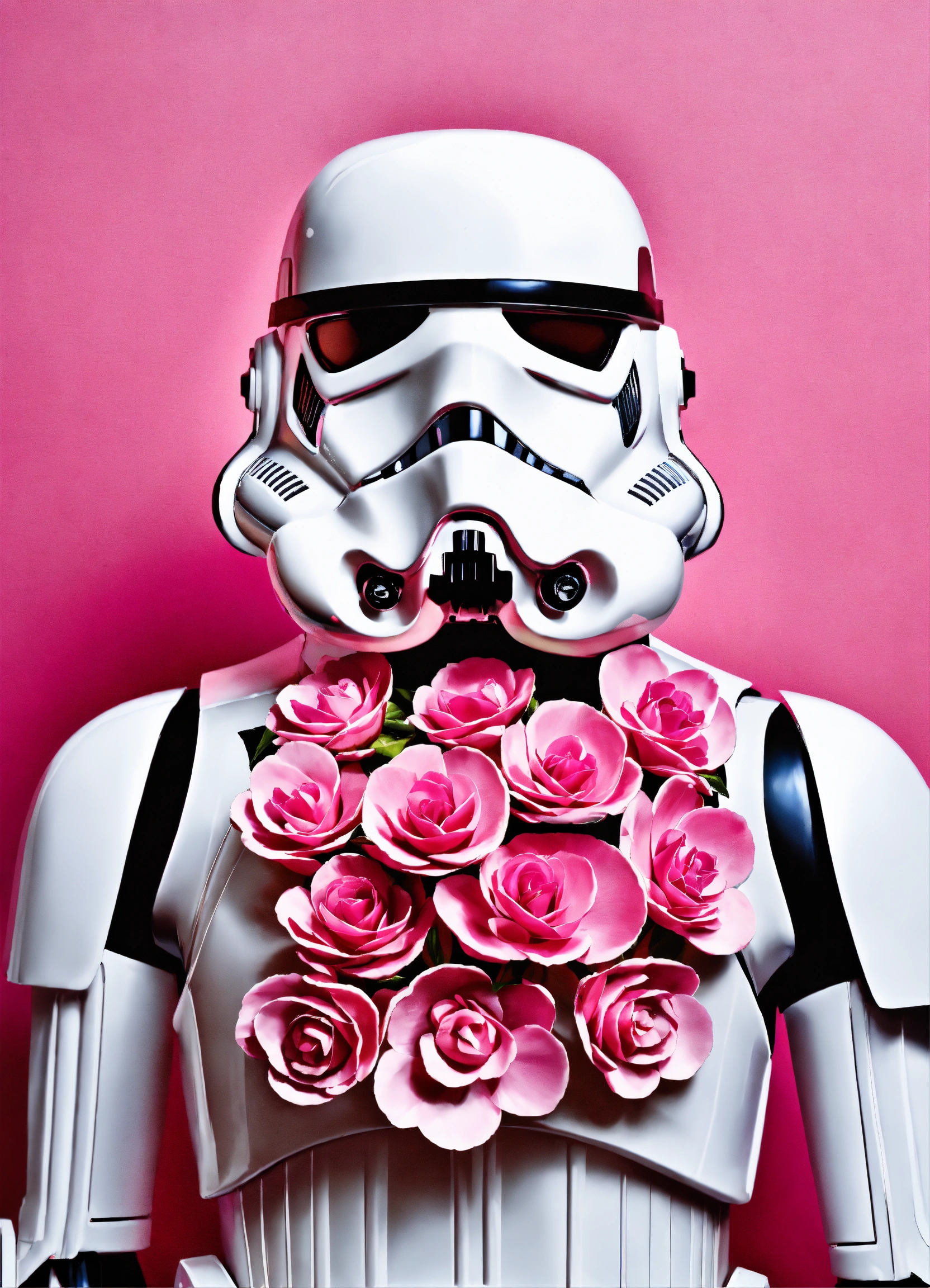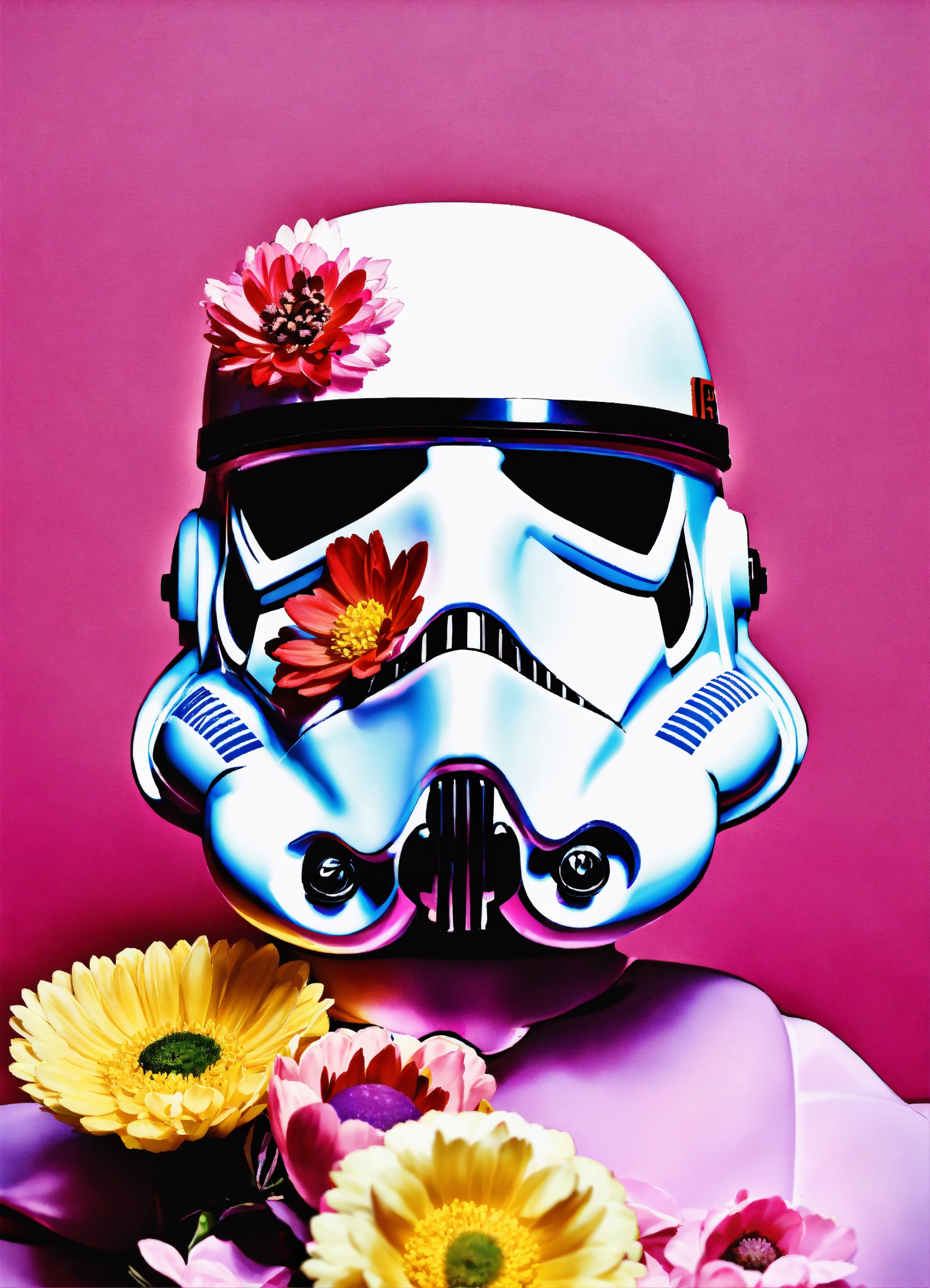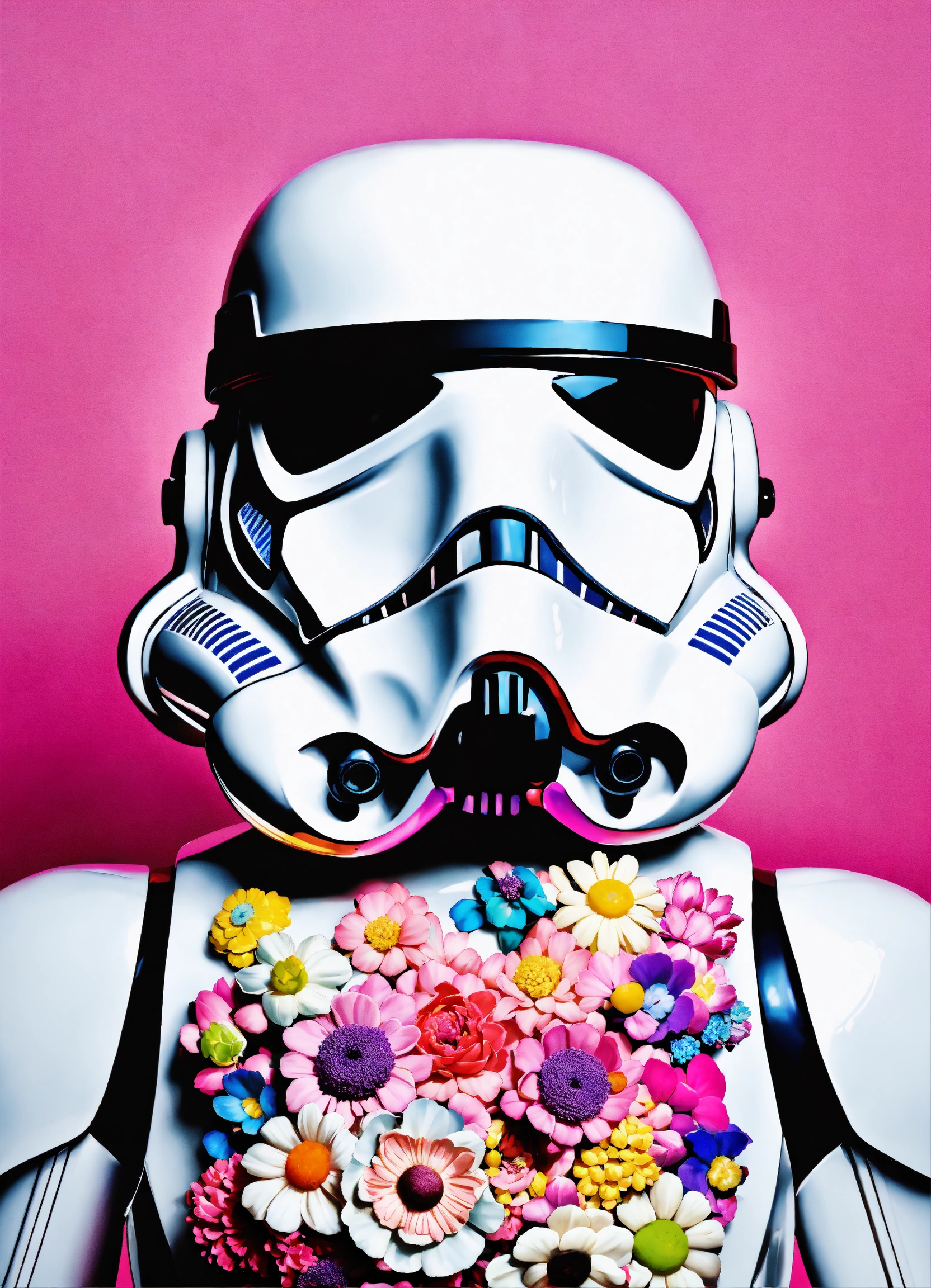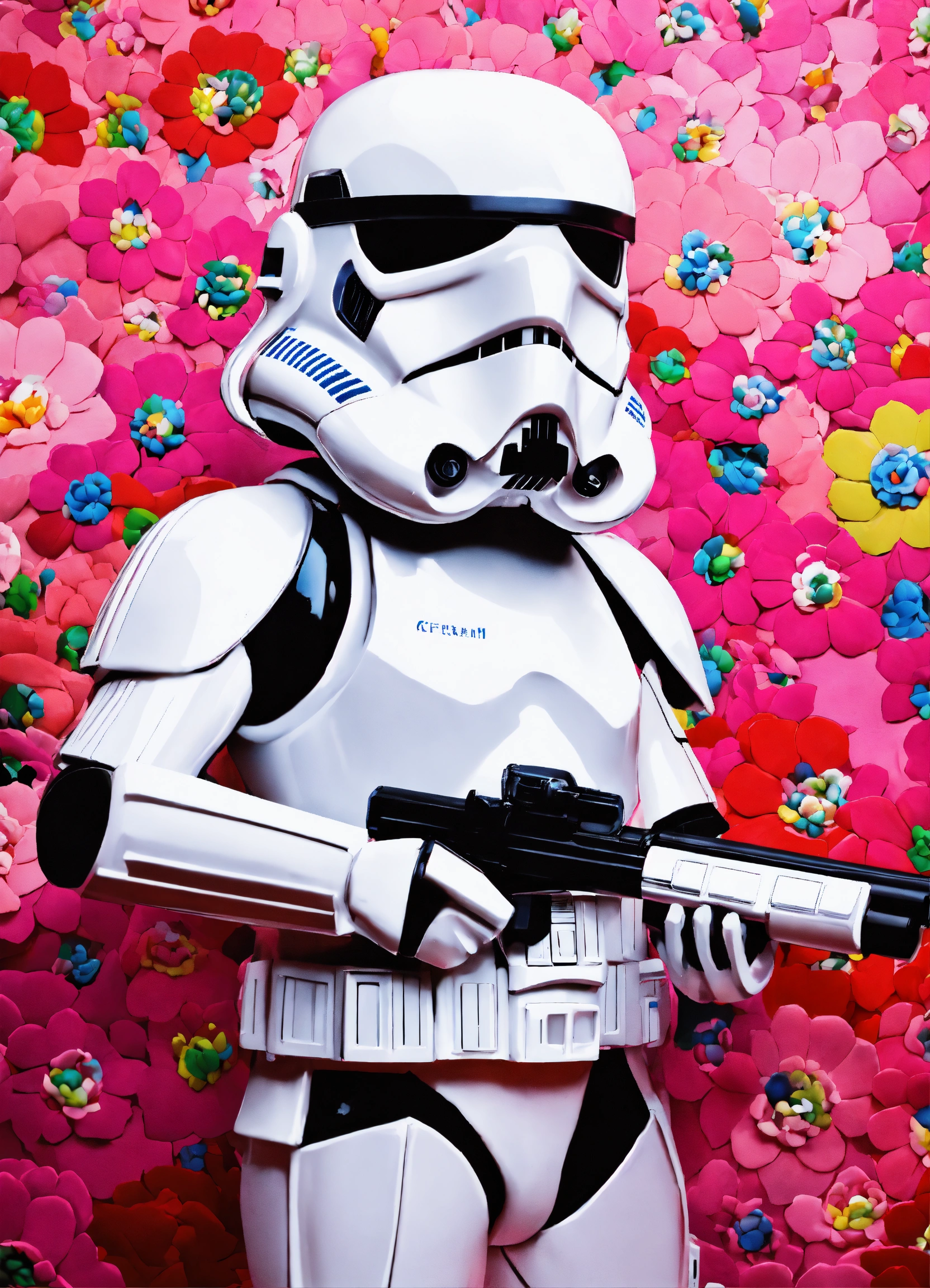 Ceramic stormtrooper murakami flowers jeff koons pop art pink background