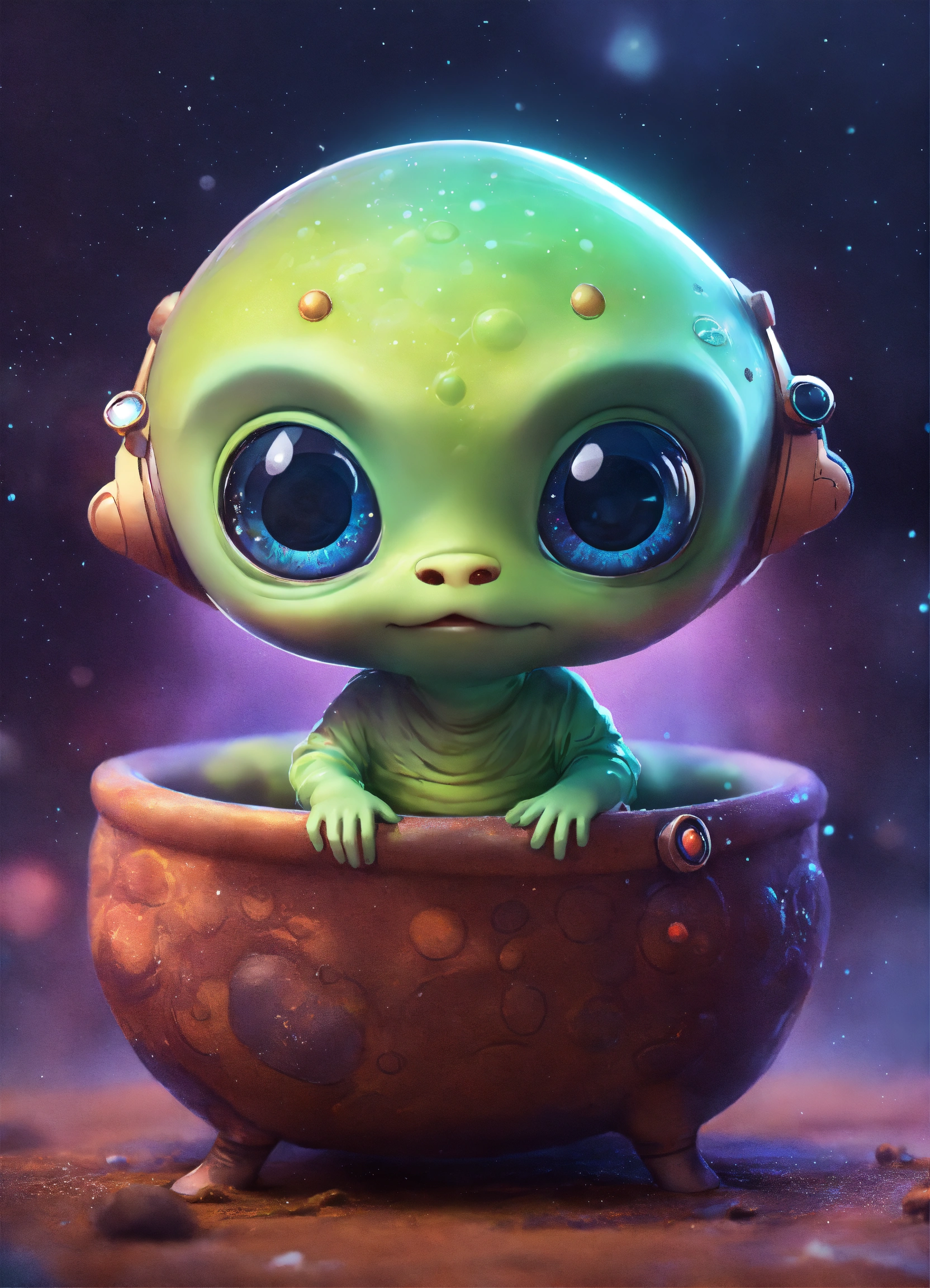 Cute and adorable cartoon alien baby, fantasy, dreamlike, surrealism, super cute, trending on artstation