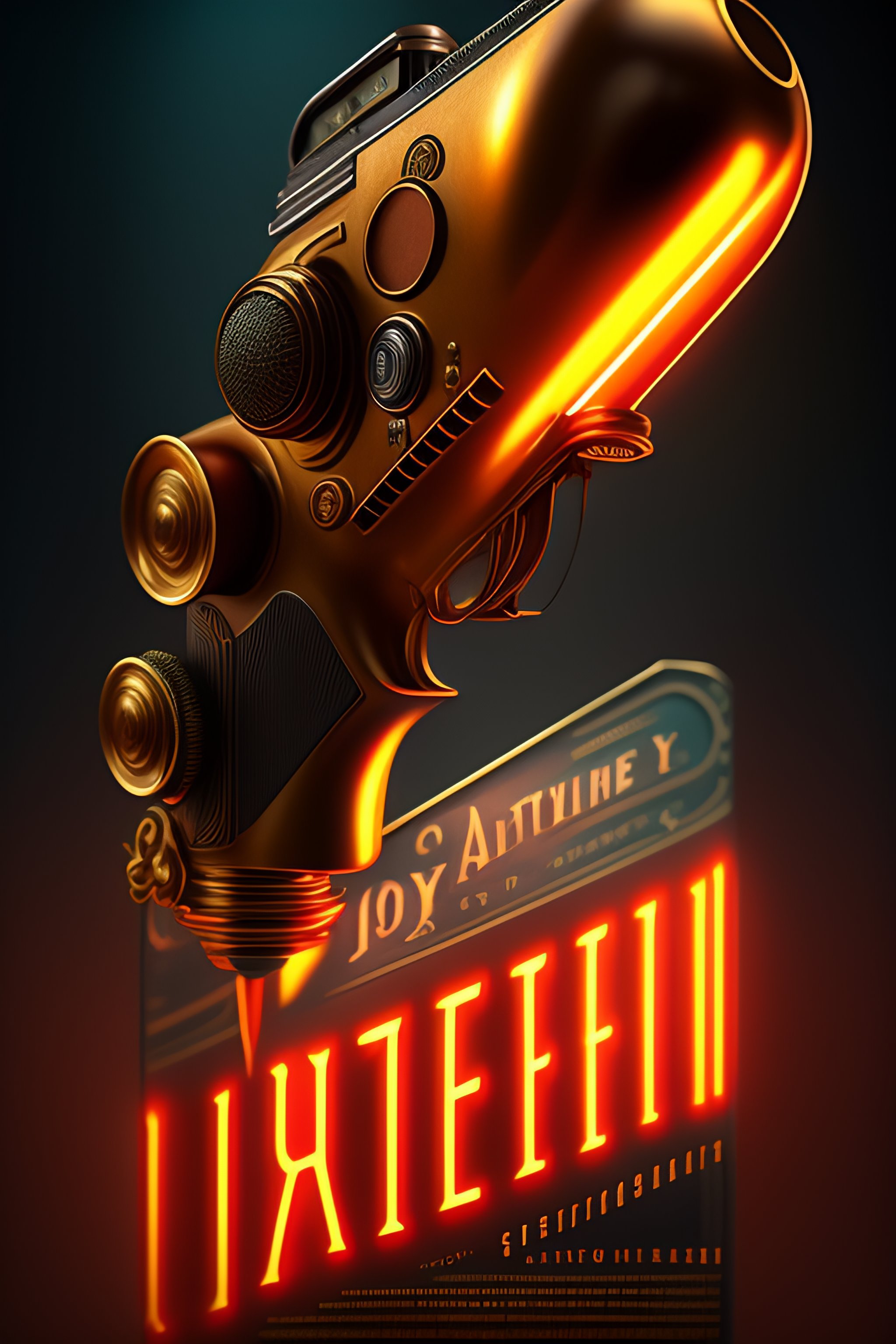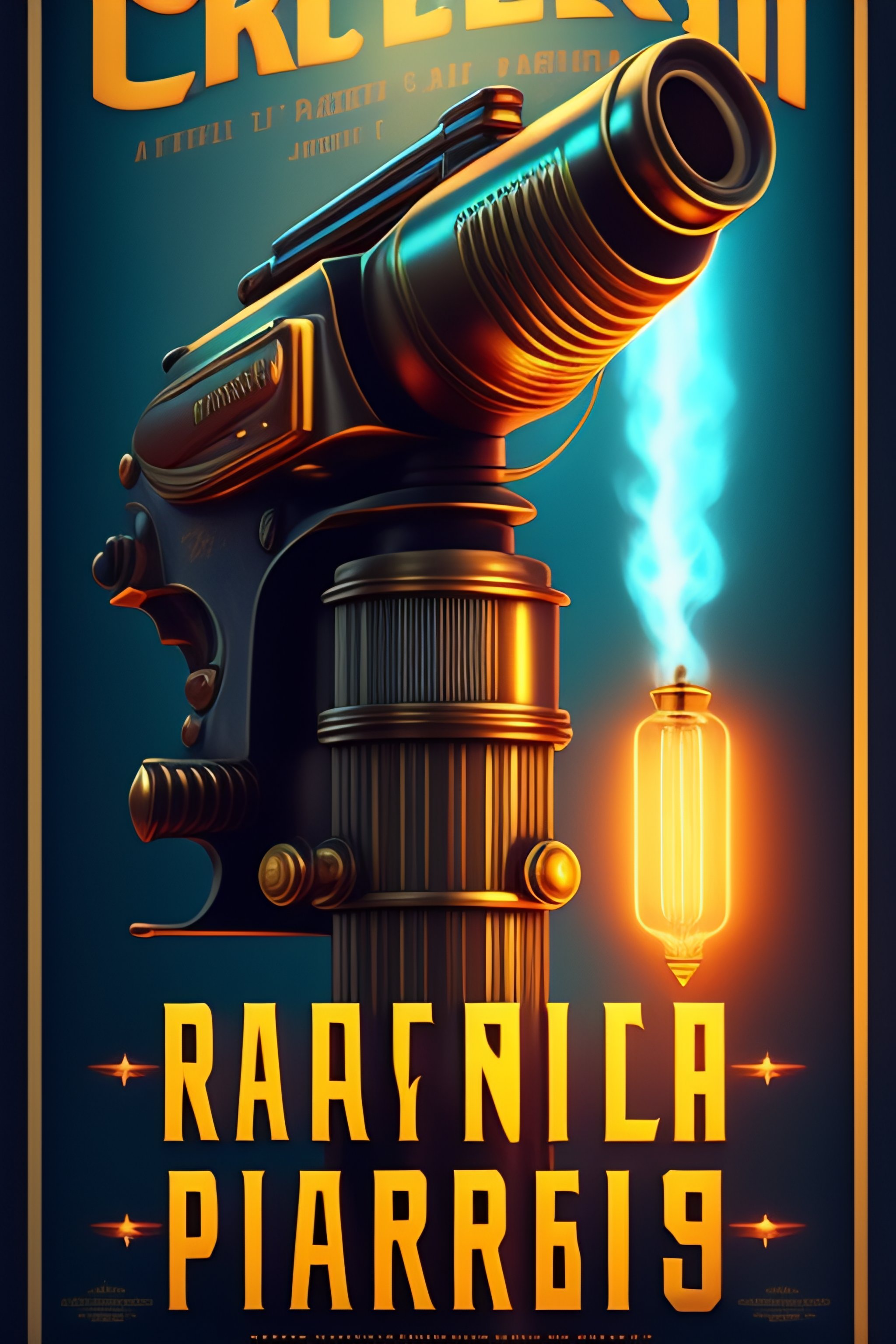 Vintage medium shot 1920's poster, object, raygun pistol, vintage, robotic, 1820s movie poster, cozy interior lighting, artstation, ultra detailed, cinematic, daz, hyper realistic, octane, netflix lighting, 8k