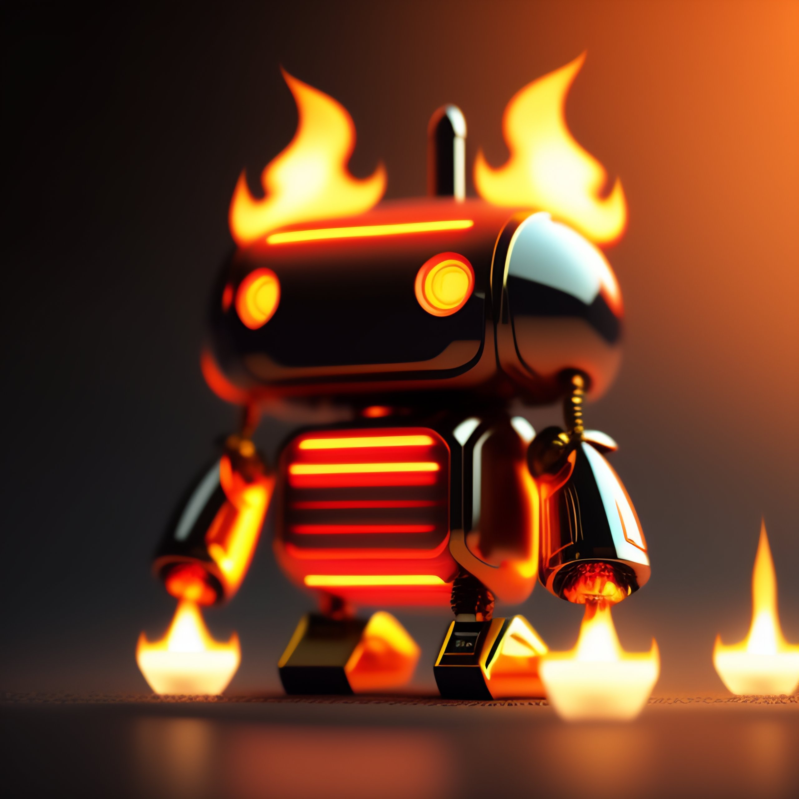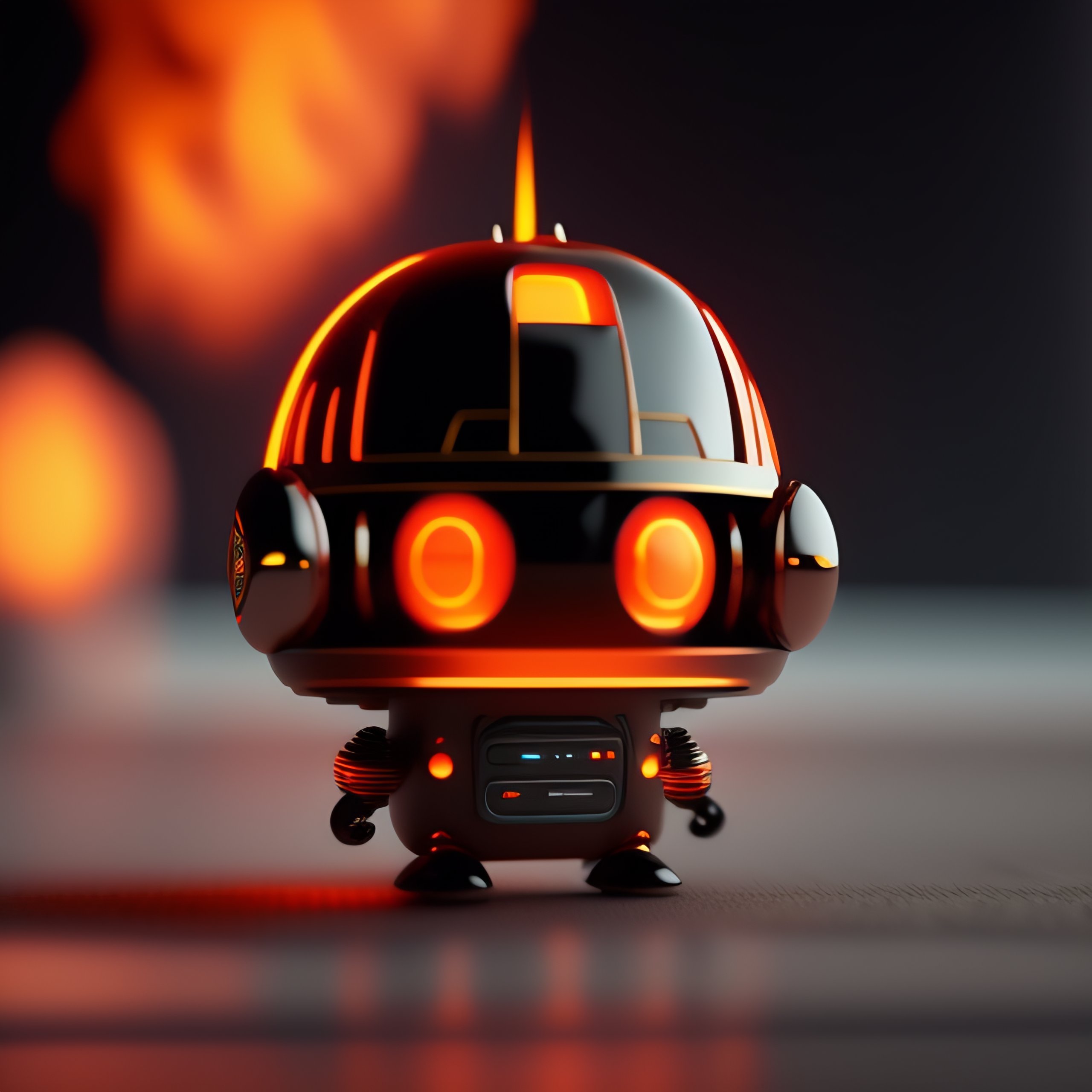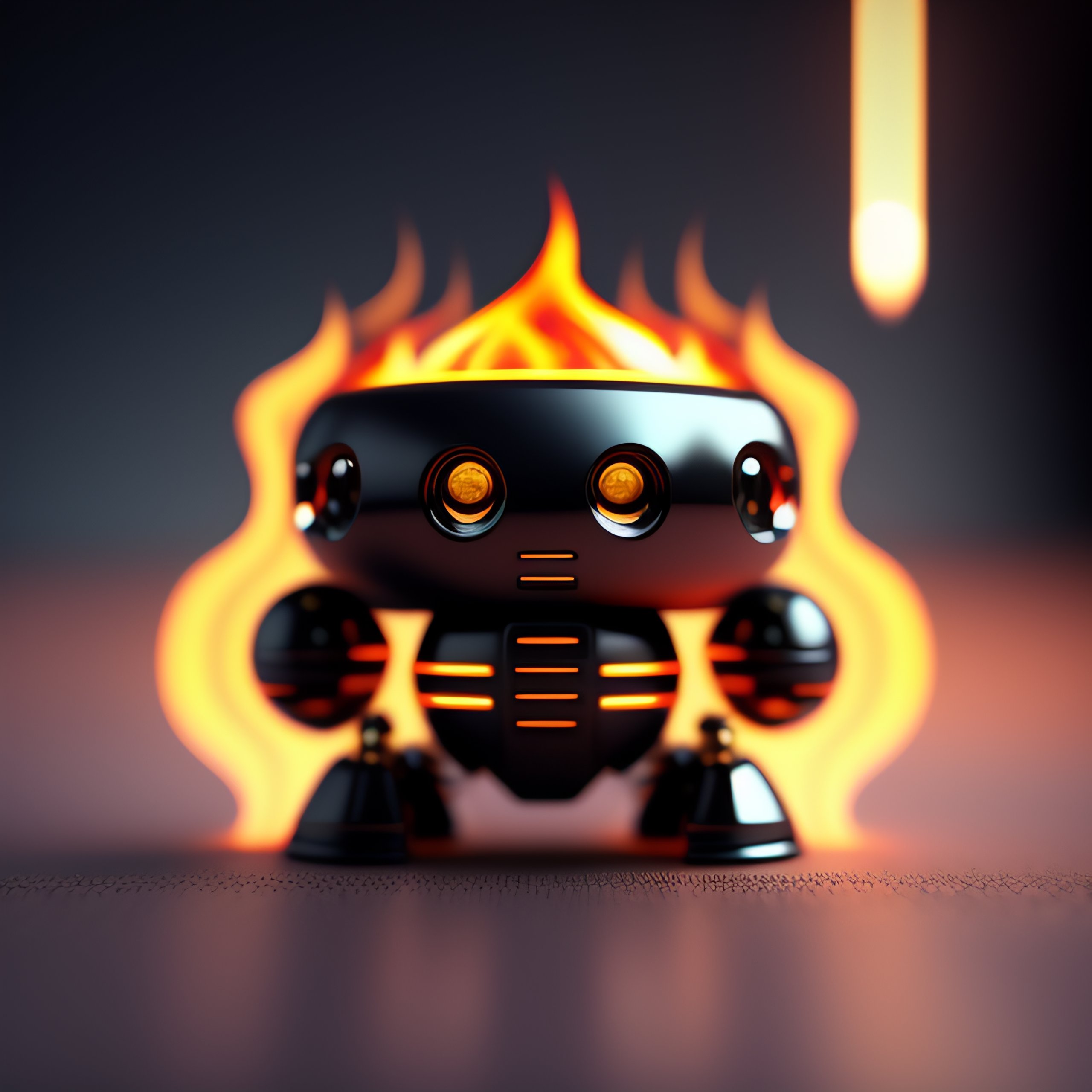 Mini burning robot that help sending data, no background, unreal engine 5, octane render, paper cut style