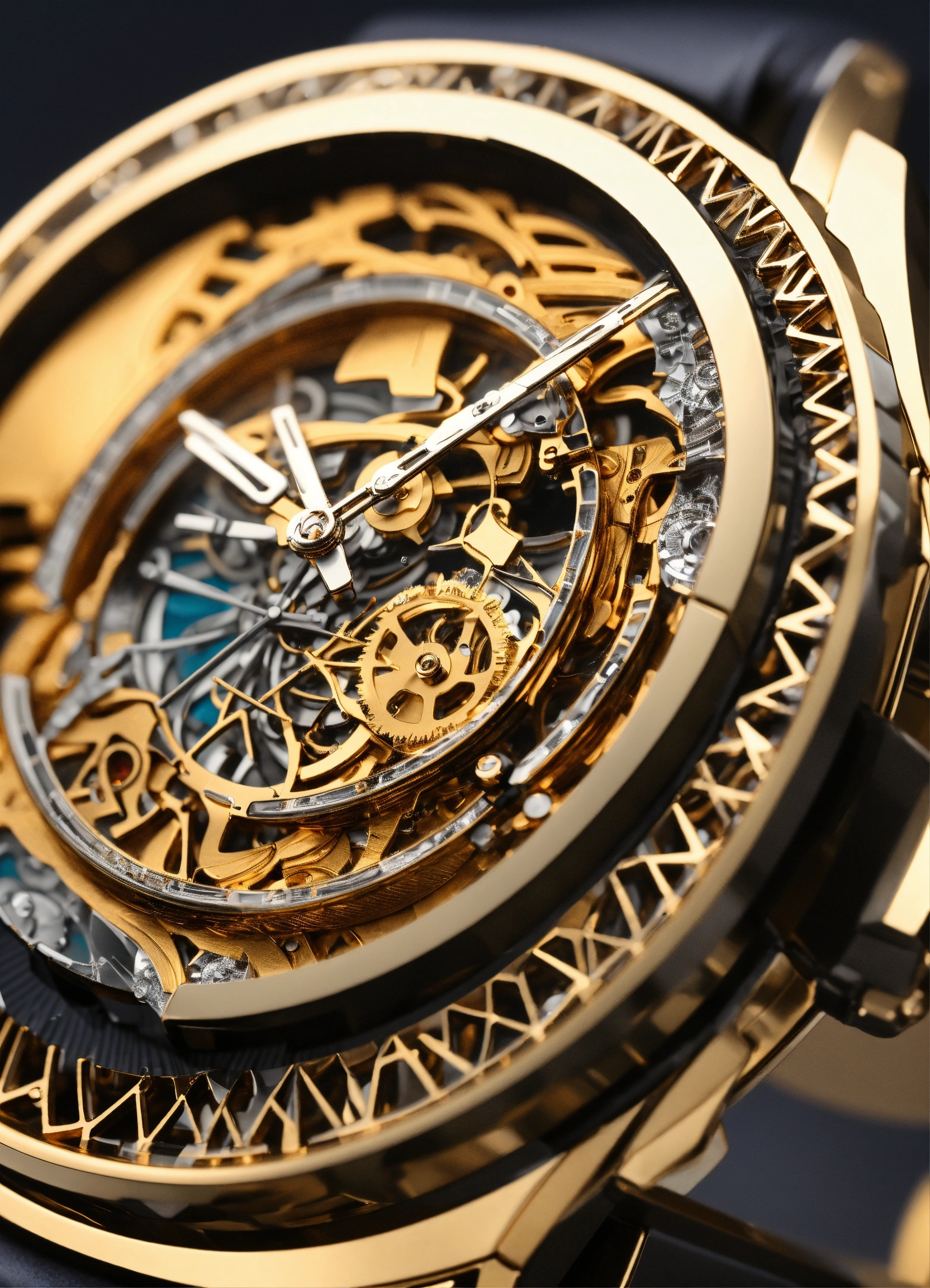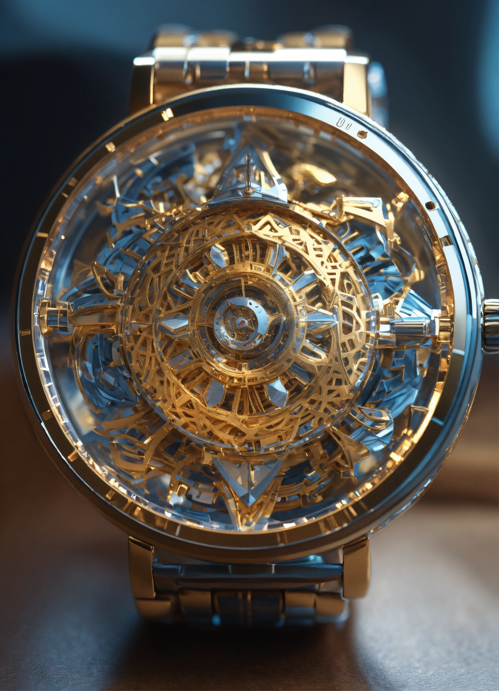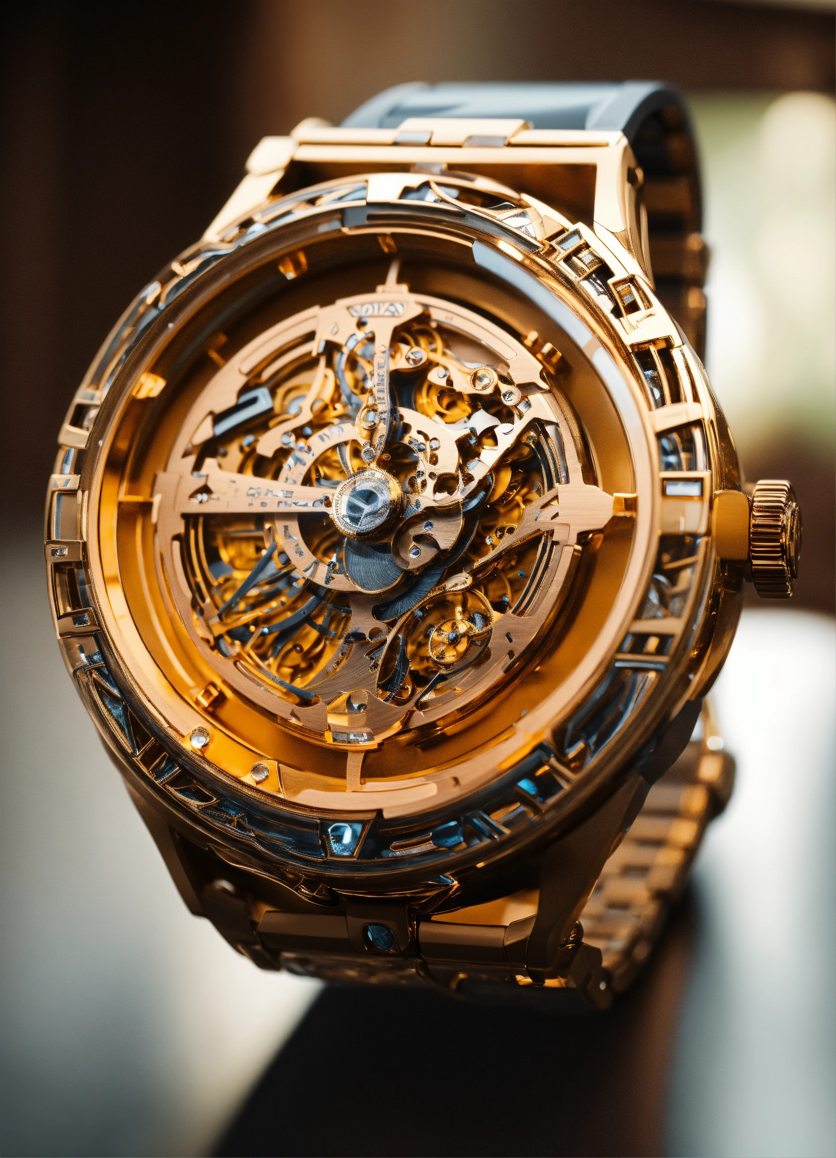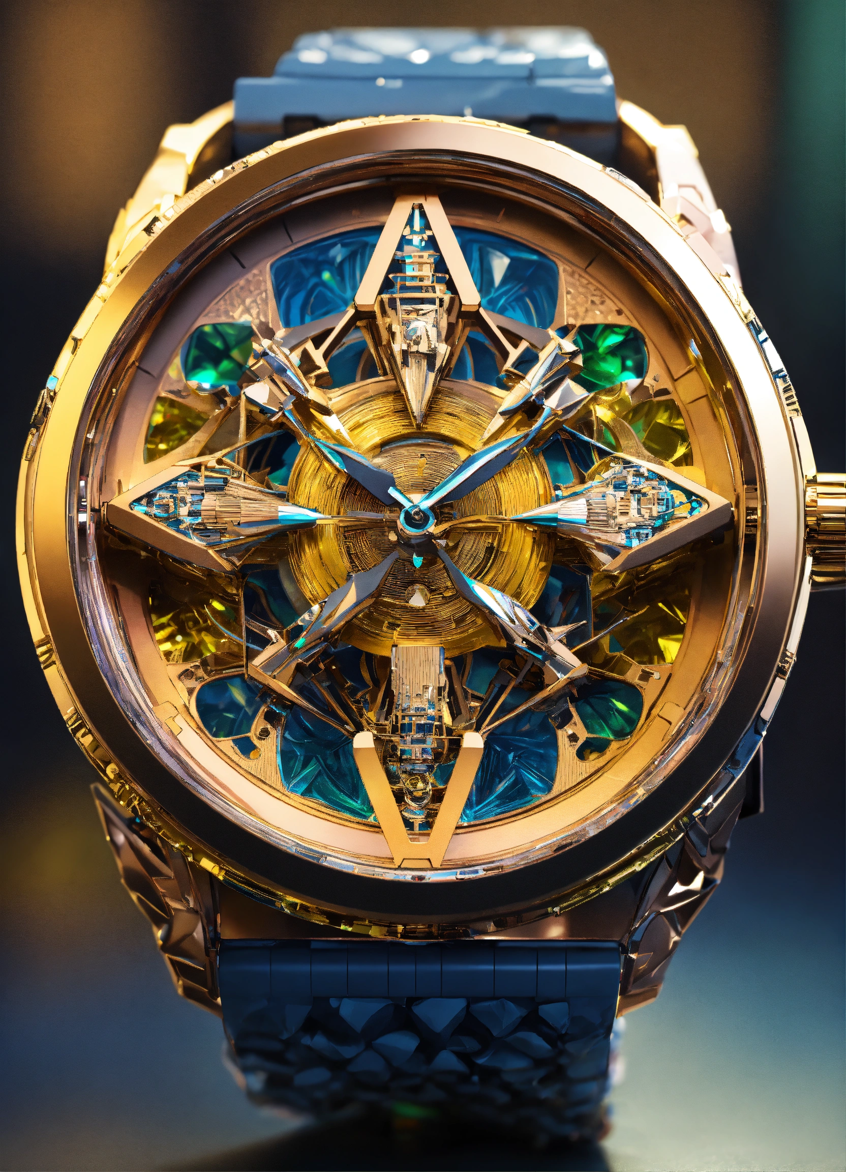 Ultra detailed watch in a generative 3d style on a watch, african style, robotic, big, diamond style.