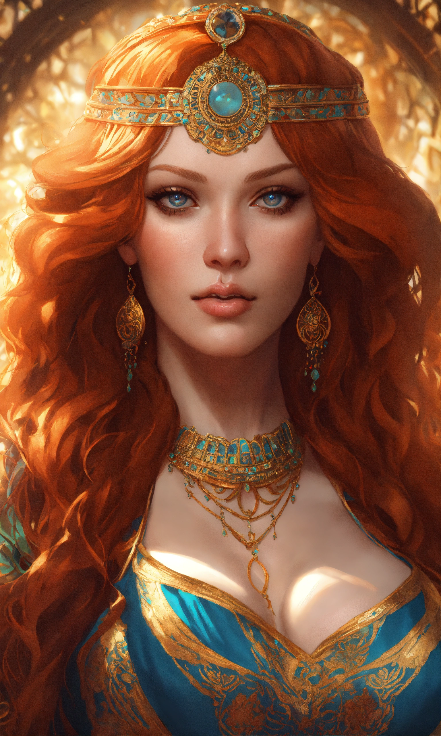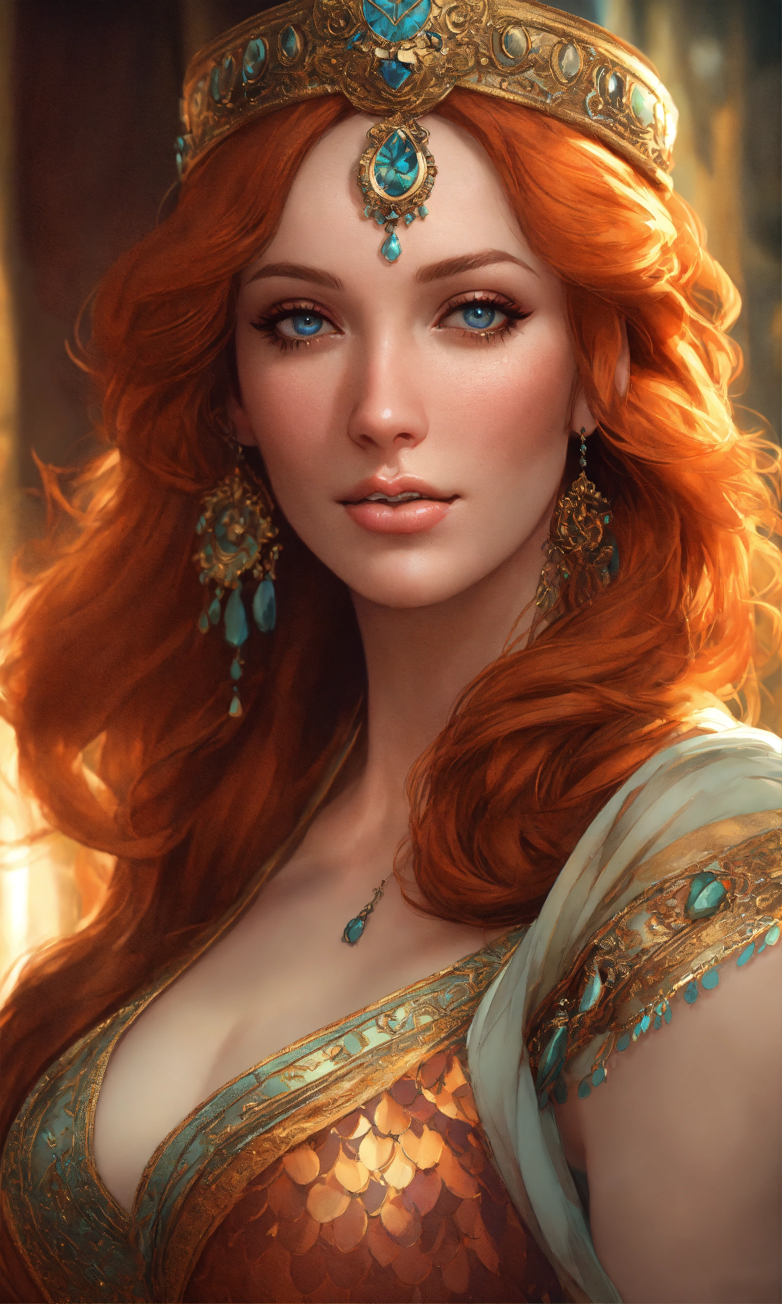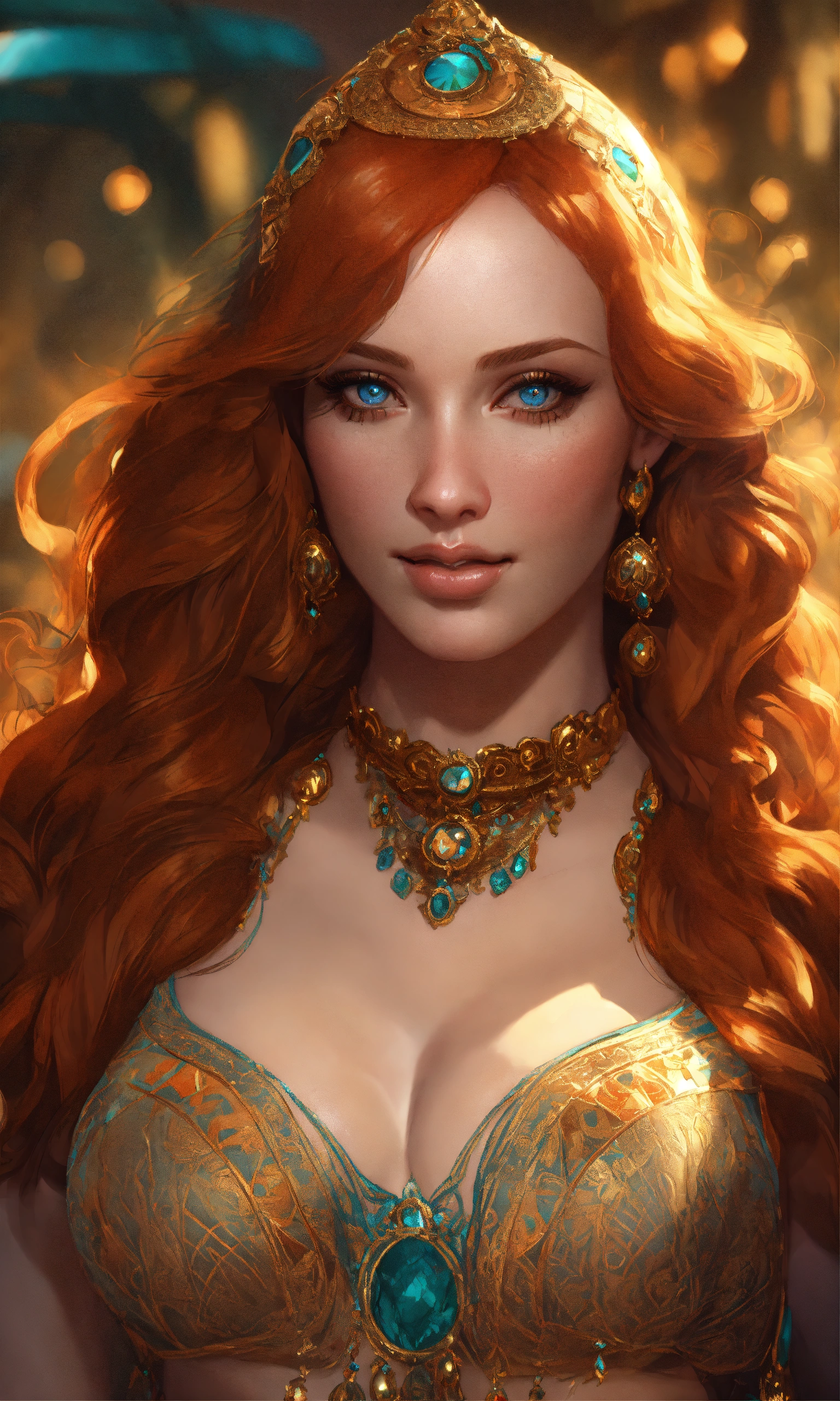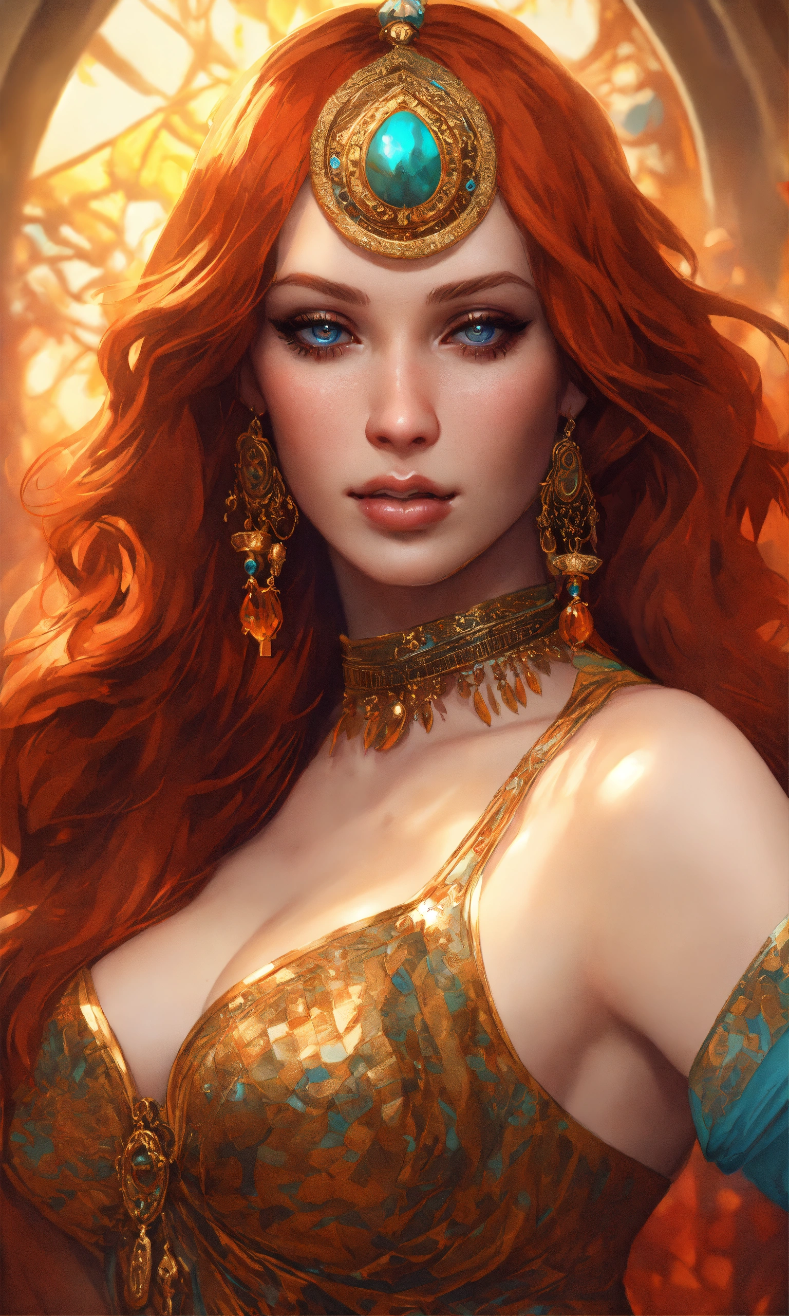 Christina hendricks as belly dancer, head and shoulders portrait, cute face, gorgeous, intricately detailed eyes, 8k resolution concept art portrait by greg rutkowski, artgerm, wlop, alphonse mucha dynamic lighting hyperdetailed intricately detailed splash art trending on artstation unreal engine 5 volumetric lighting